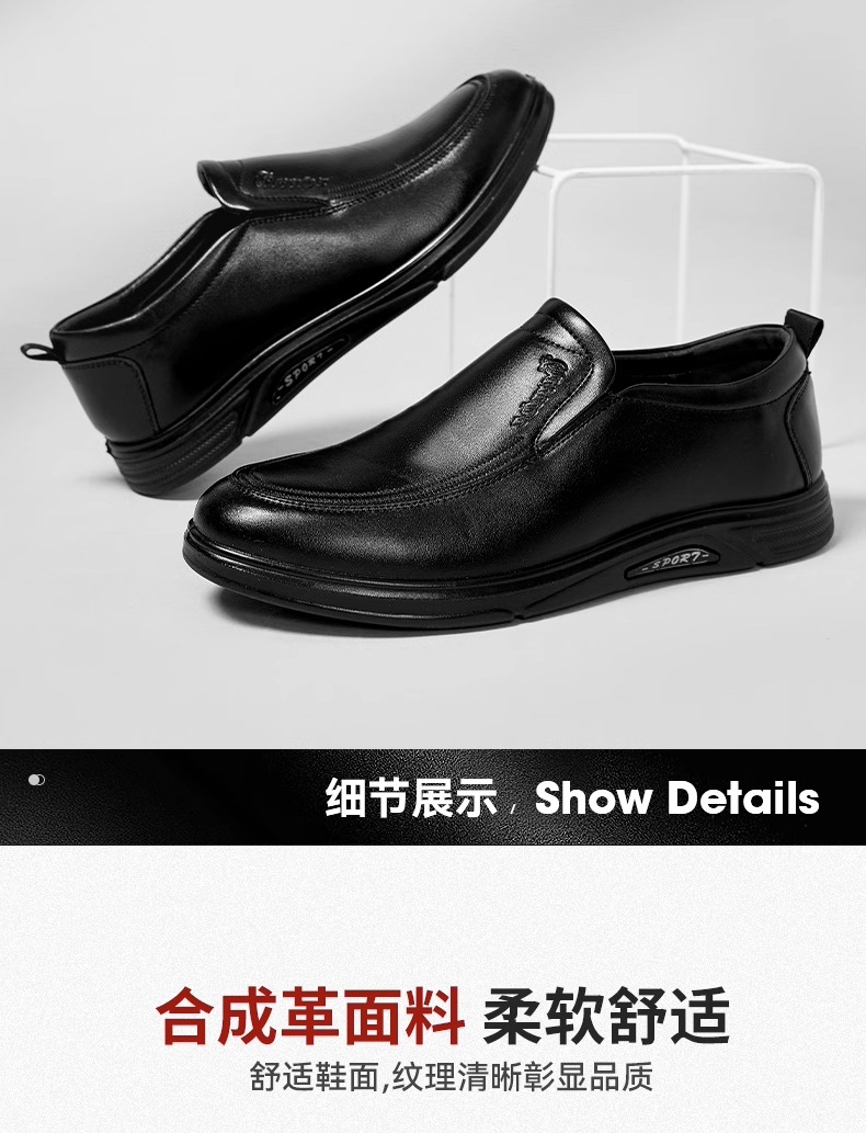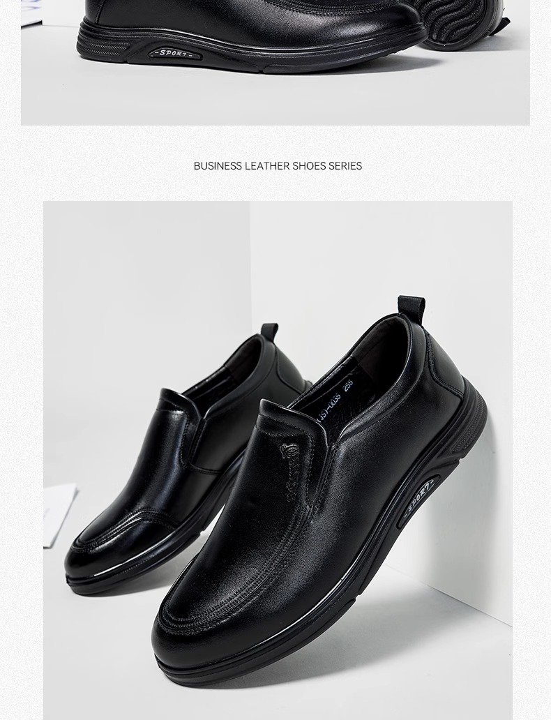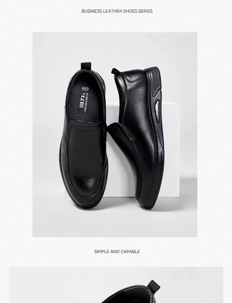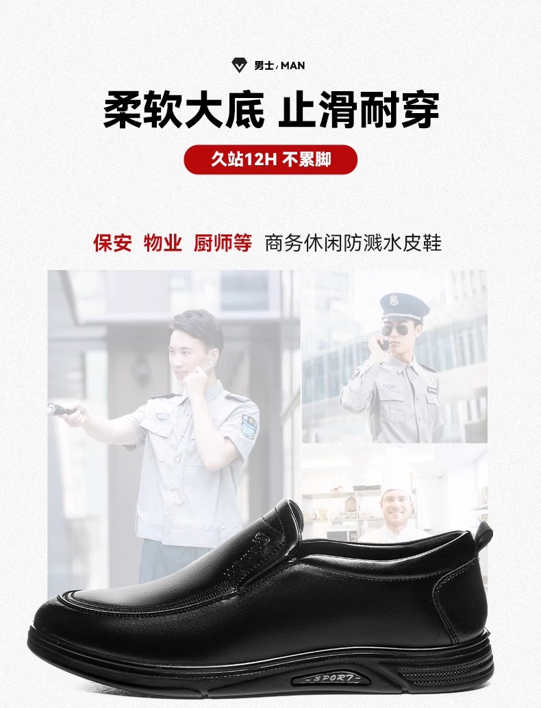 回力皮鞋男款2024新款一脚蹬懒人工作鞋软皮软底黑色商务休闲男鞋