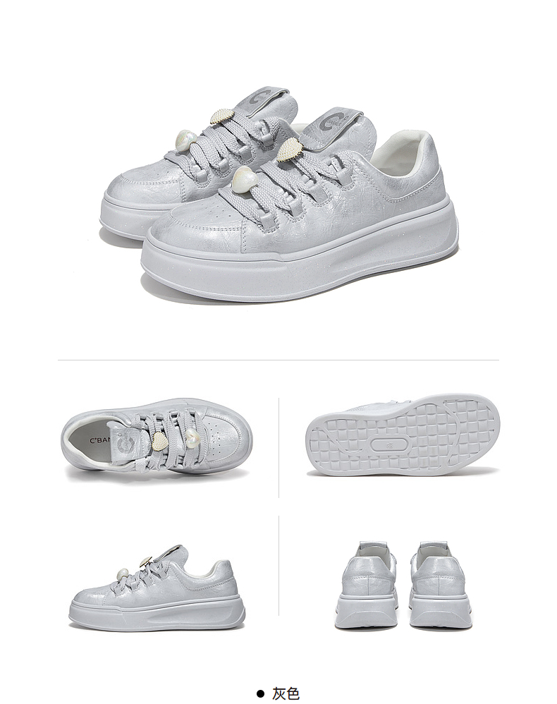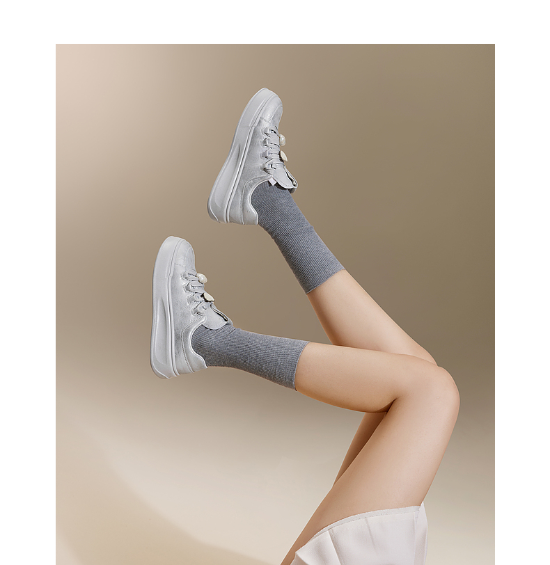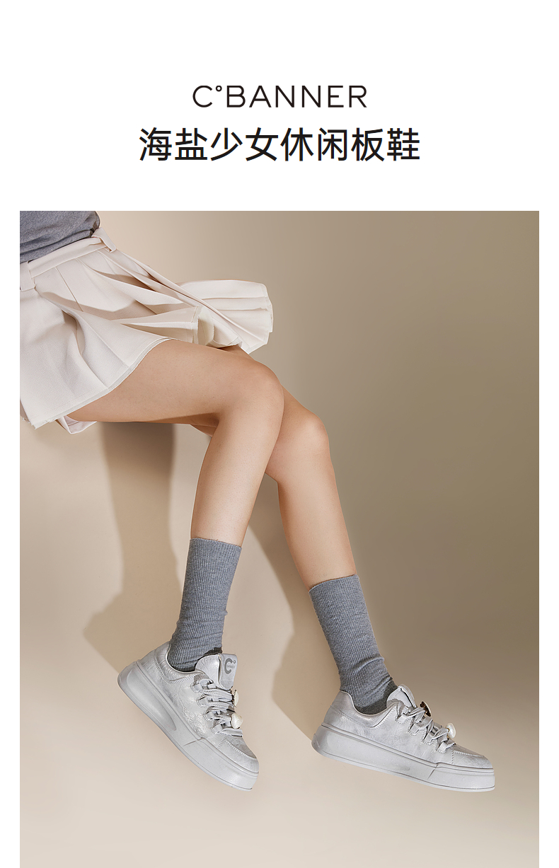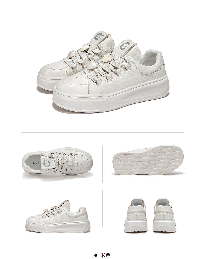 natursun厚底休闲板鞋女珍珠小白鞋不累脚通勤四季鞋N25133005