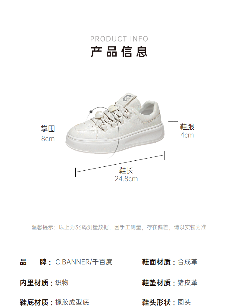 千百度厚底小白鞋女秋季休闲板鞋增高透气舒适时尚运动鞋A24476001