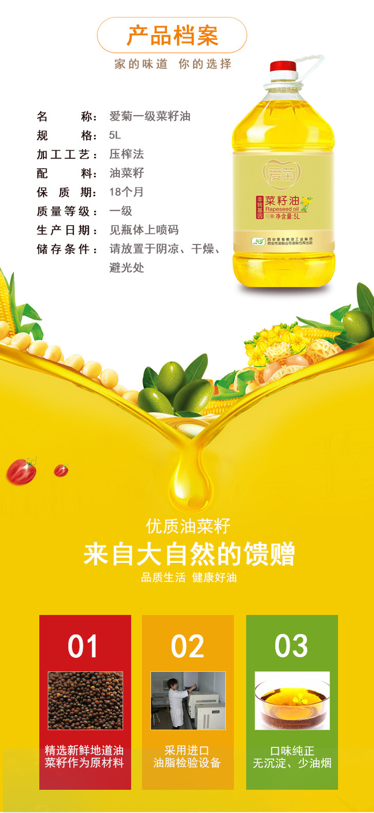 爱菊一级压榨菜籽油5L