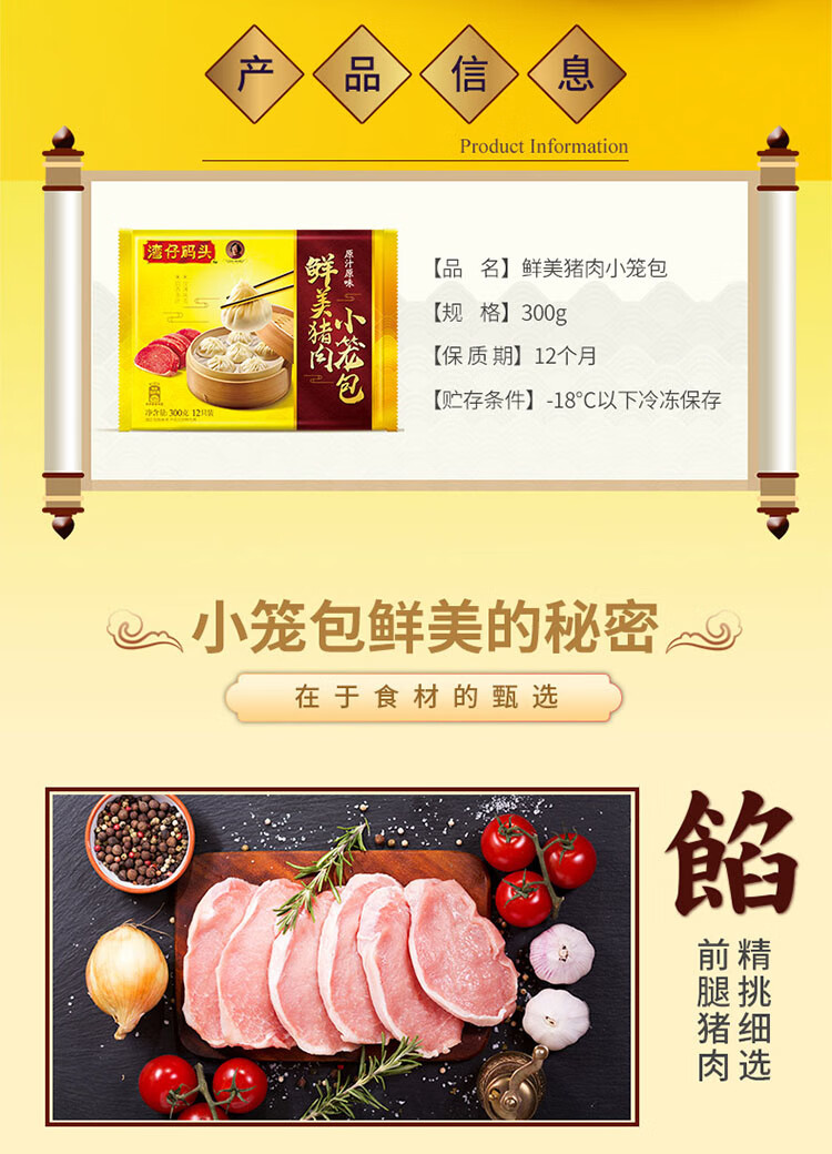 湾仔码头 鲜美猪肉小笼包 300g(12只)