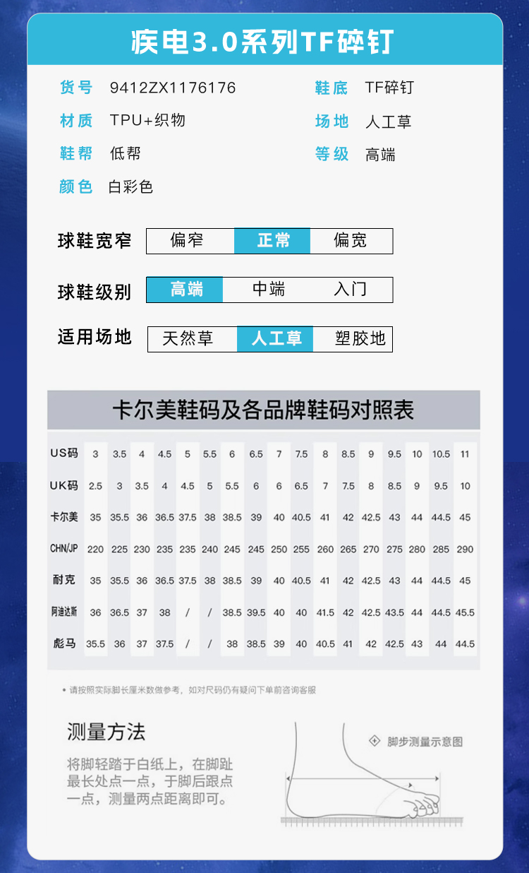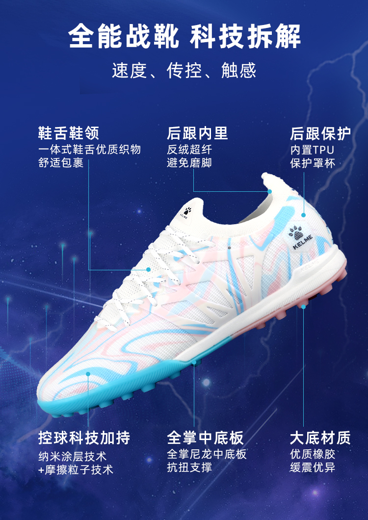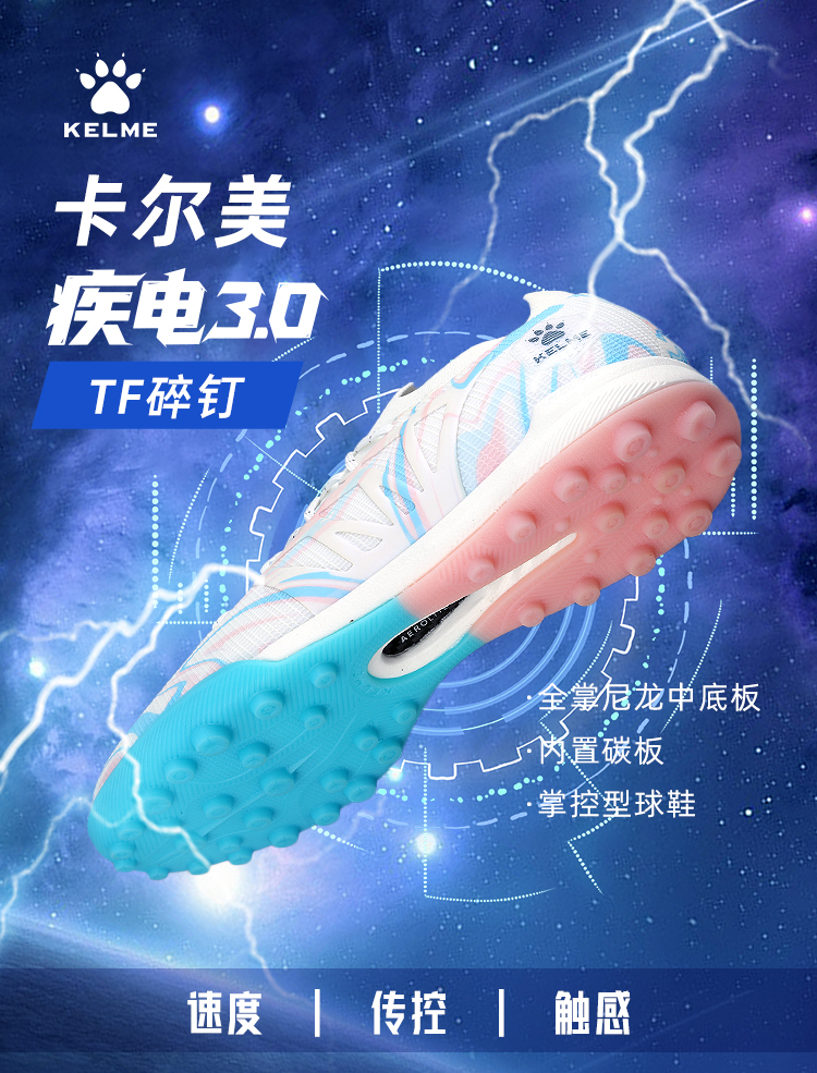 小李子KELME卡尔美疾电3.0.4中端TF碎钉运动训练成人足球鞋男款