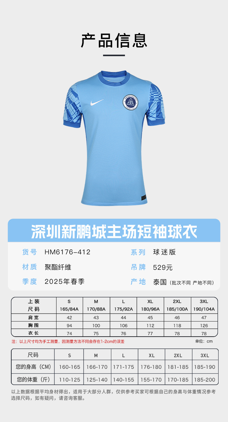 NIKE/耐克 AS SZPC M NK DF JSY SS STAD HM 2025中超联赛 深圳新鹏城 主场短袖球衣 球迷版 HM6176-412