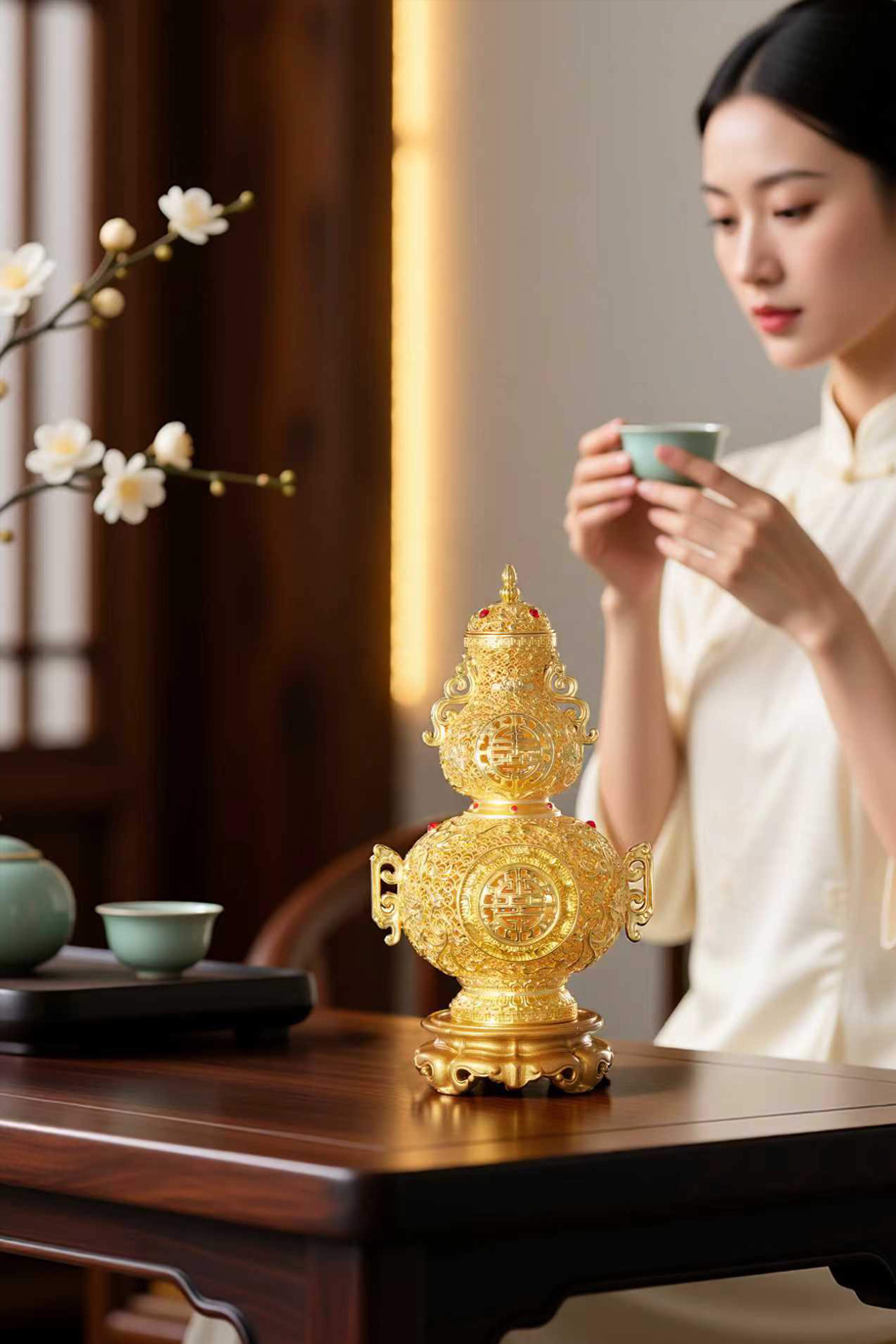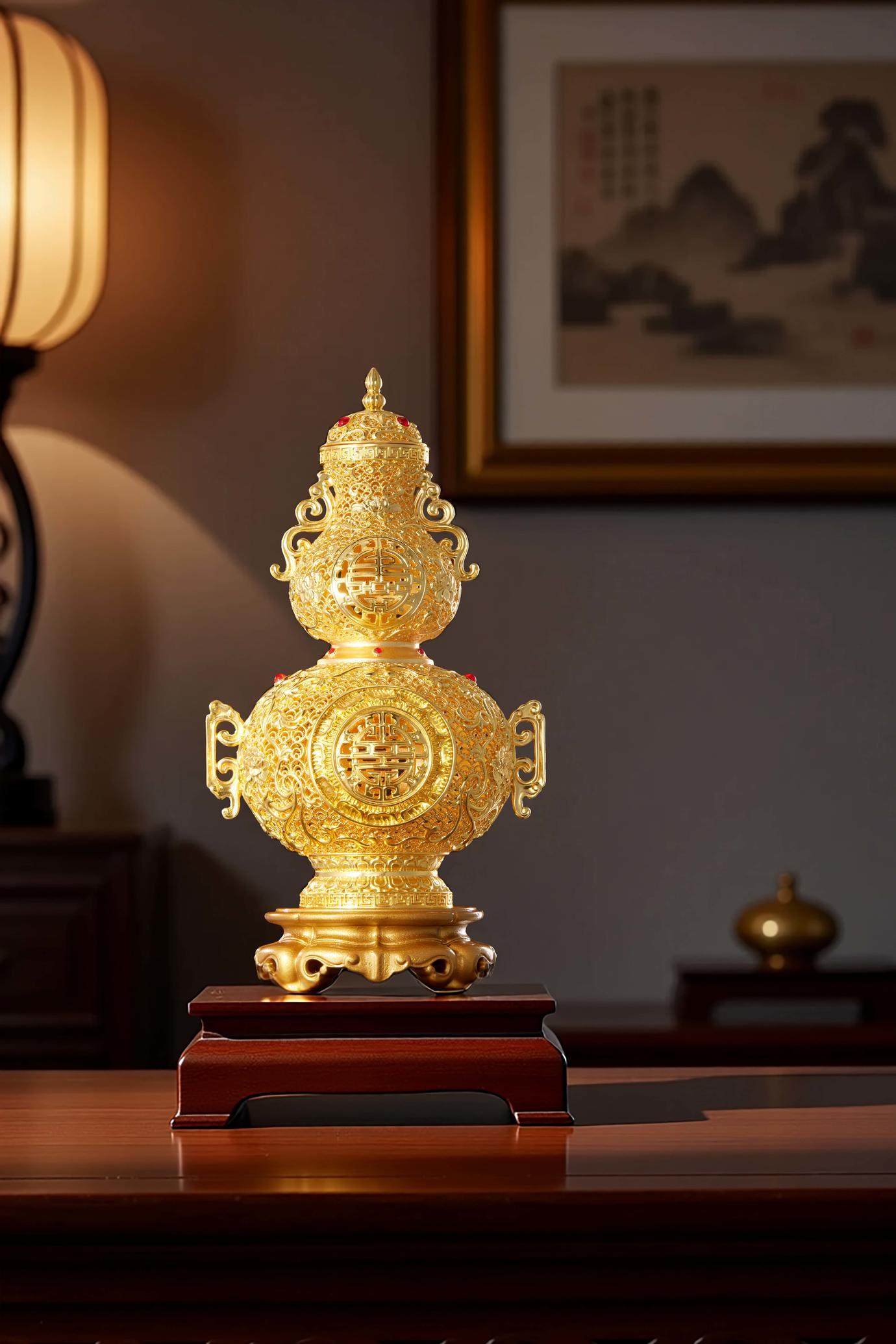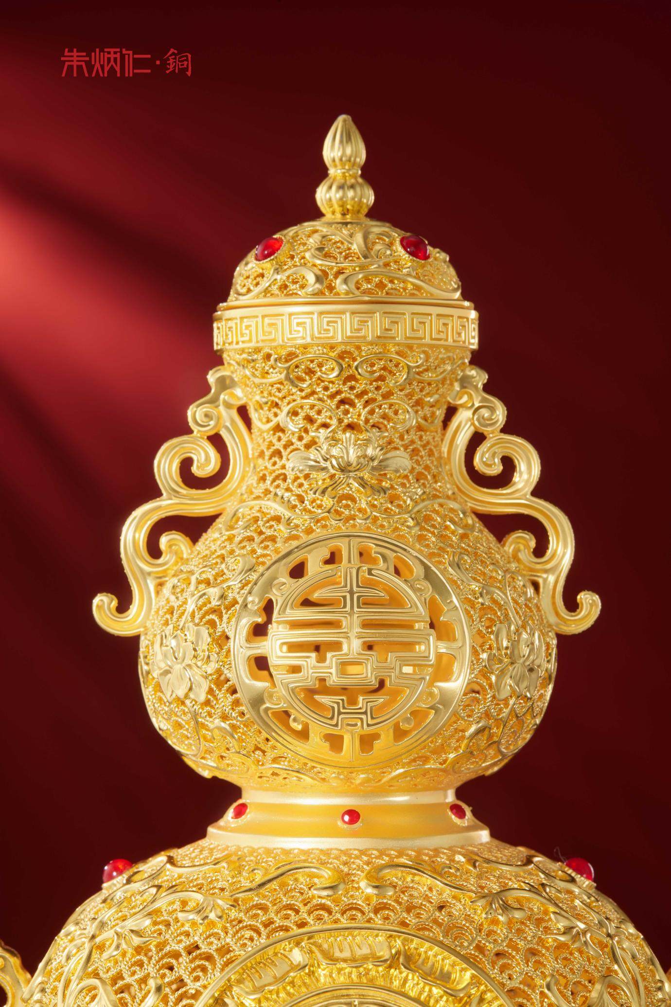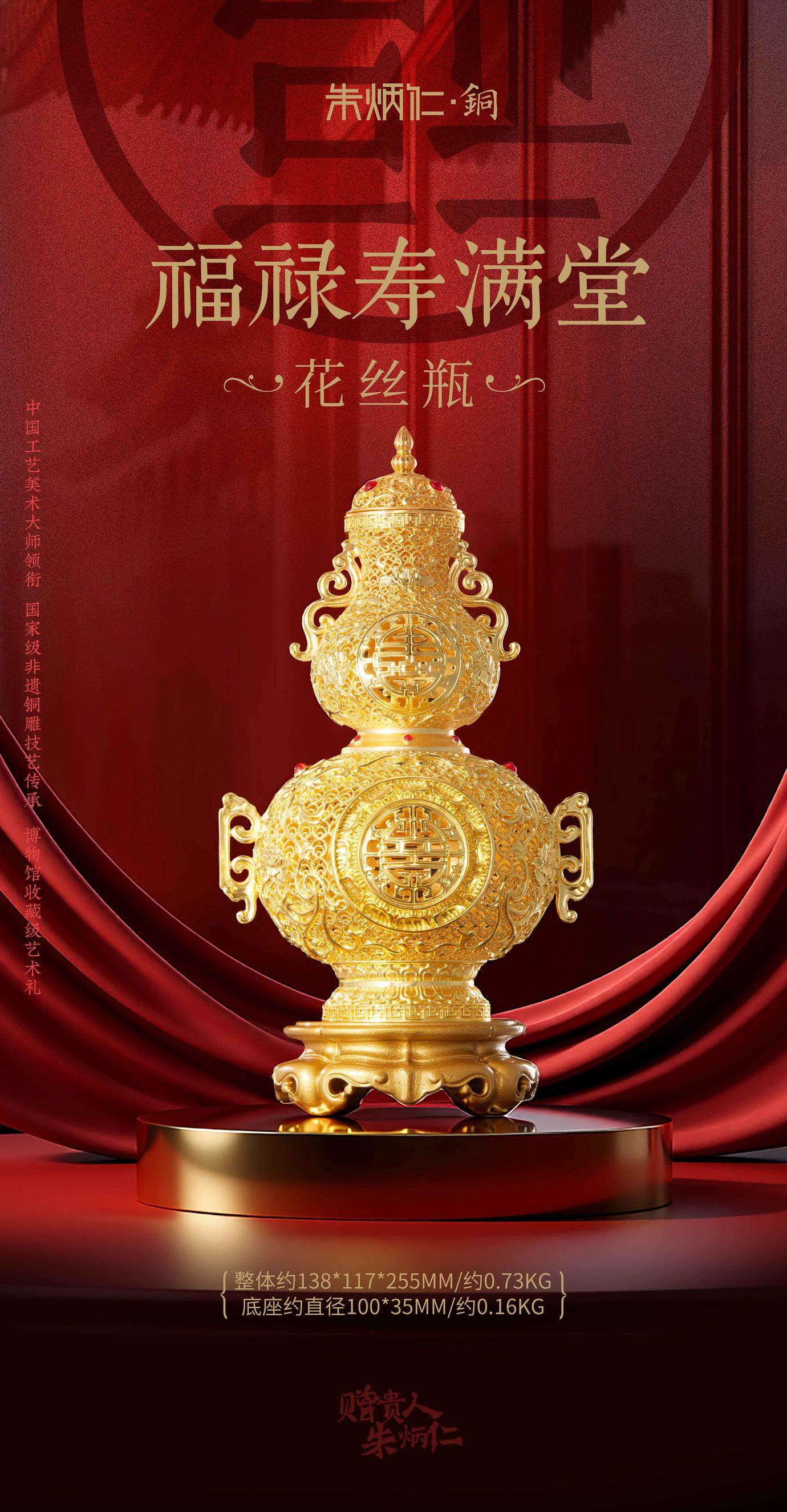 朱炳仁铜 福禄寿满堂花丝瓶 乔迁开业商务公司礼品办公室家居礼物新