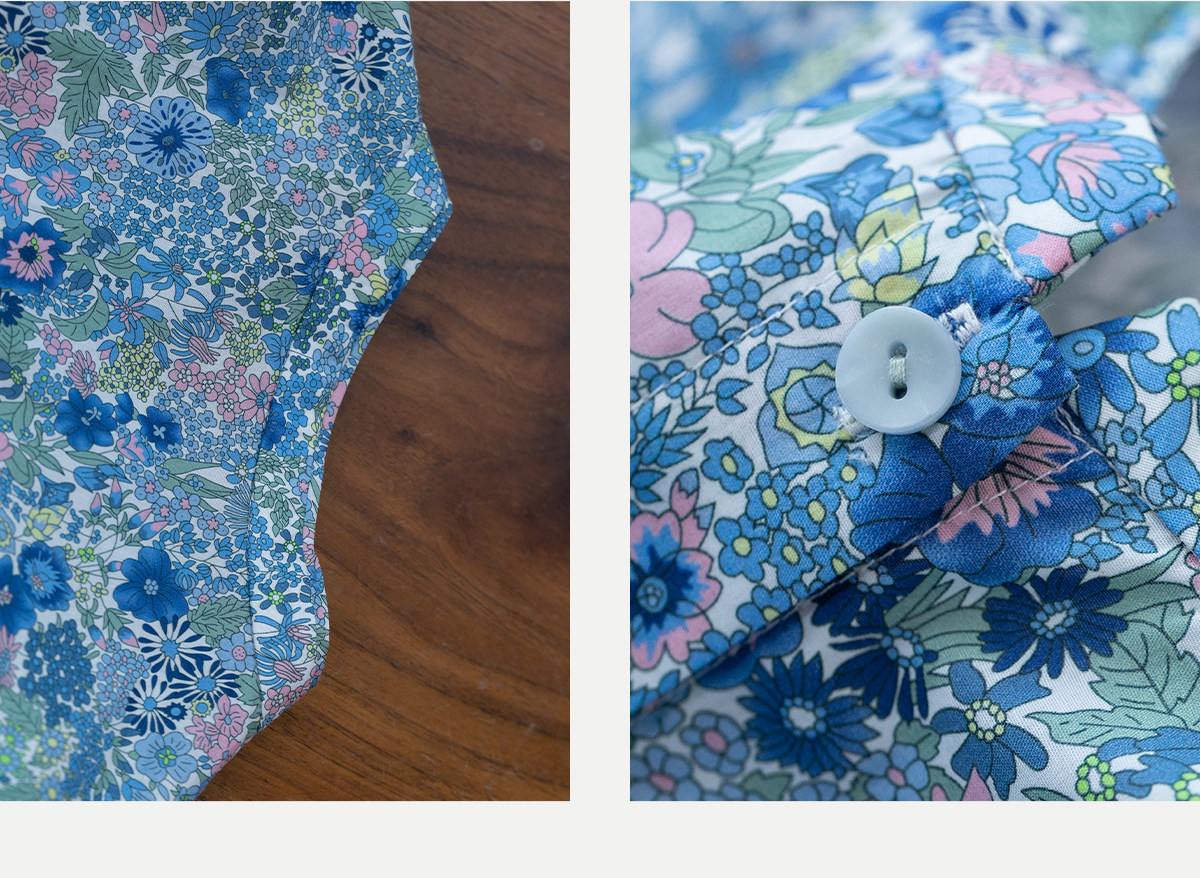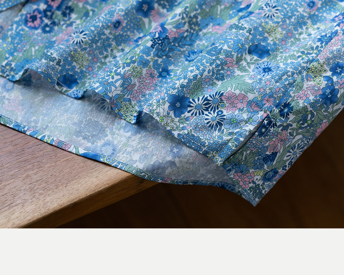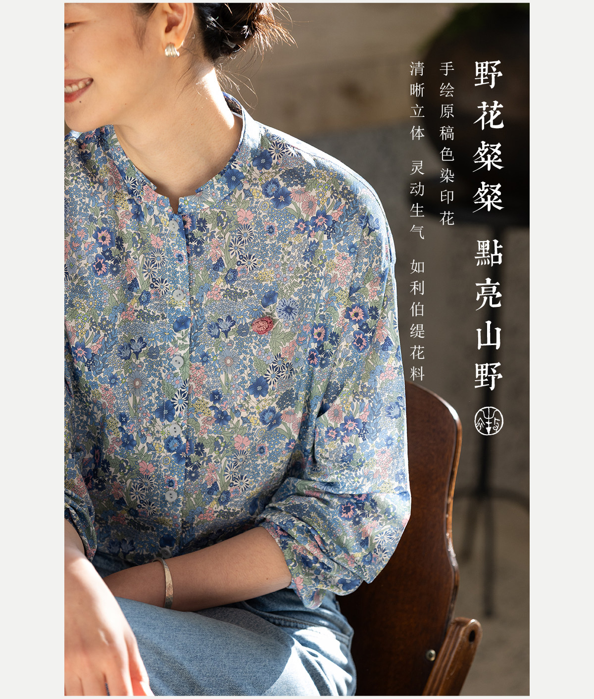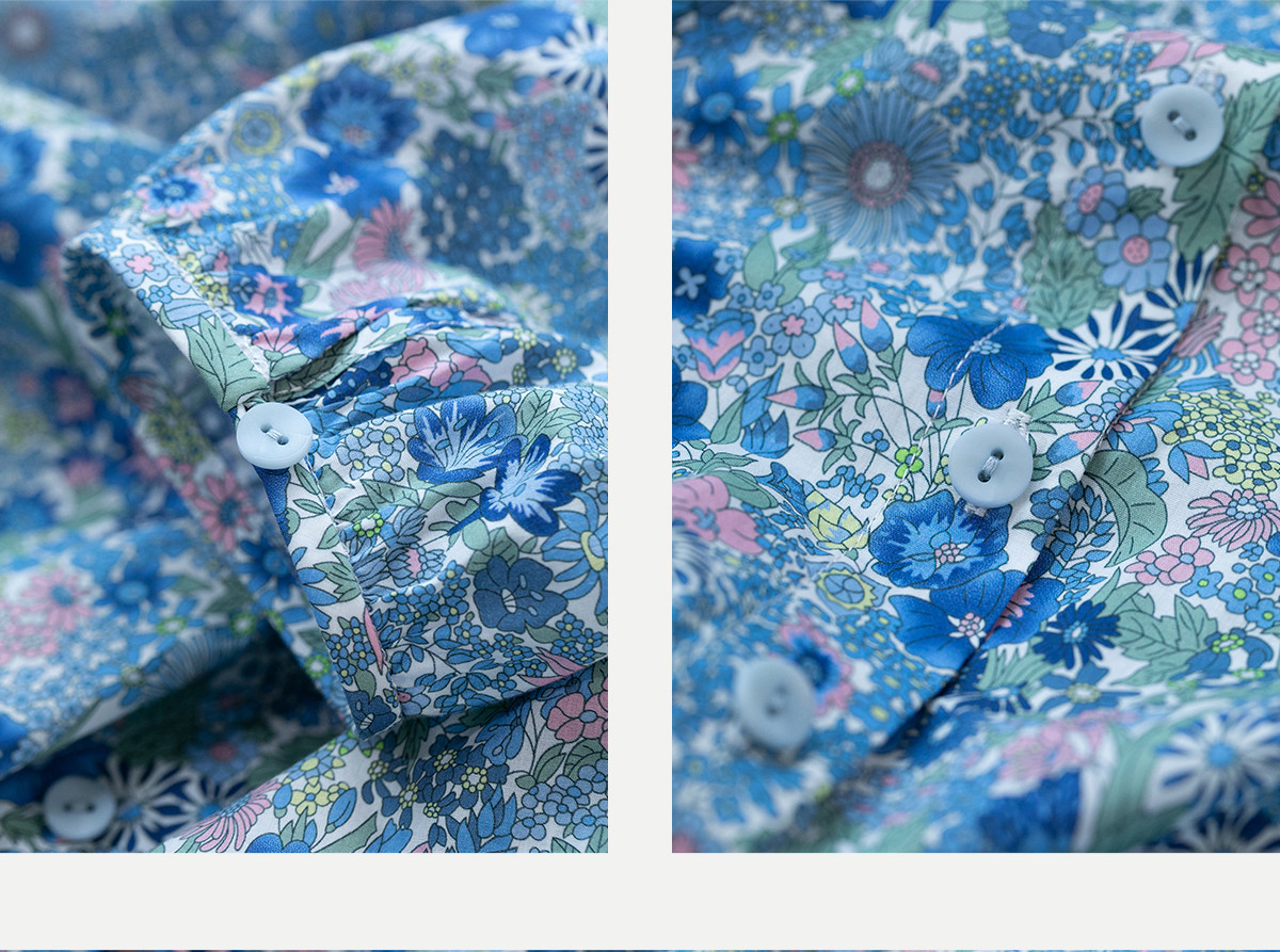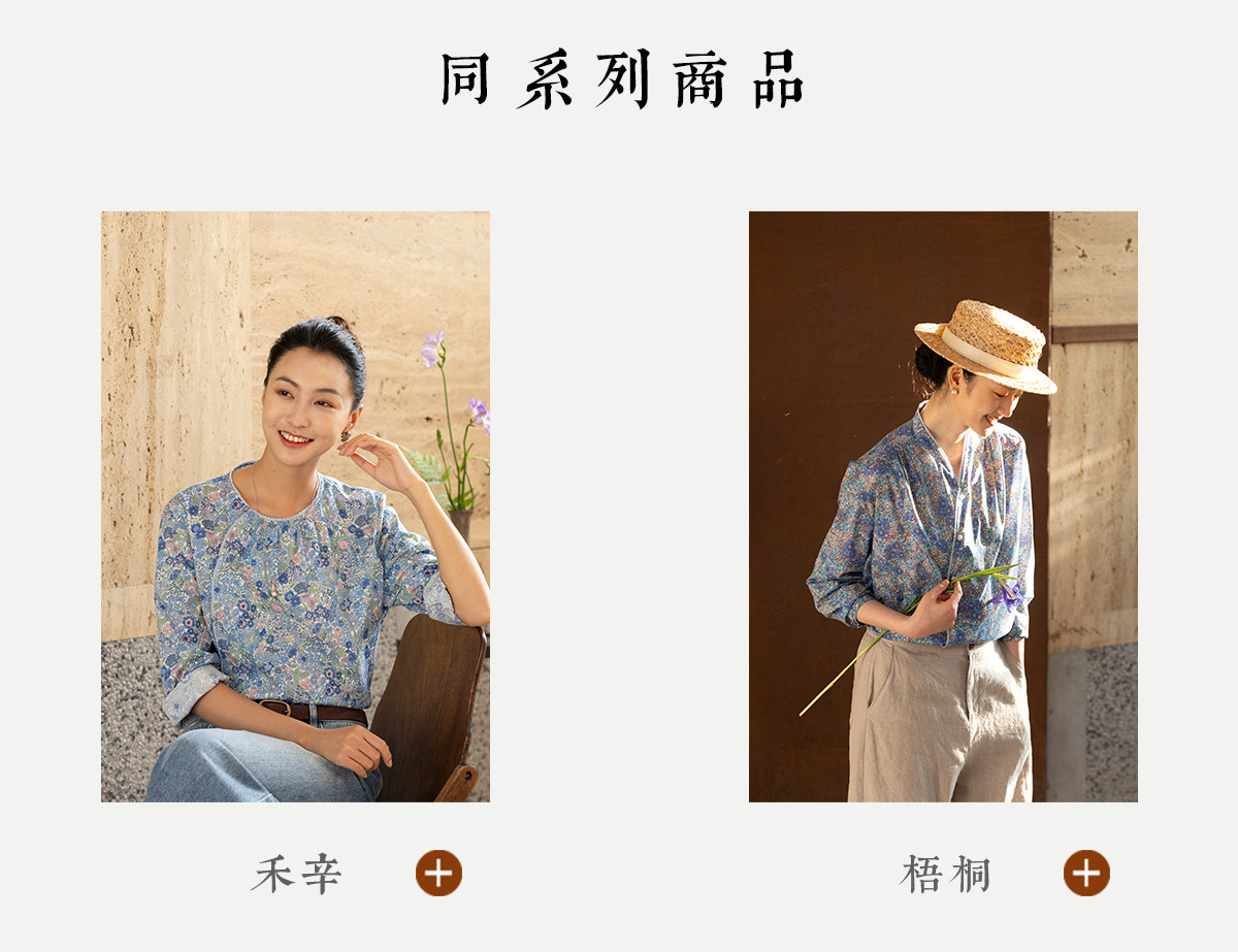 牧衣游原创 80支新疆长绒棉印花衬衫新款通勤文艺蓝色衬衣 游京
