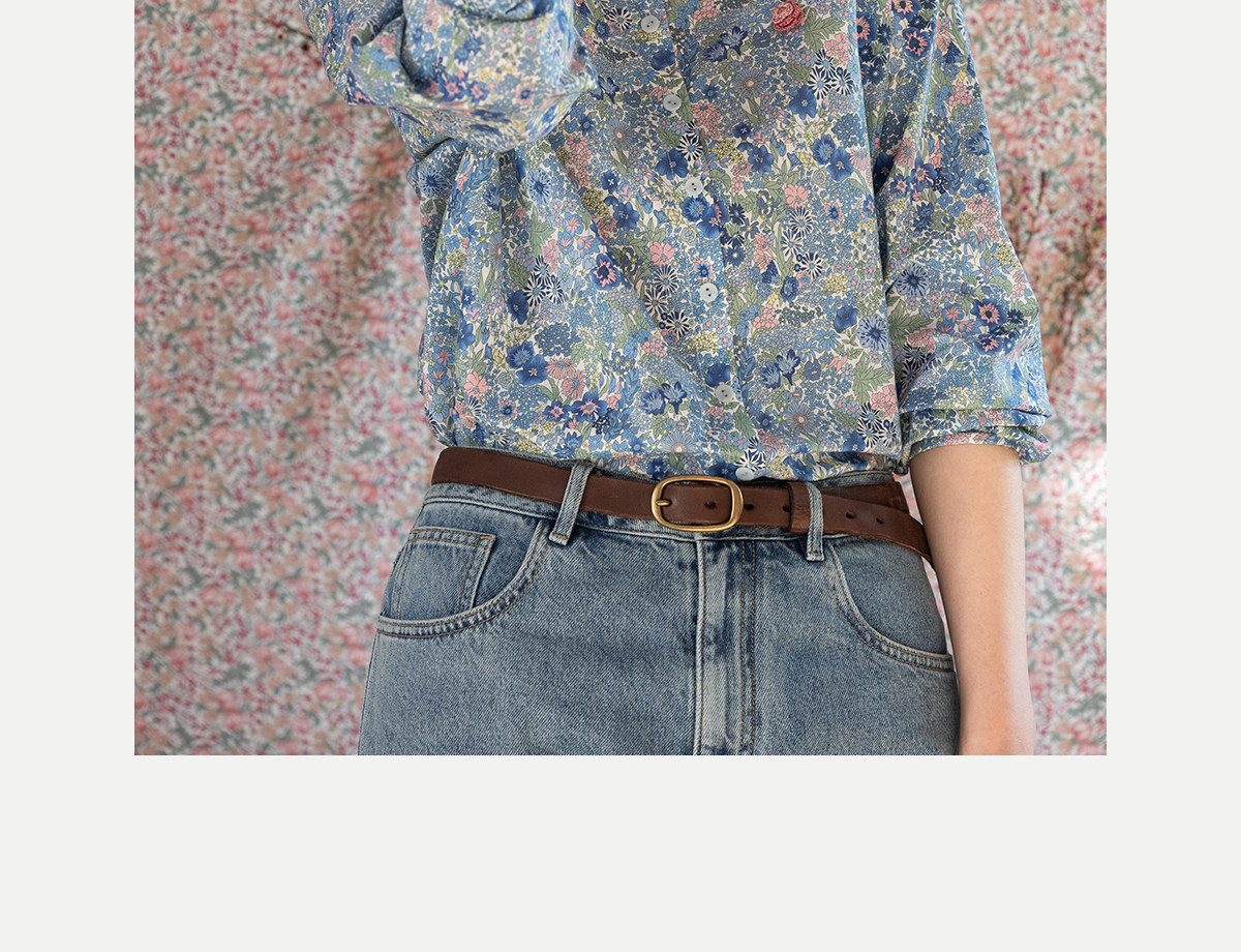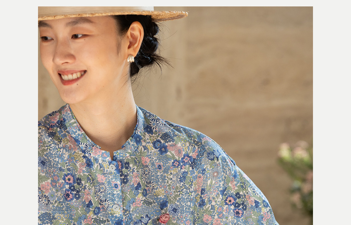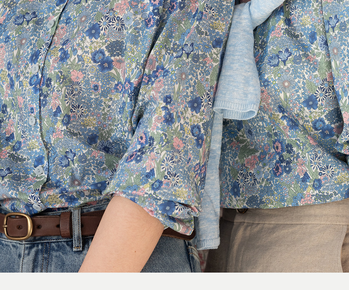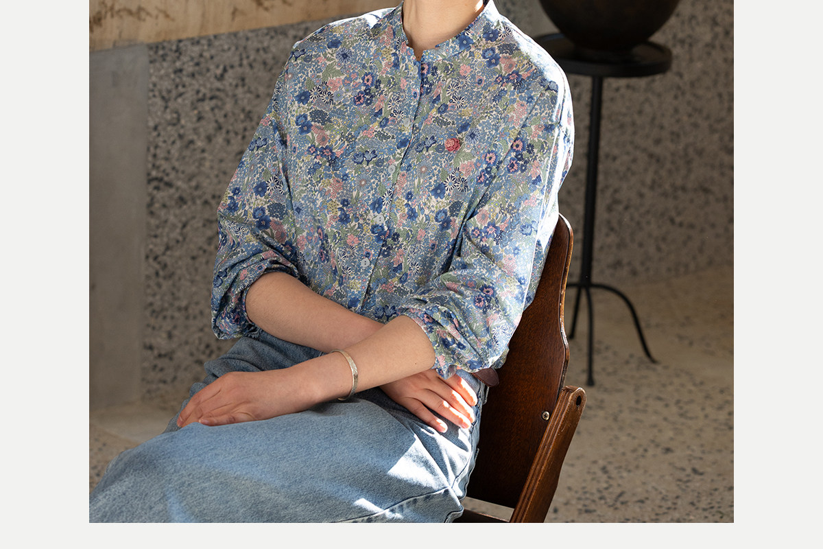 牧衣游原创 80支新疆长绒棉印花衬衫新款通勤文艺蓝色衬衣 游京