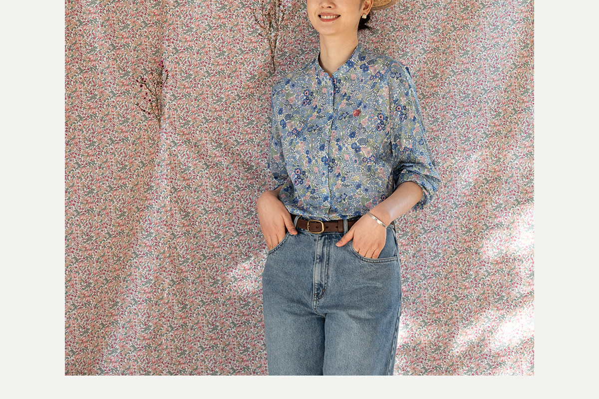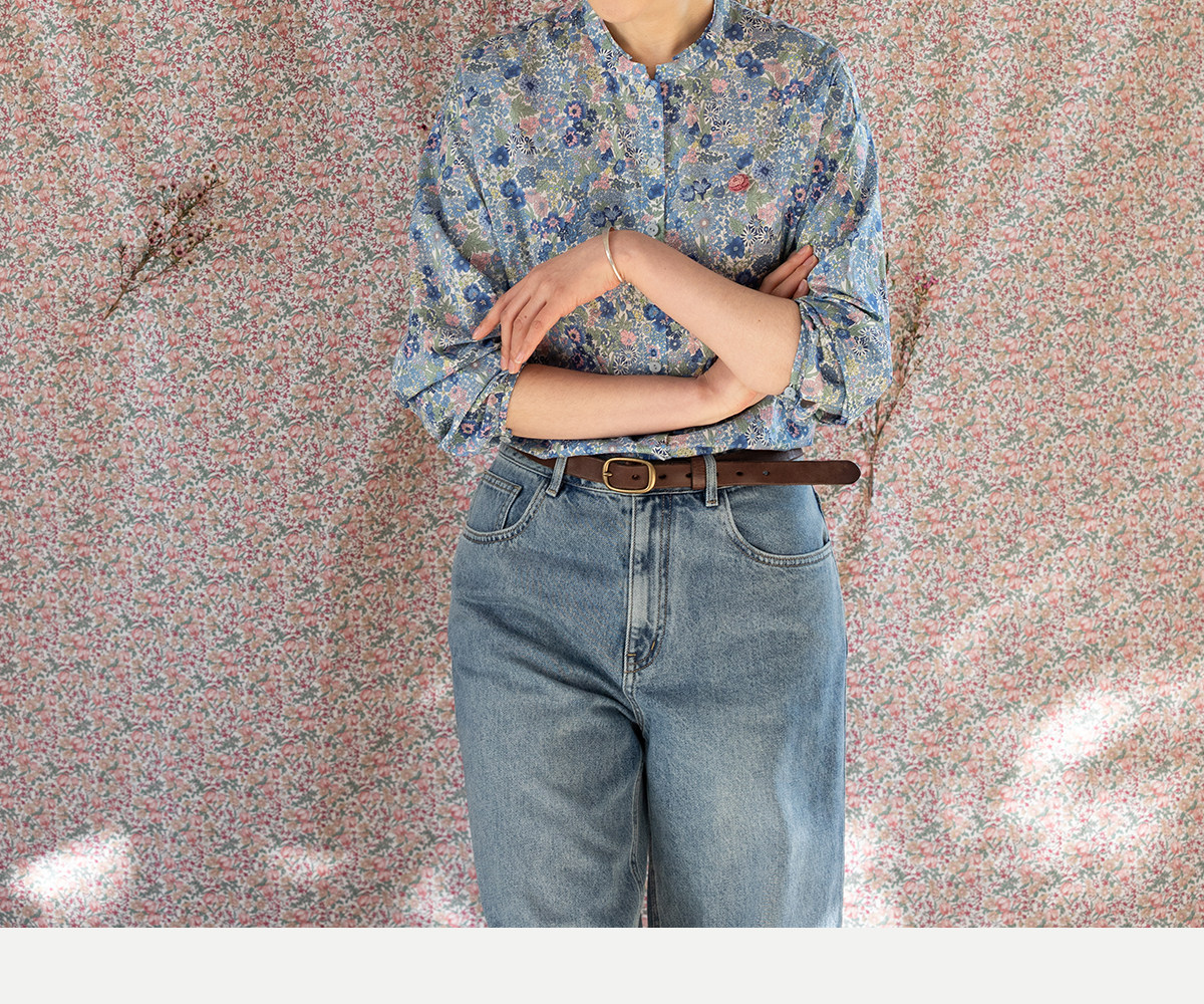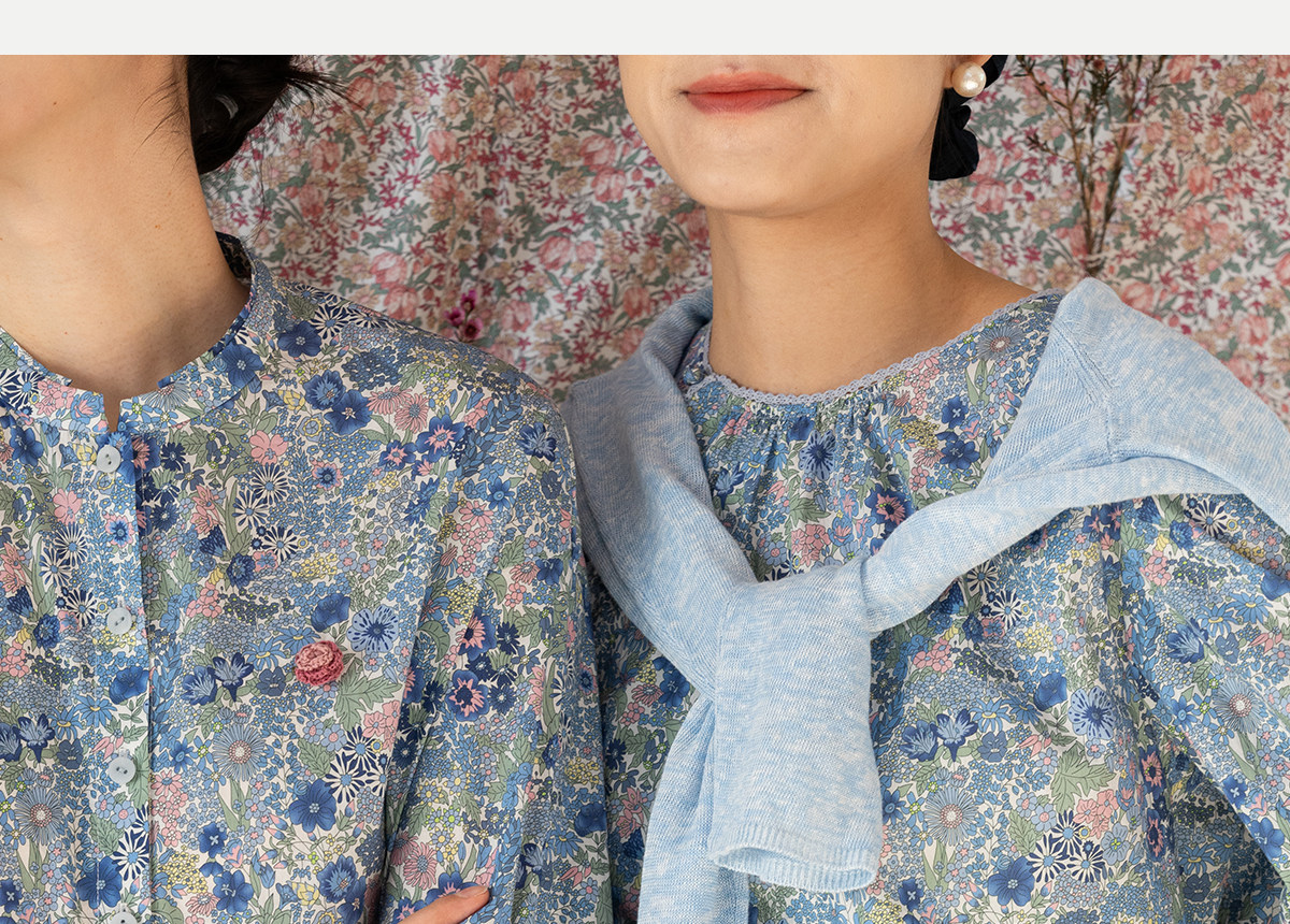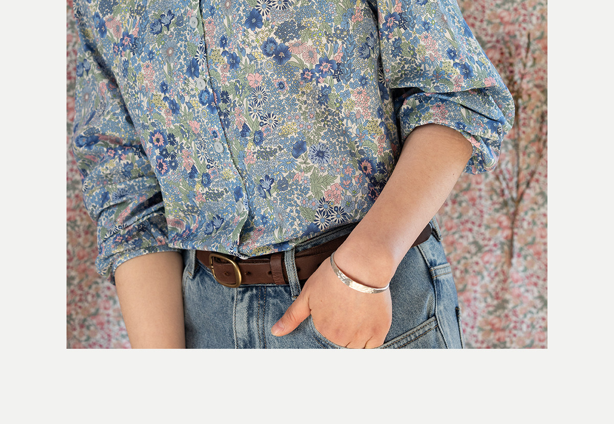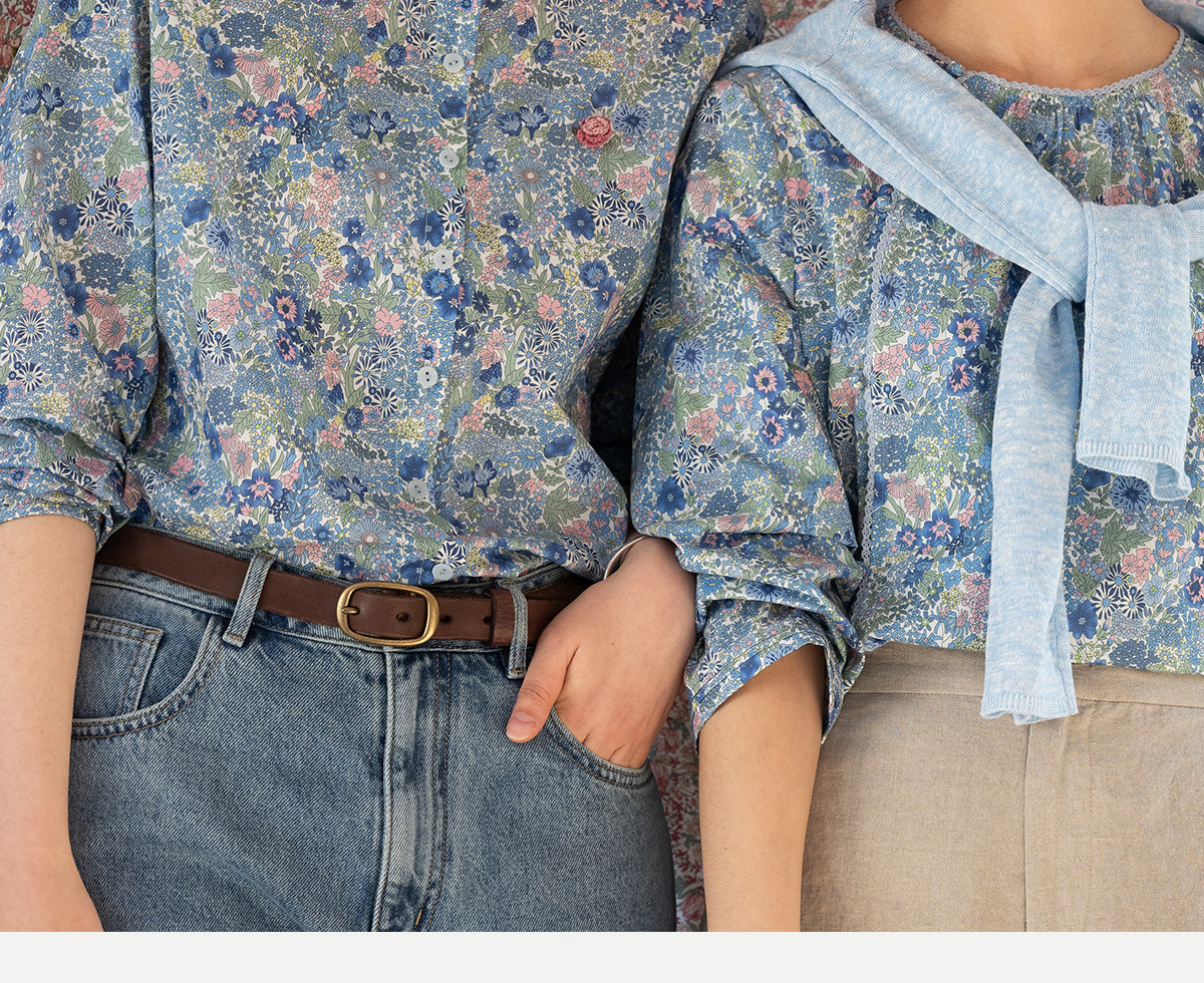 牧衣游原创 80支新疆长绒棉印花衬衫新款通勤文艺蓝色衬衣 游京