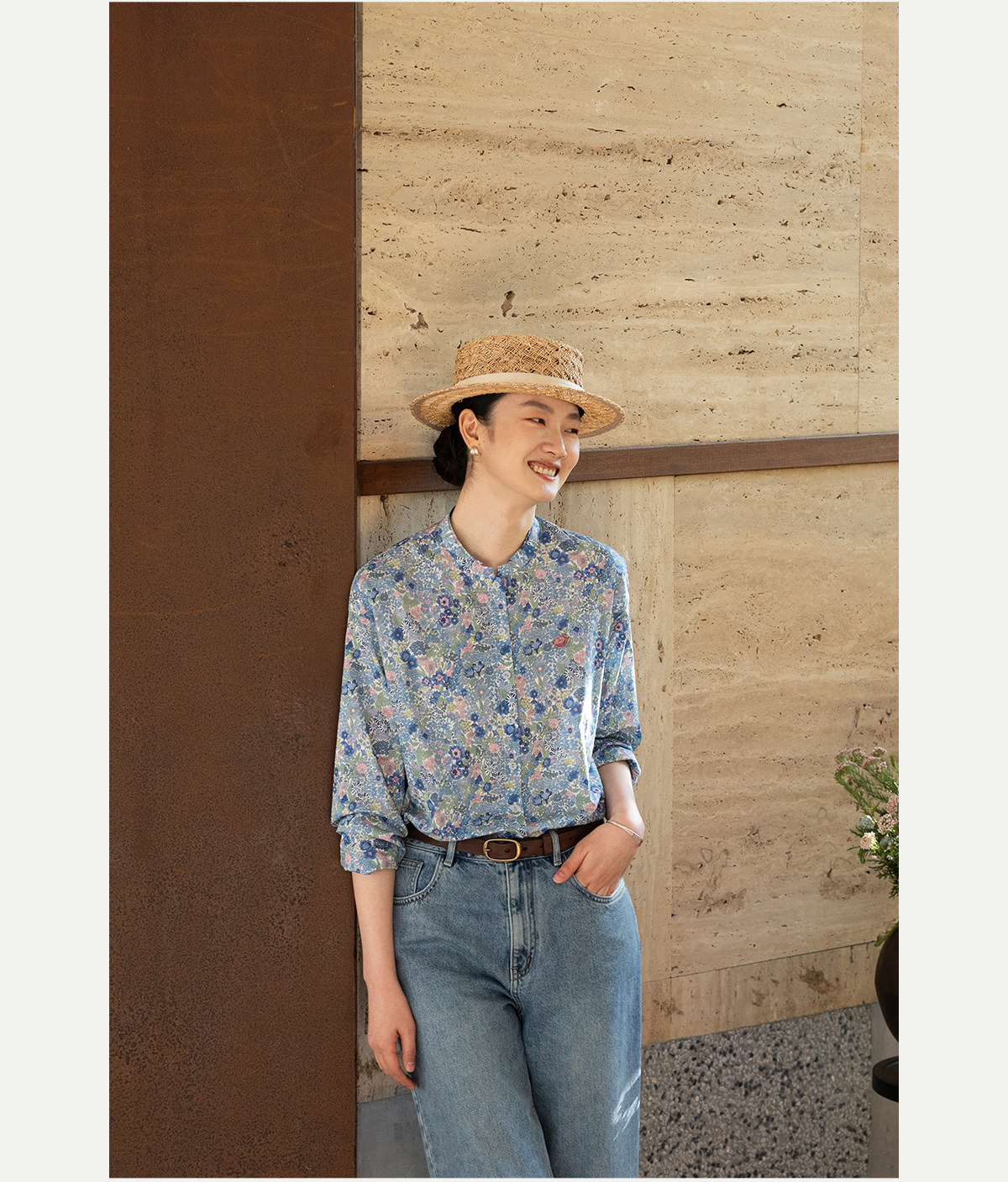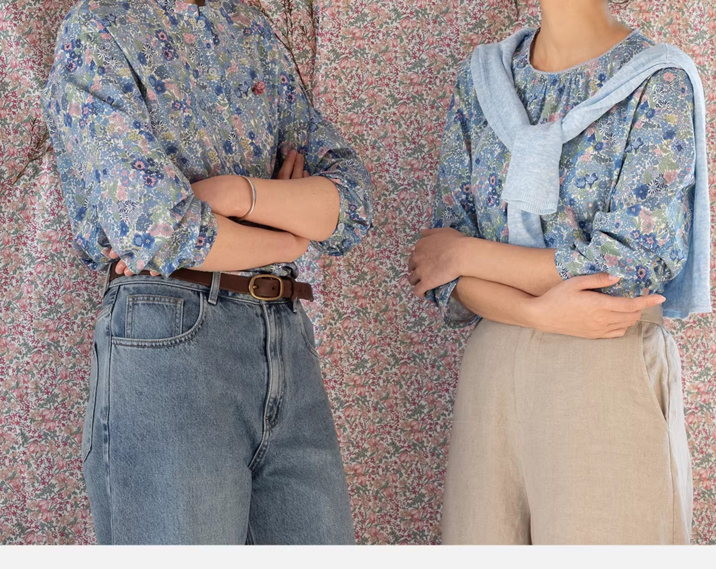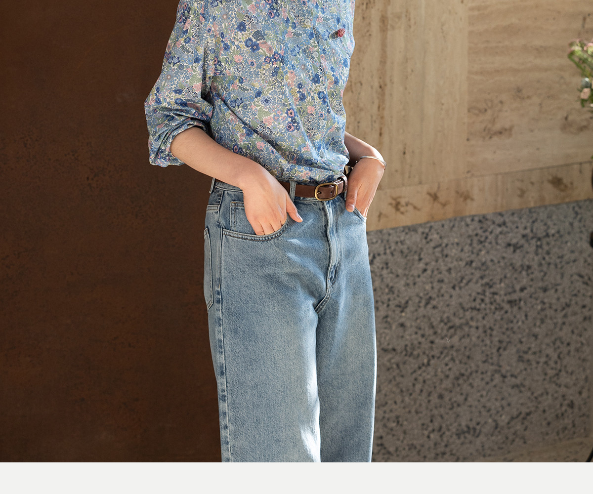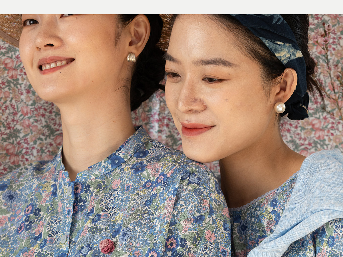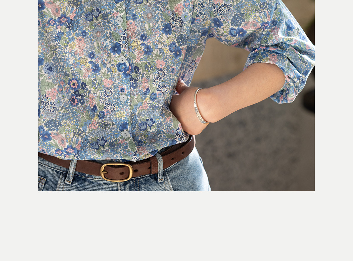 牧衣游原创 80支新疆长绒棉印花衬衫新款通勤文艺蓝色衬衣 游京
