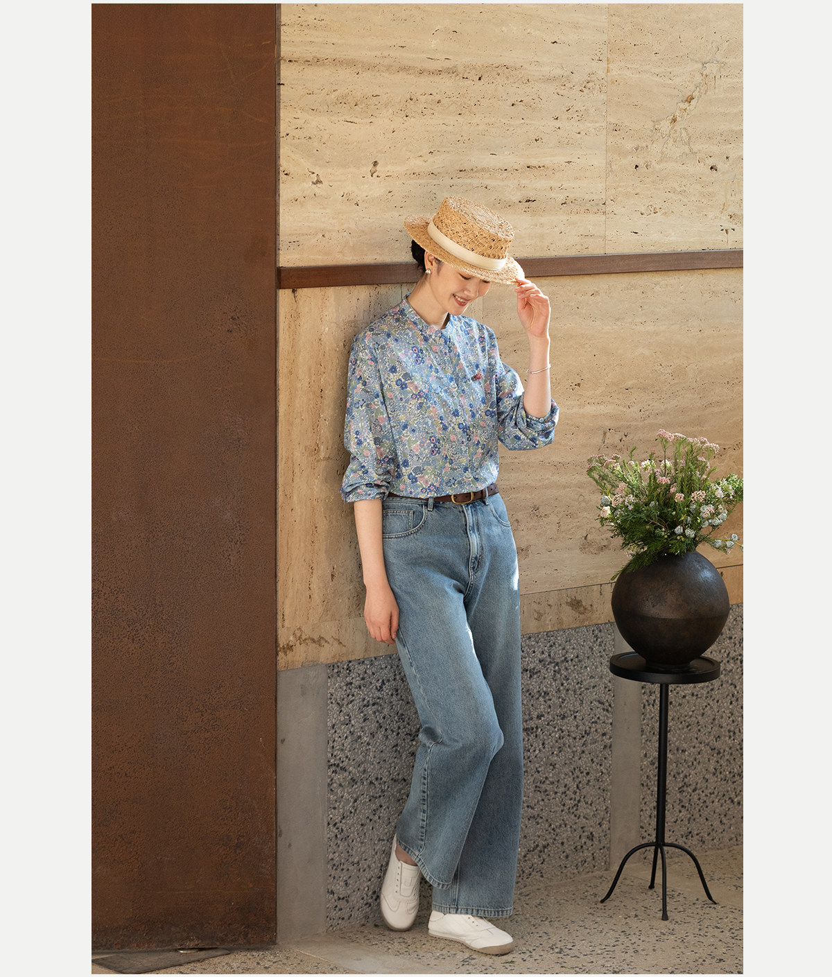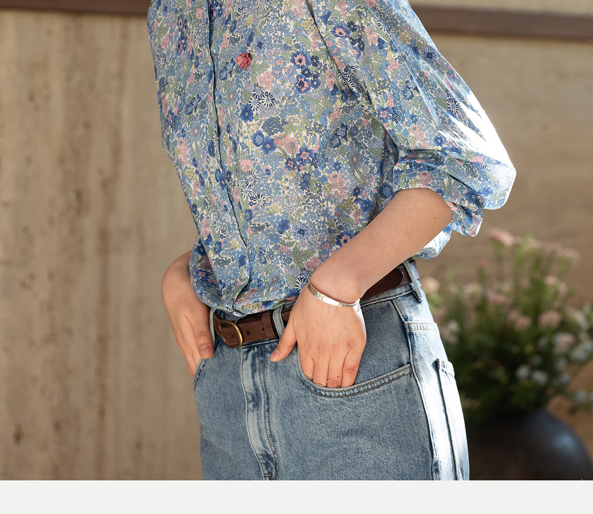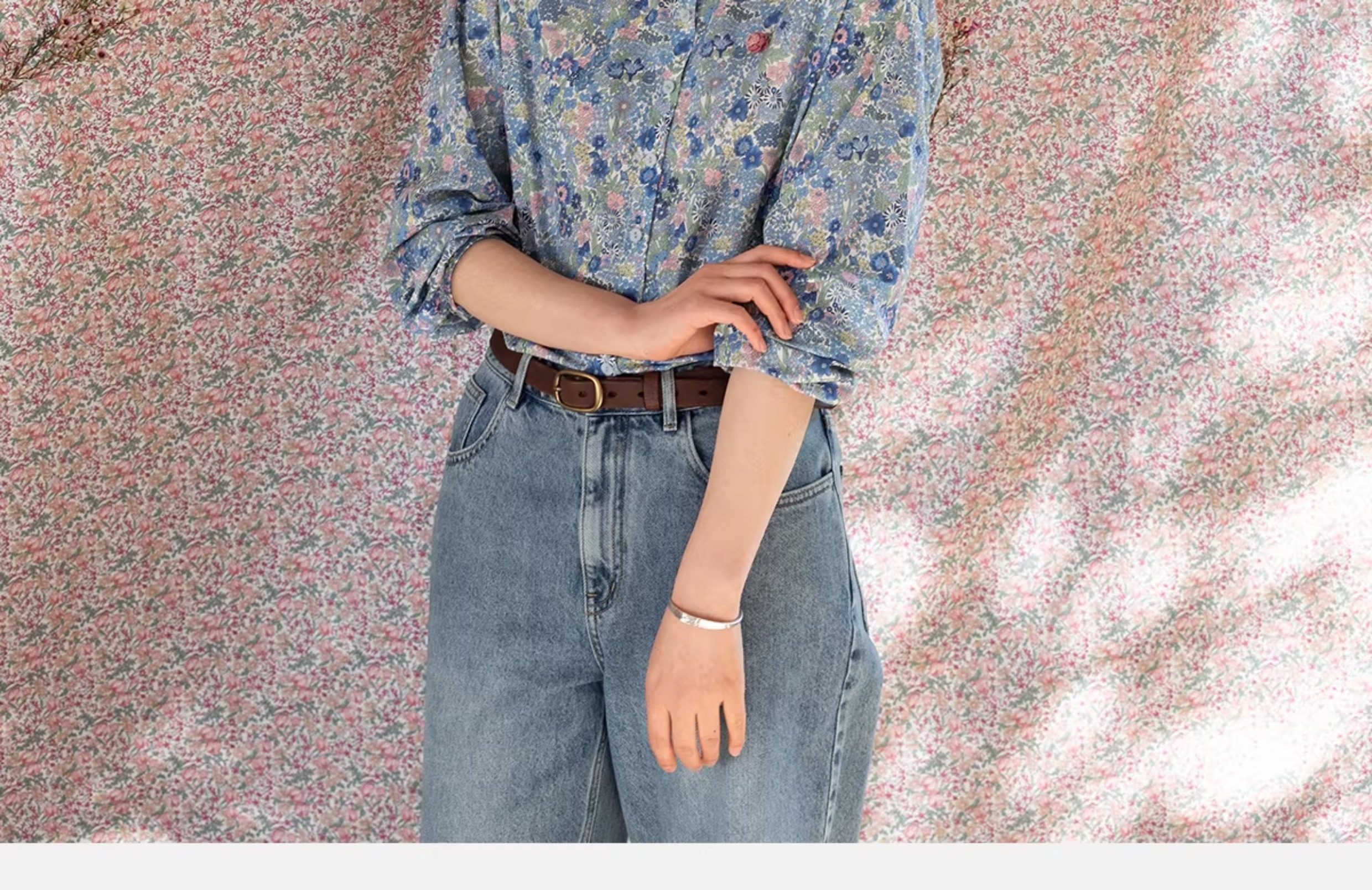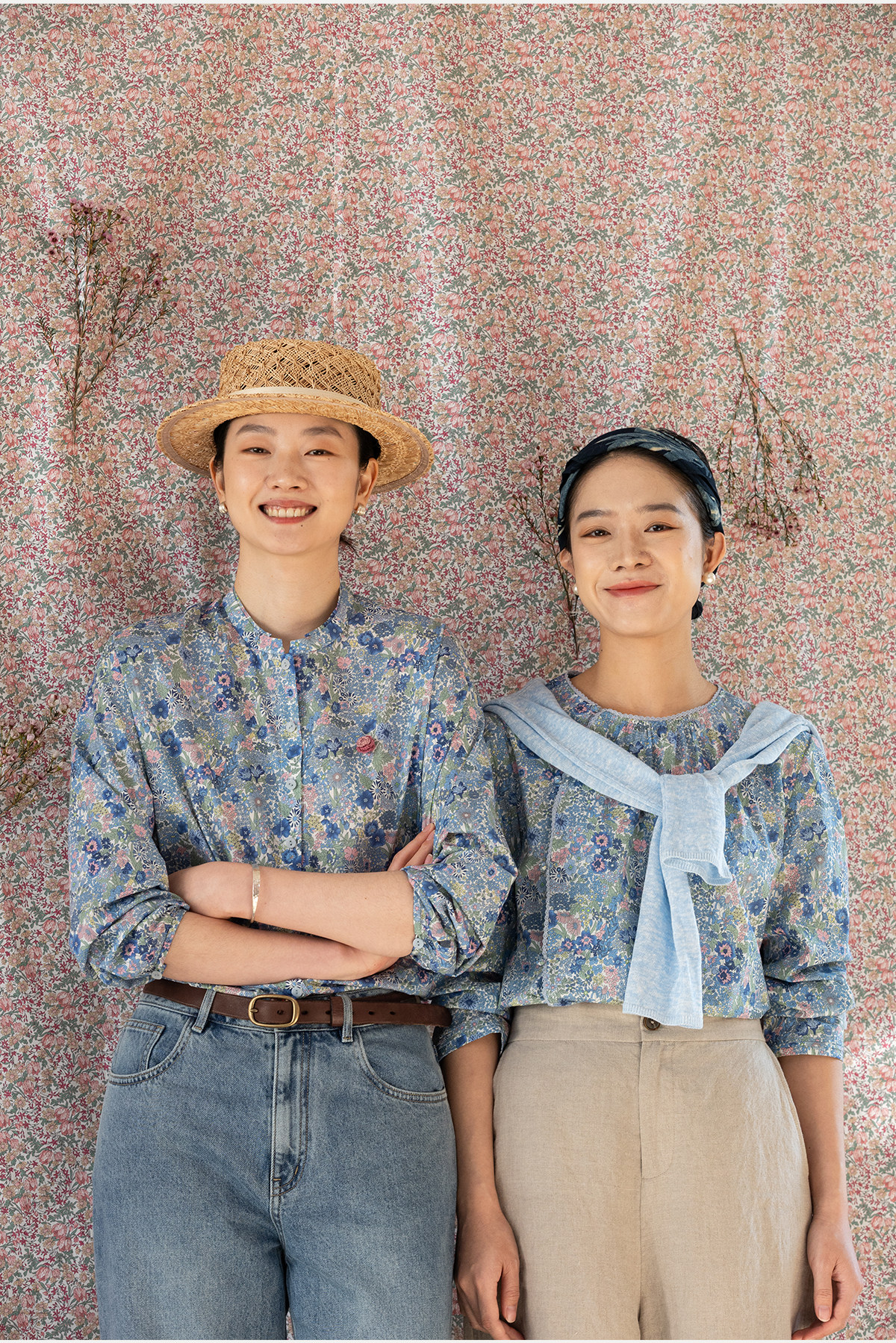 牧衣游原创 80支新疆长绒棉印花衬衫新款通勤文艺蓝色衬衣 游京