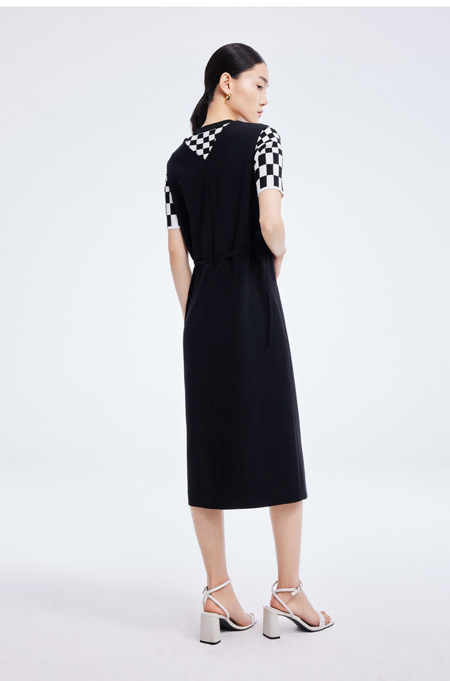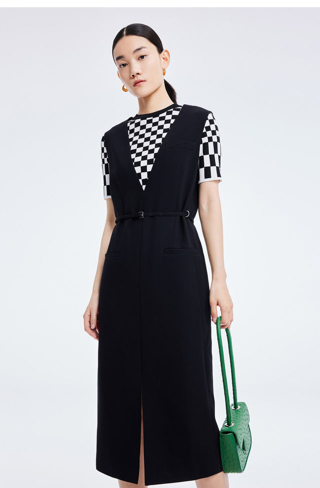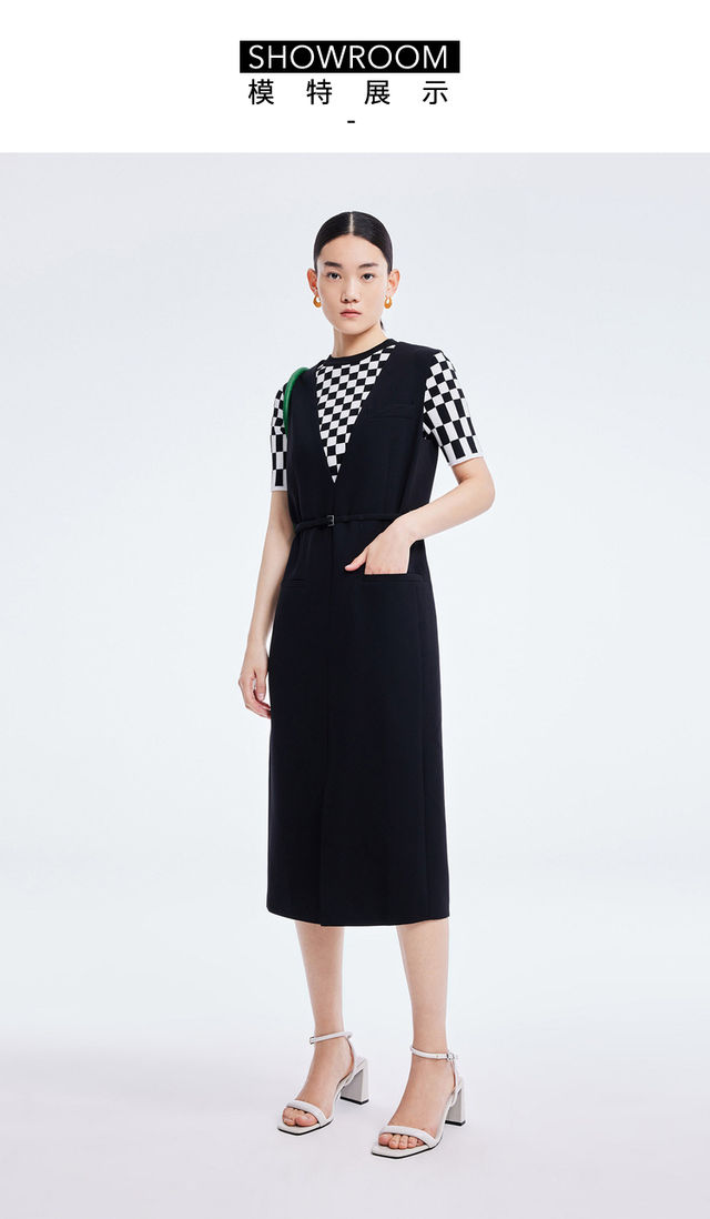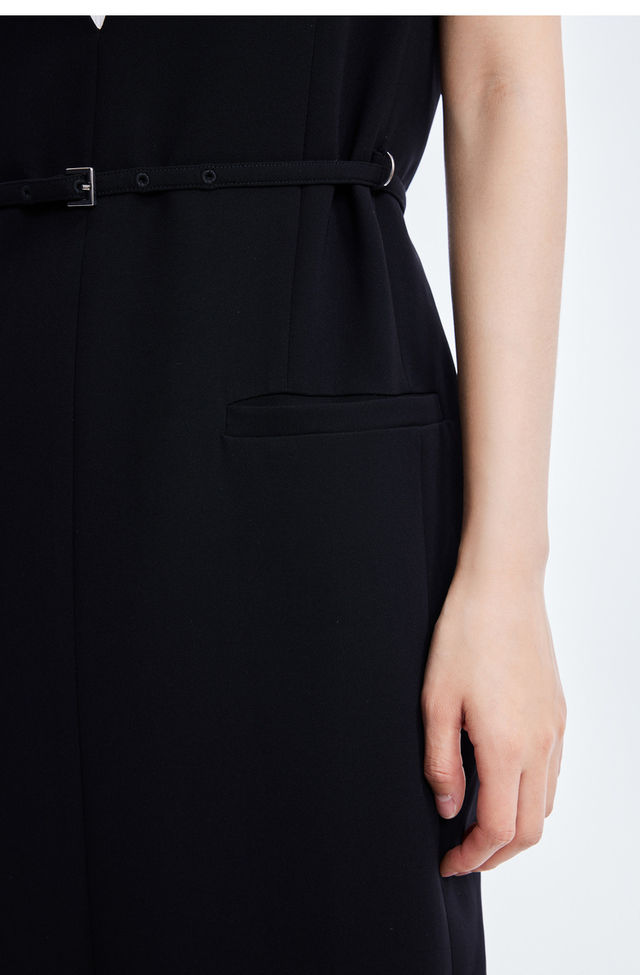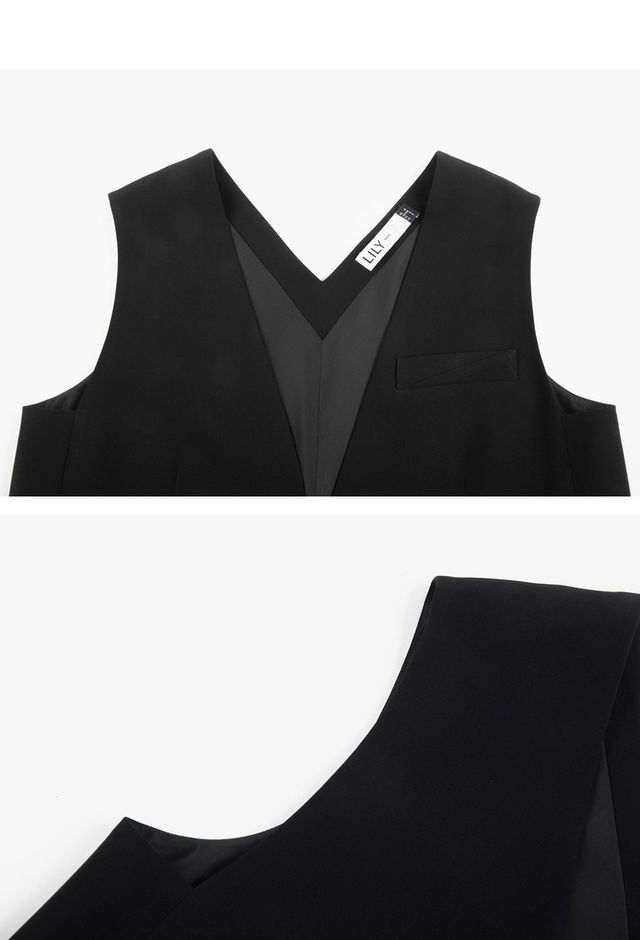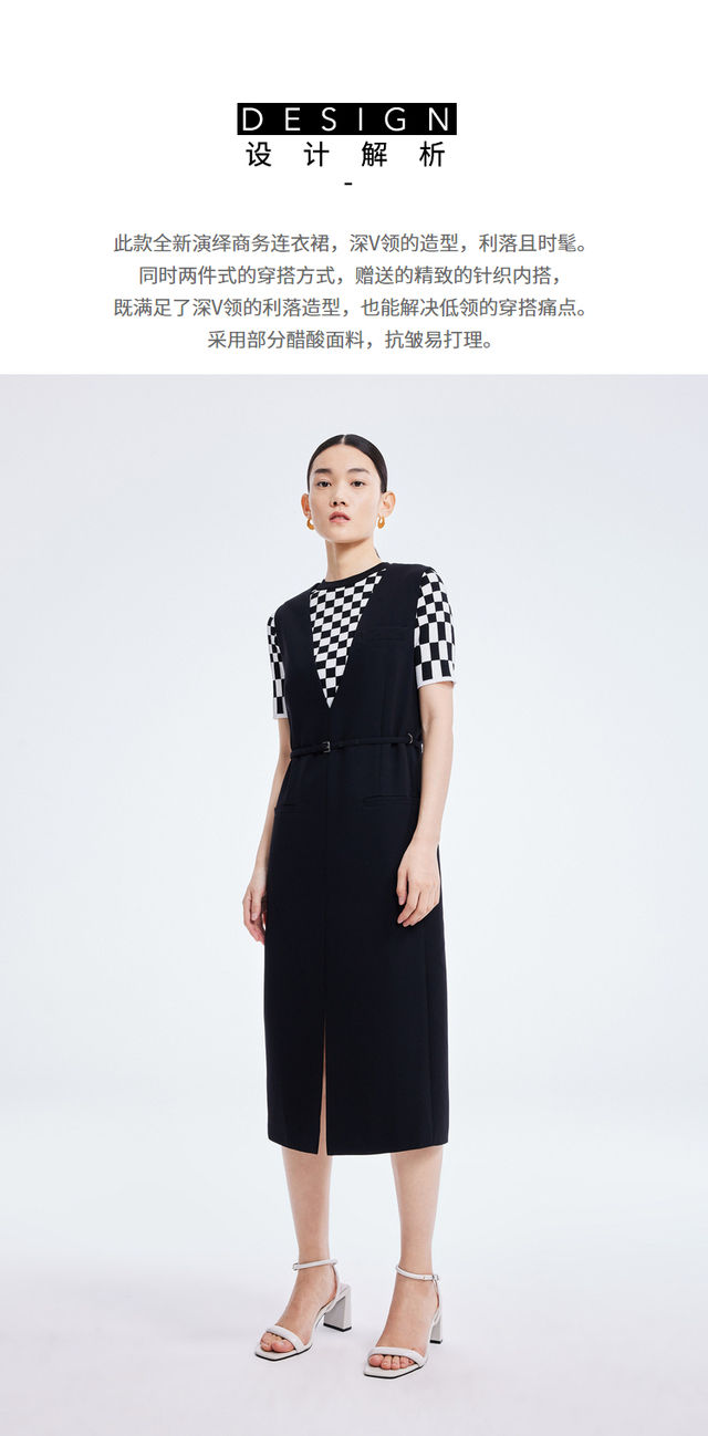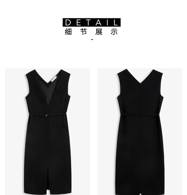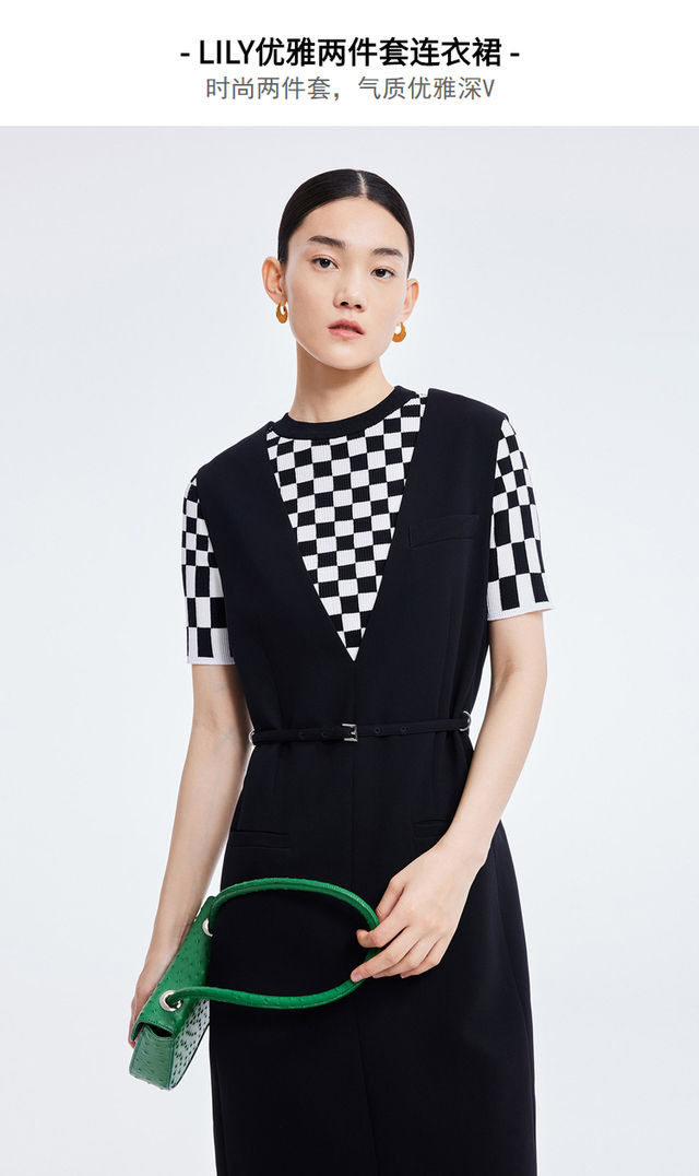 LILY2022夏新款女装时尚优雅V领洋气小黑裙连衣裙女122200C7117