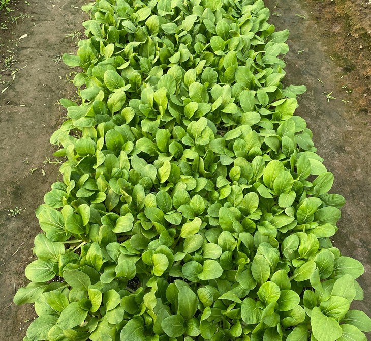 中矮箕杂交青梗菜,生长势强,叶片鲜绿色、宽椭圆形,叶面光滑,叶柄短且宽。适应性广,具有良好耐热、耐寒性,且具有一定的耐抽薹性,根据生产需求可作“鸡毛菜”、小棵菜采收。