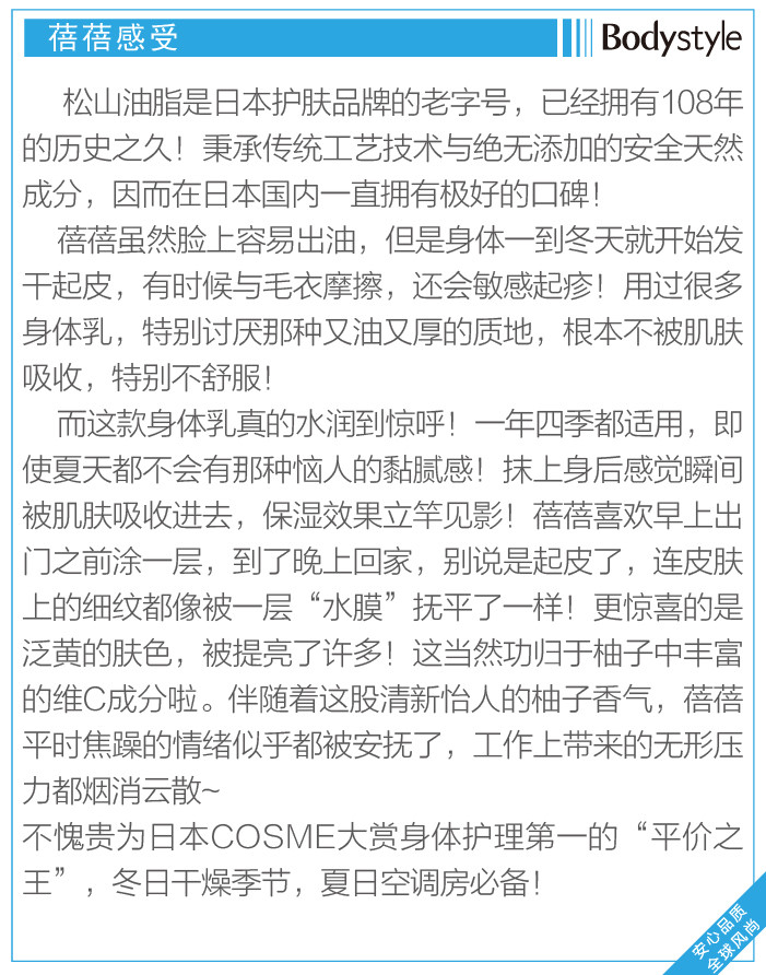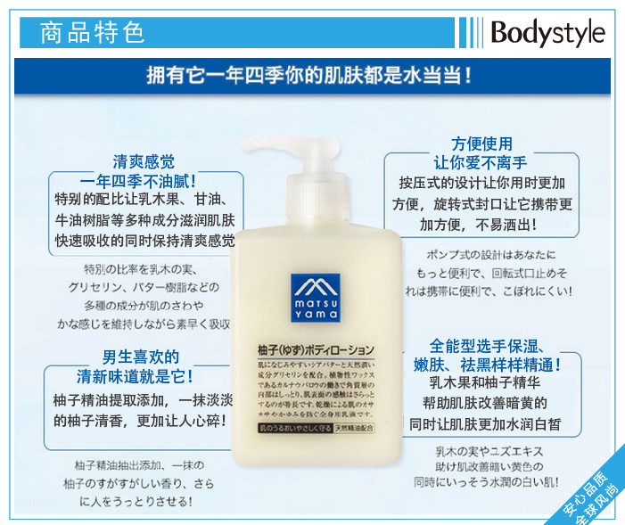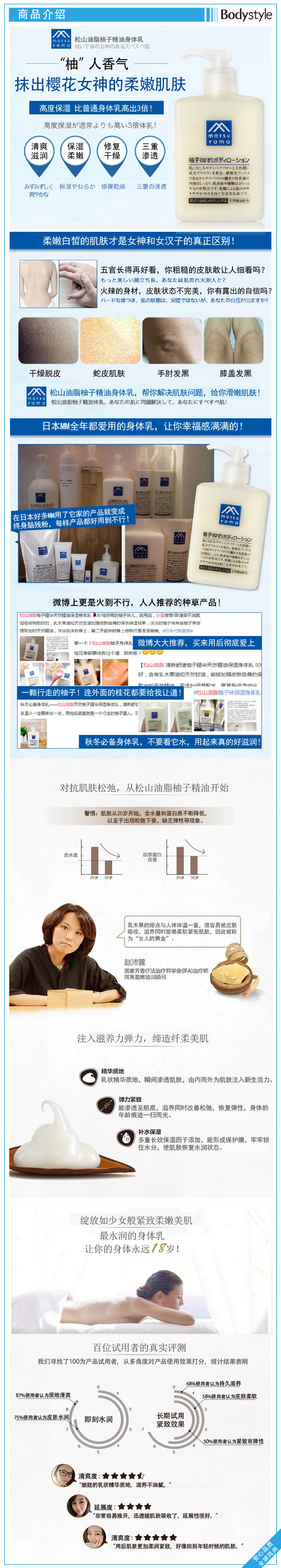 【不买会亏】日本松山柚子清新保湿身体乳300ml.108年老字号