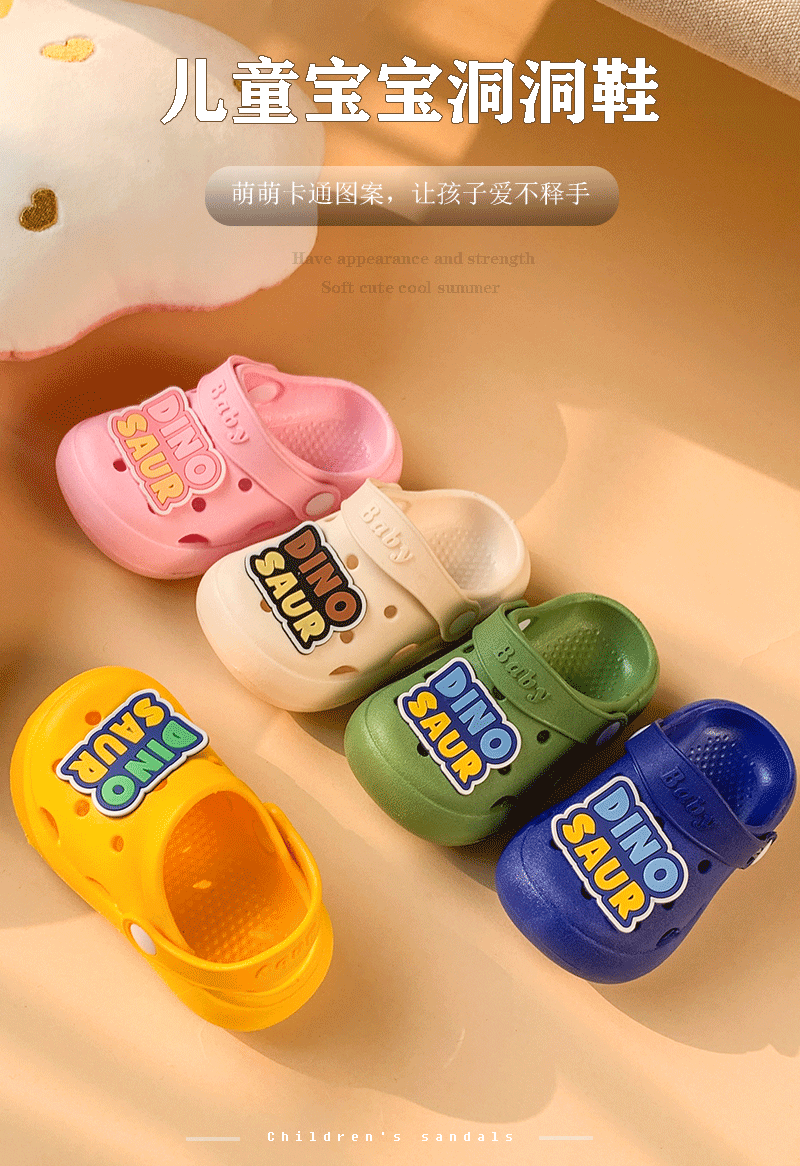 新款儿童卡通洞洞鞋,可爱恐龙图案,包头防滑,既适合沙滩穿着,也适合室内凉拖。男童女童都可以穿着,让孩子们更加活泼可爱;为孩子的玩乐安全护航!
