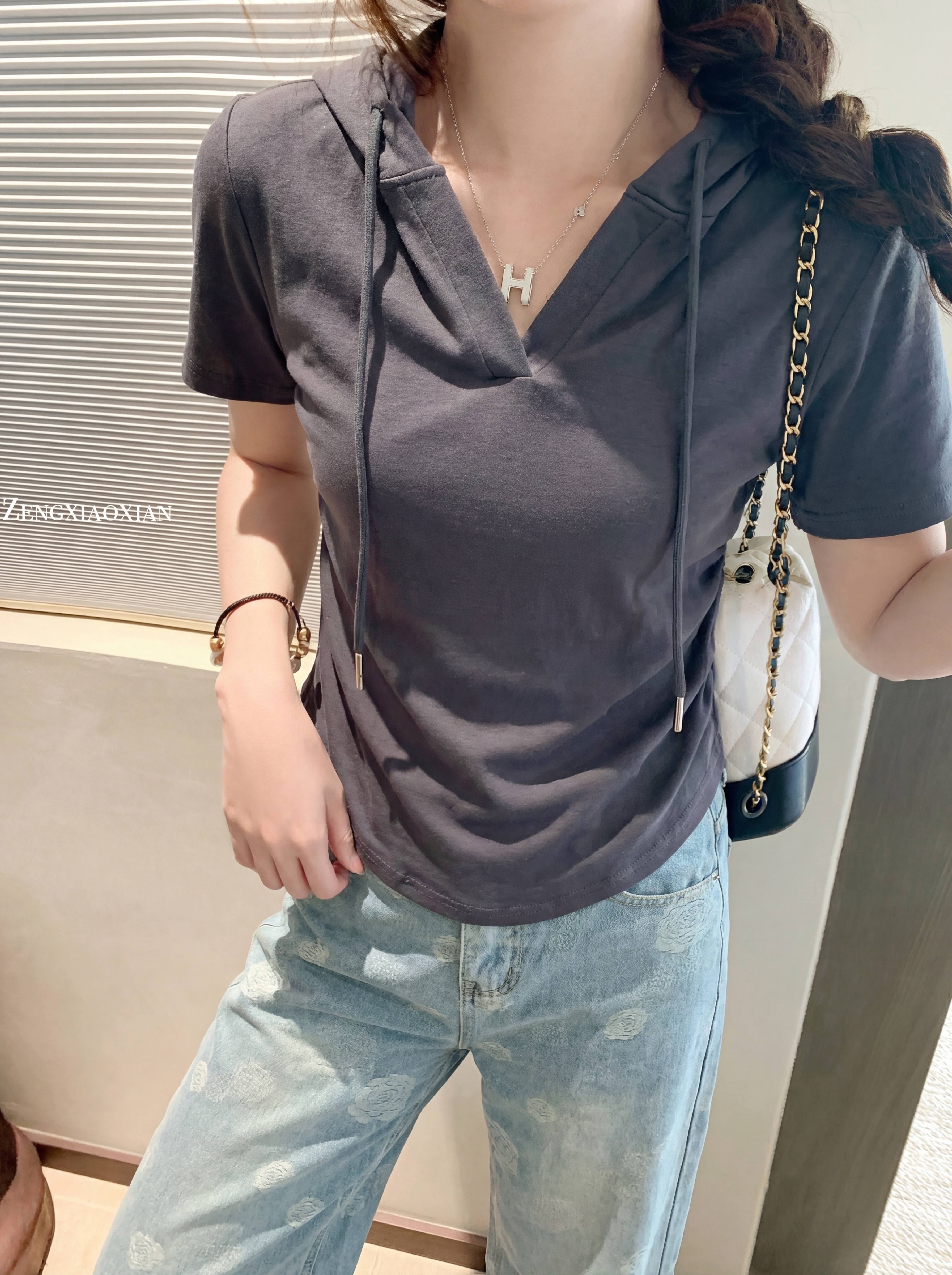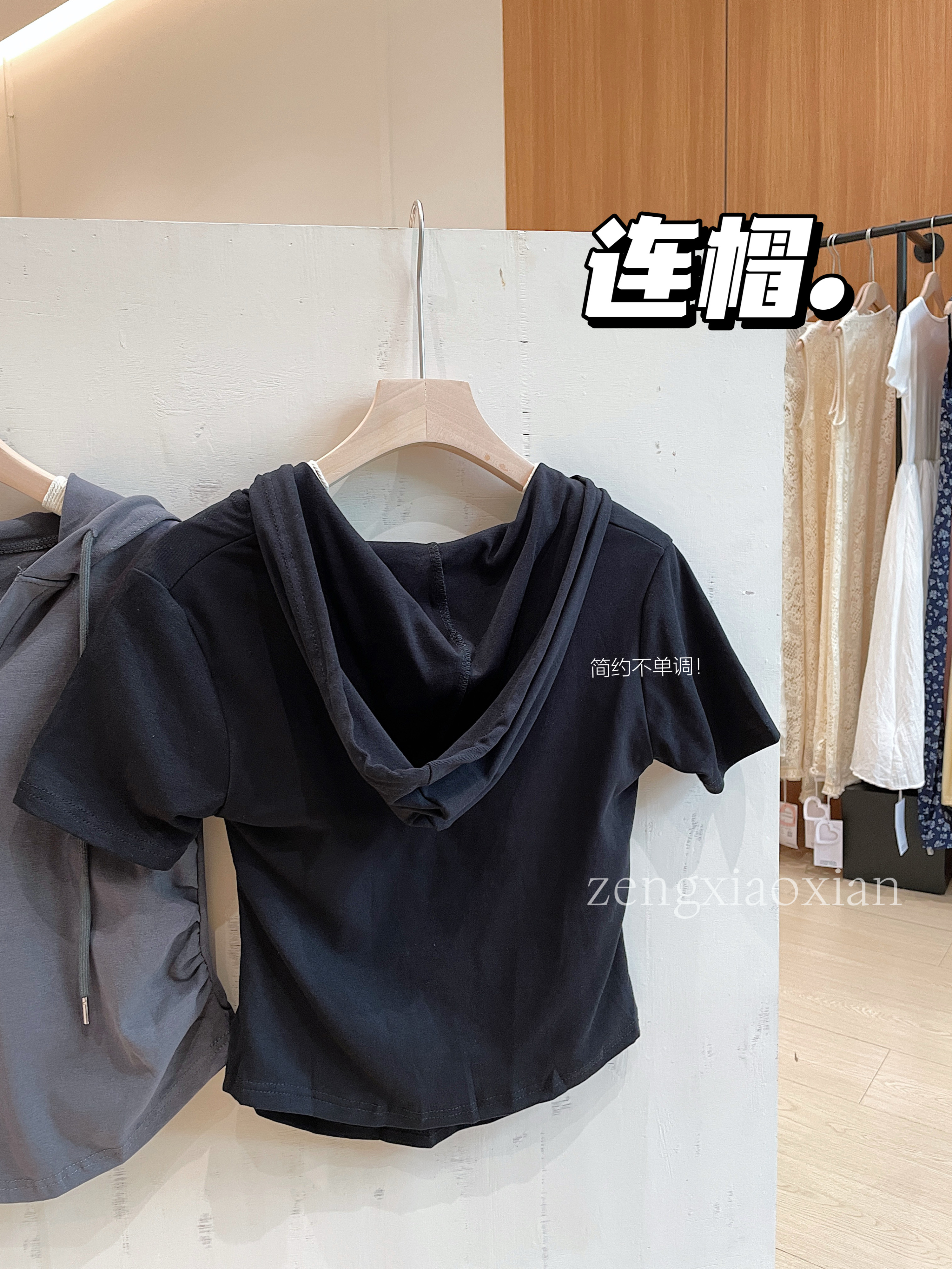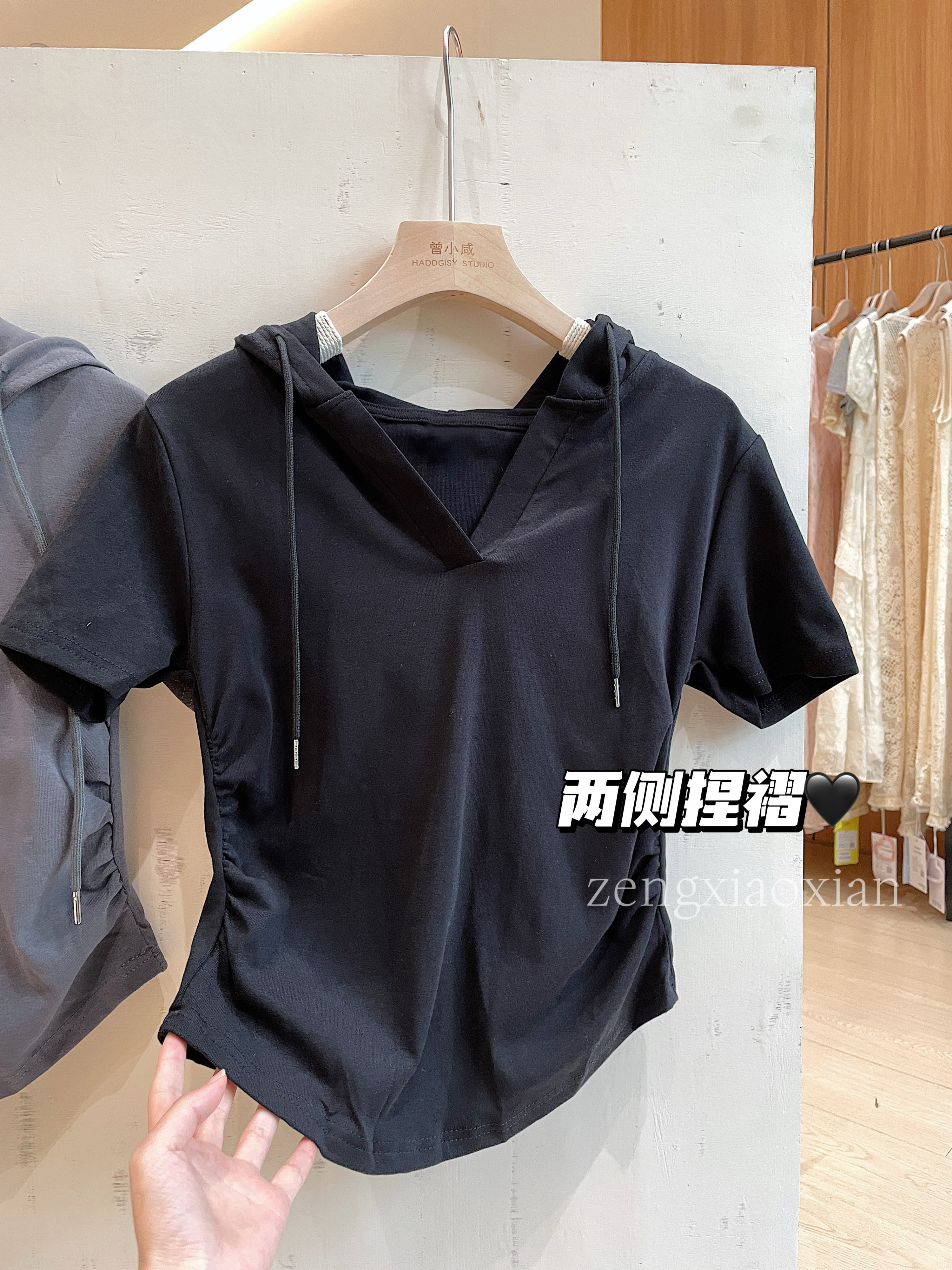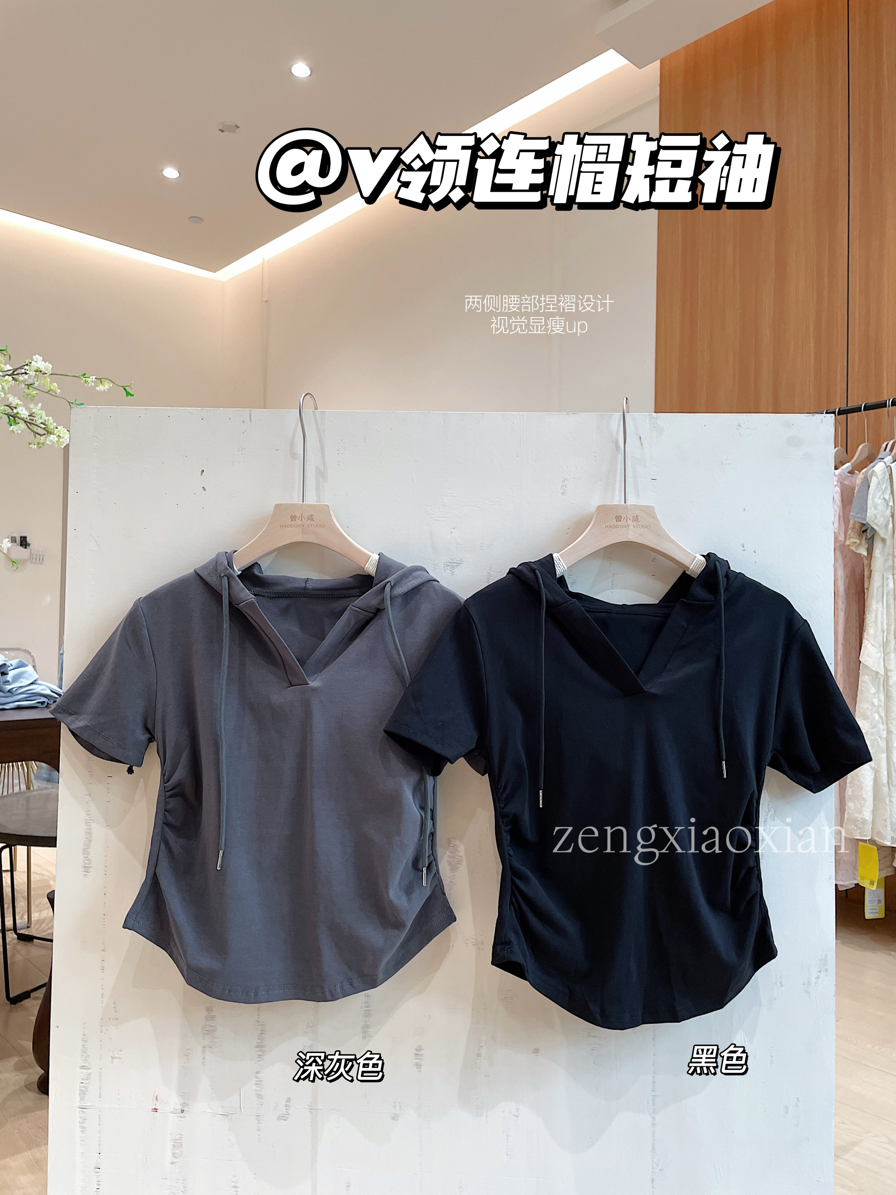 <曾小咸推荐> 4.12新品上新 v领连帽修身短袖 日常89!! 活动价59!!【预售款,预计3-15天发货】