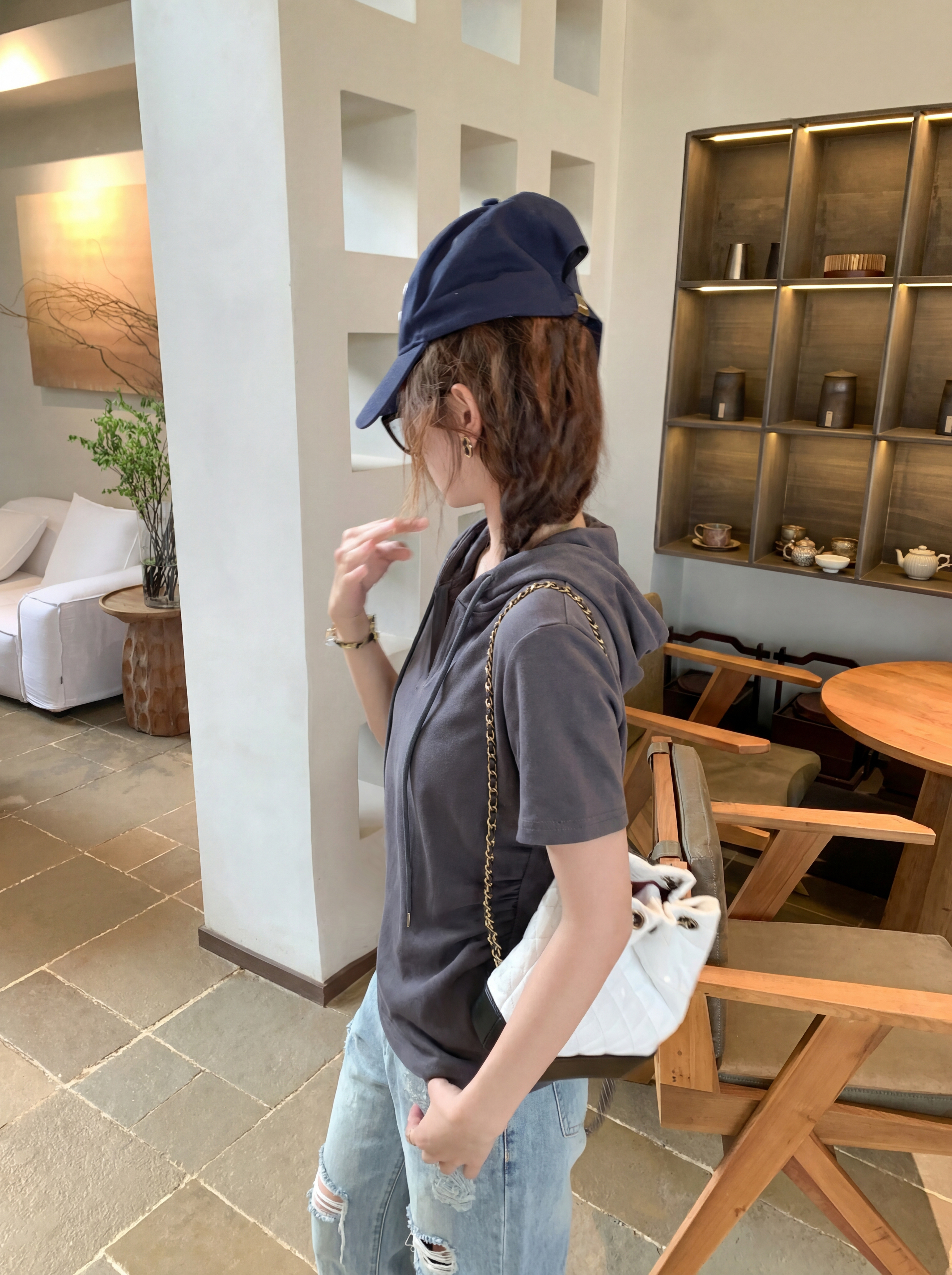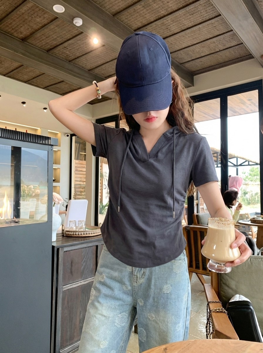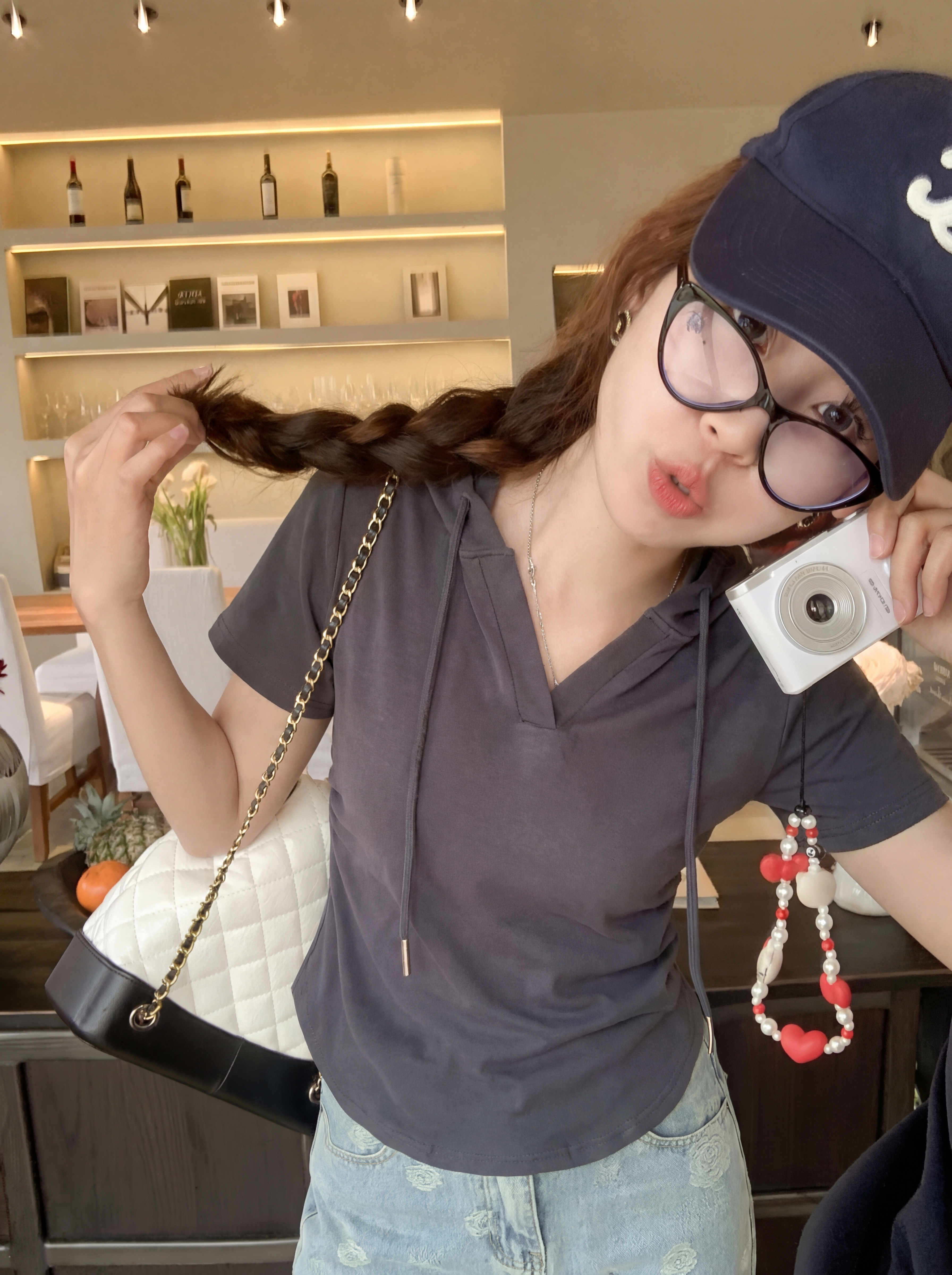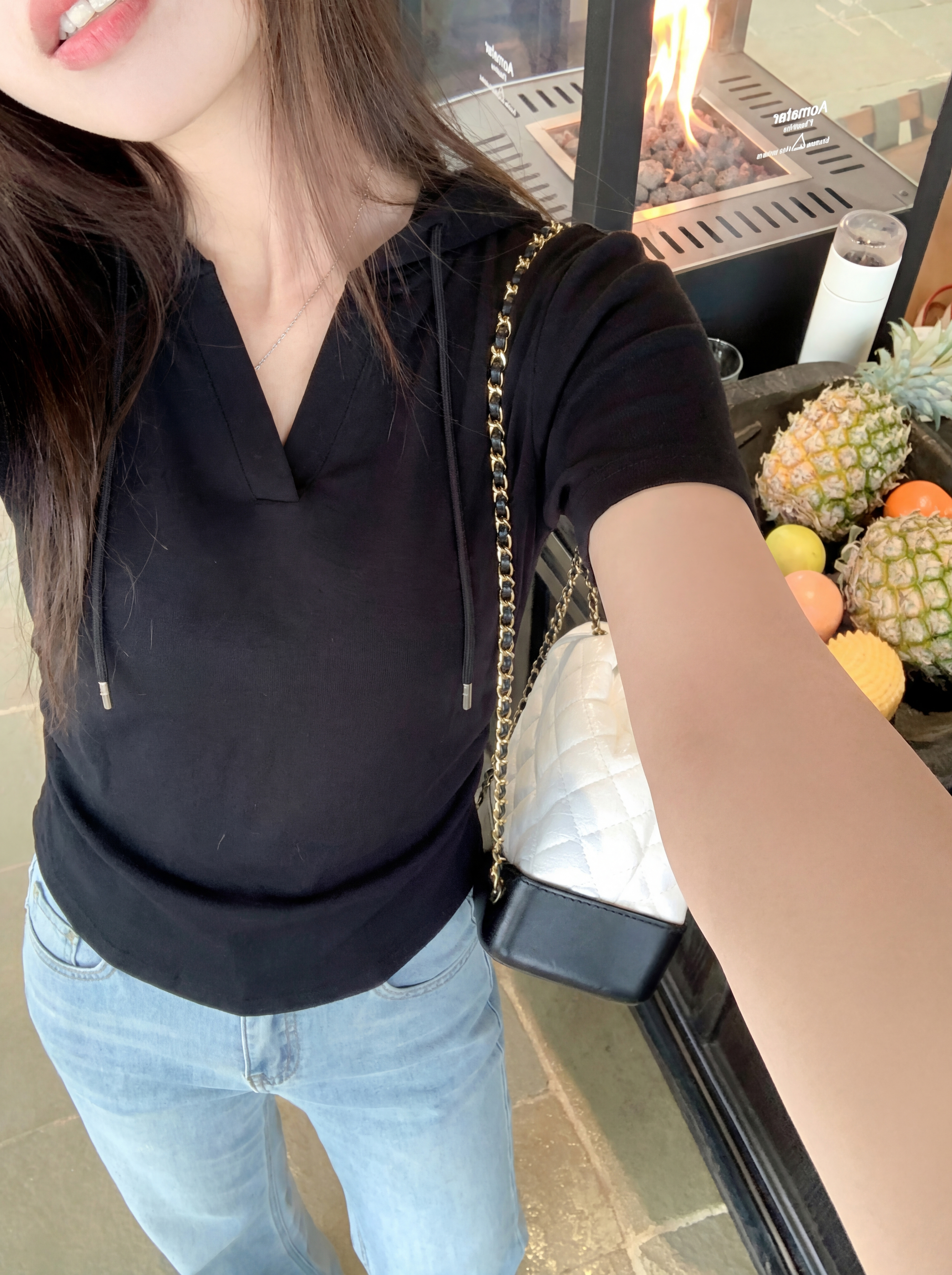 <曾小咸推荐> 4.12新品上新 v领连帽修身短袖 日常89!! 活动价59!!【预售款,预计3-15天发货】