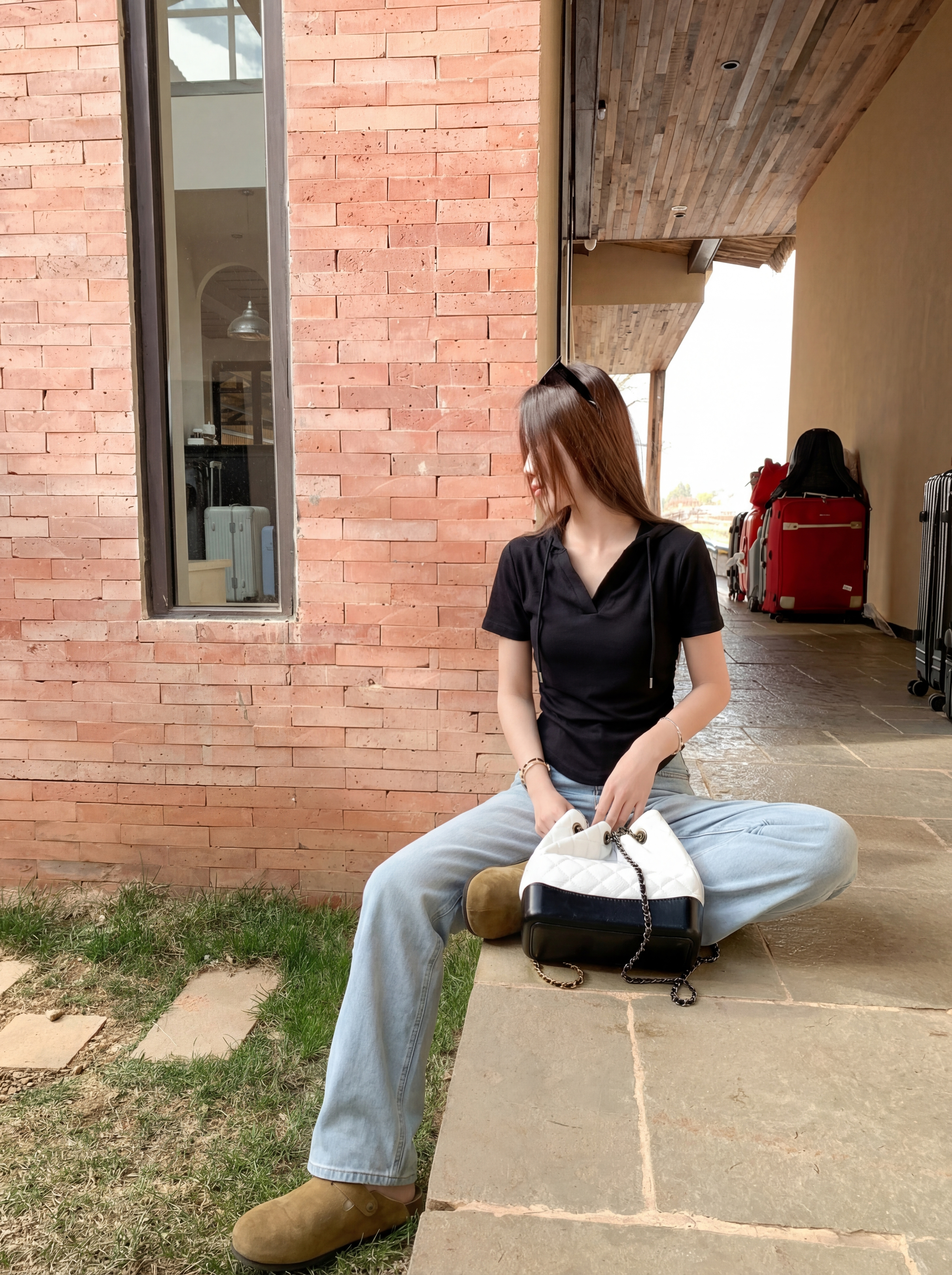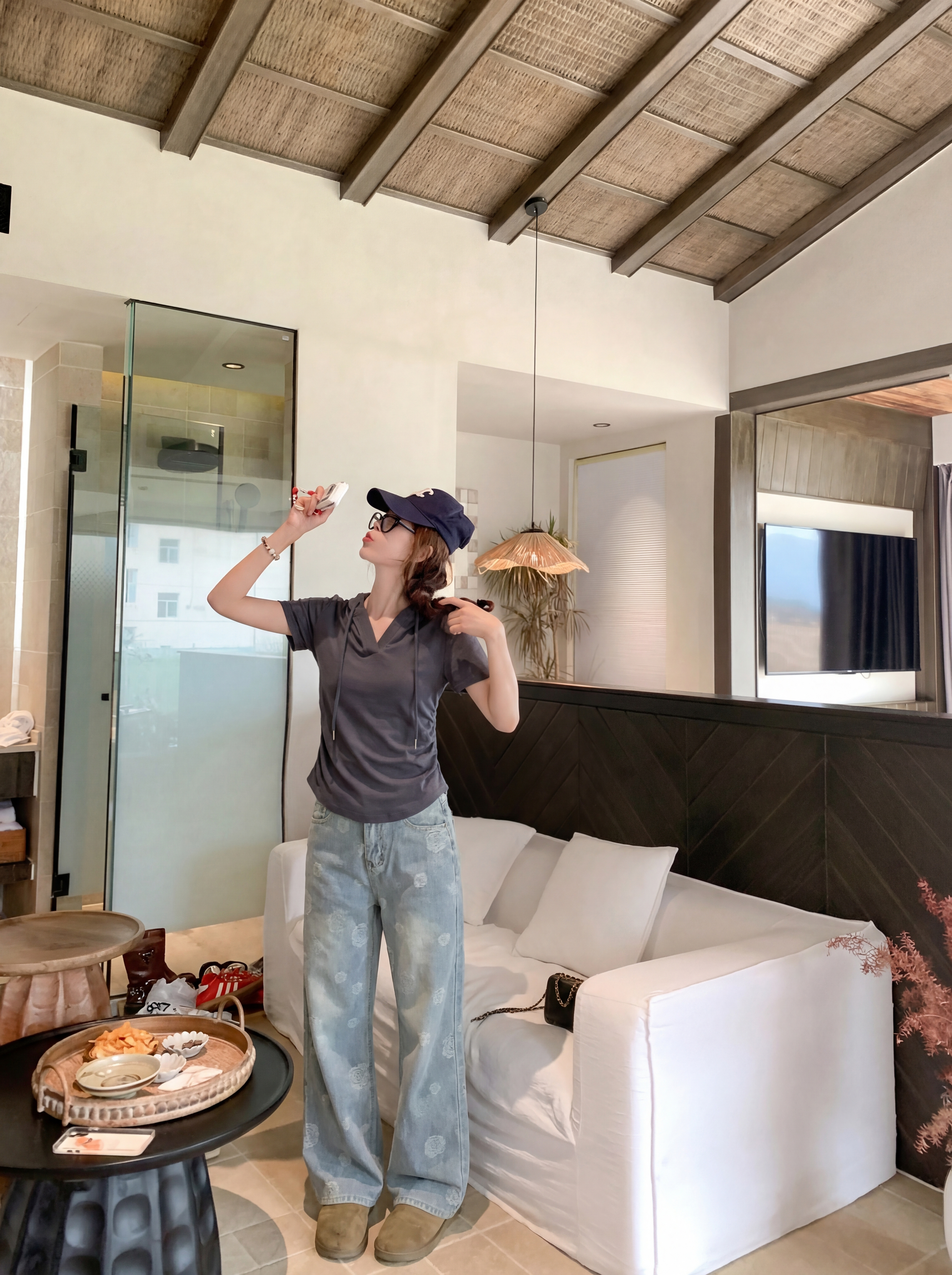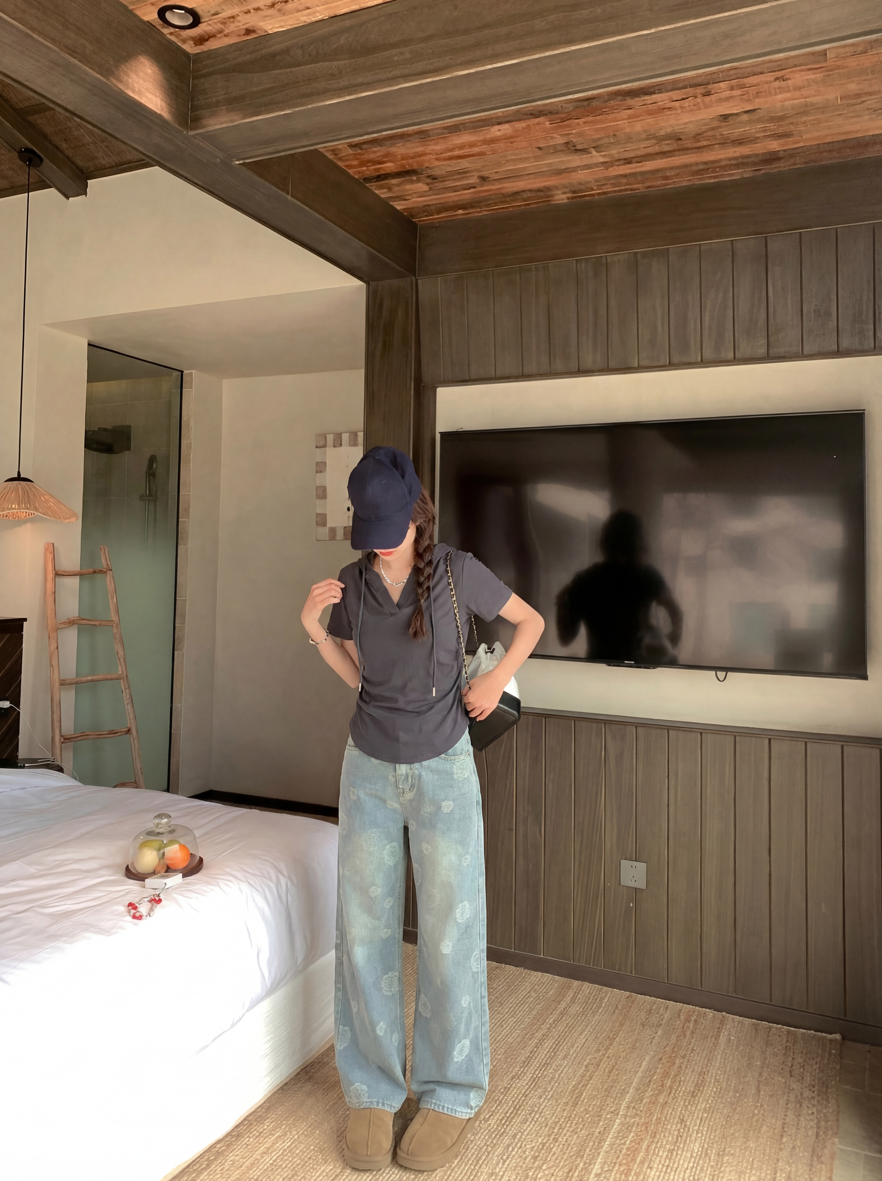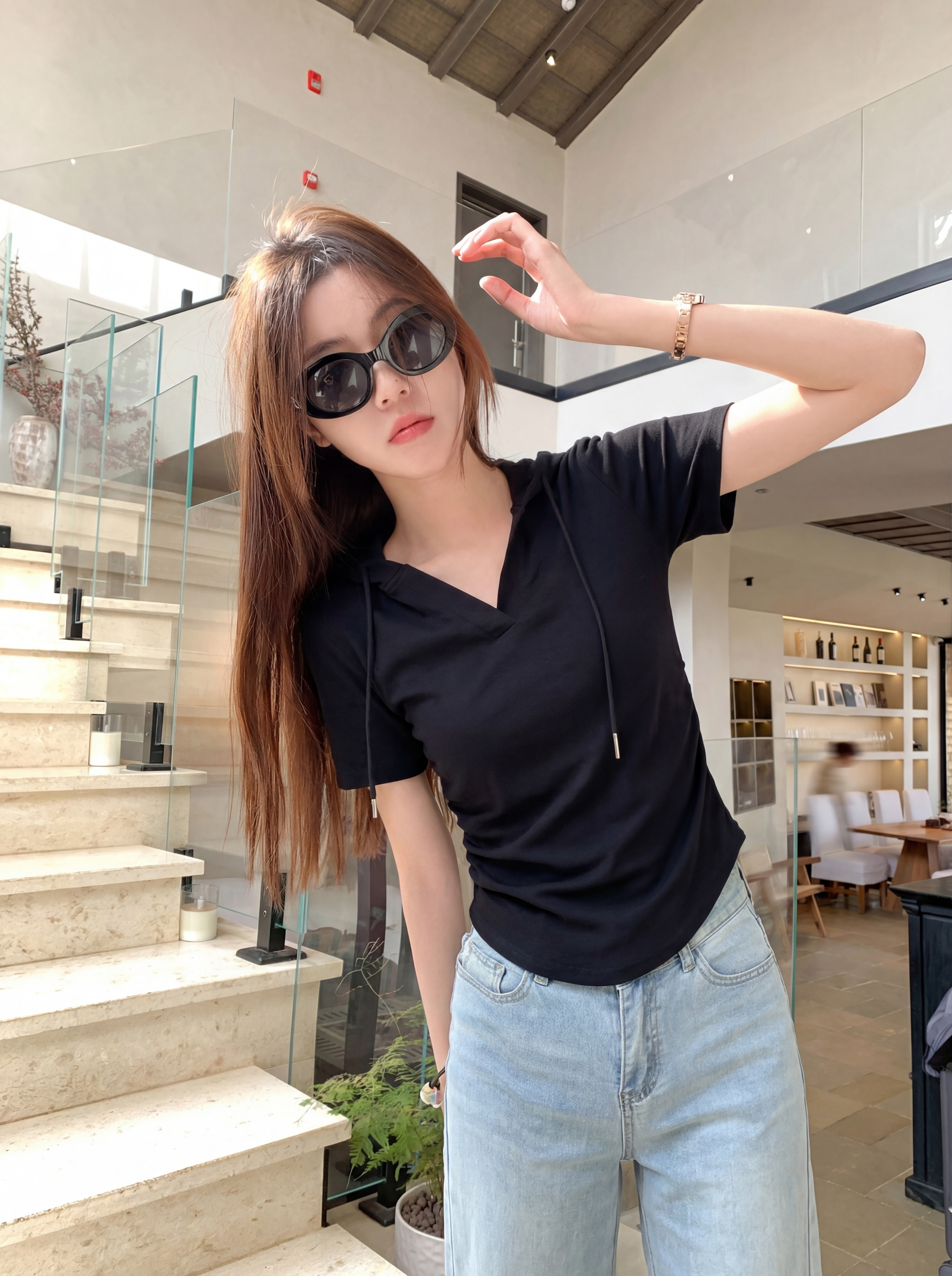 <曾小咸推荐> 4.12新品上新 v领连帽修身短袖 日常89!! 活动价59!!【预售款,预计3-15天发货】