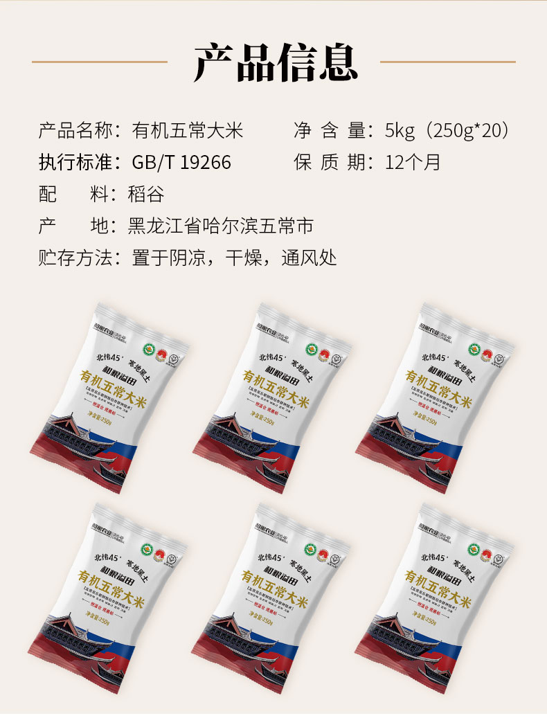 《真五常》有机五常大米10斤!原稻花香二号!四码齐全:有机标、地理标志、五常鹰标,带防伪码!250g*20袋独立包装!