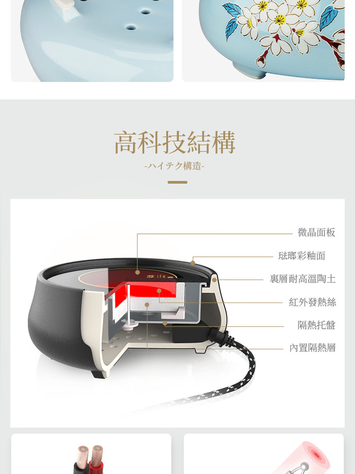 莺歌烧 九谷系列矮款电陶炉