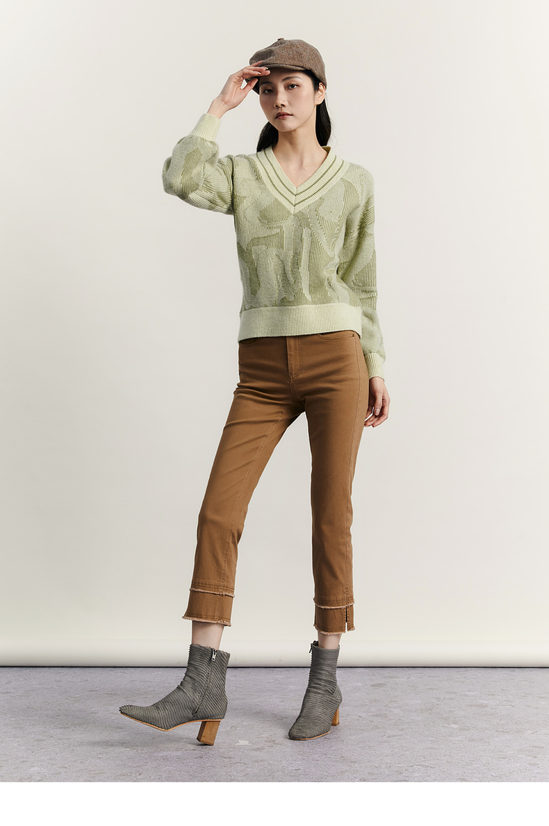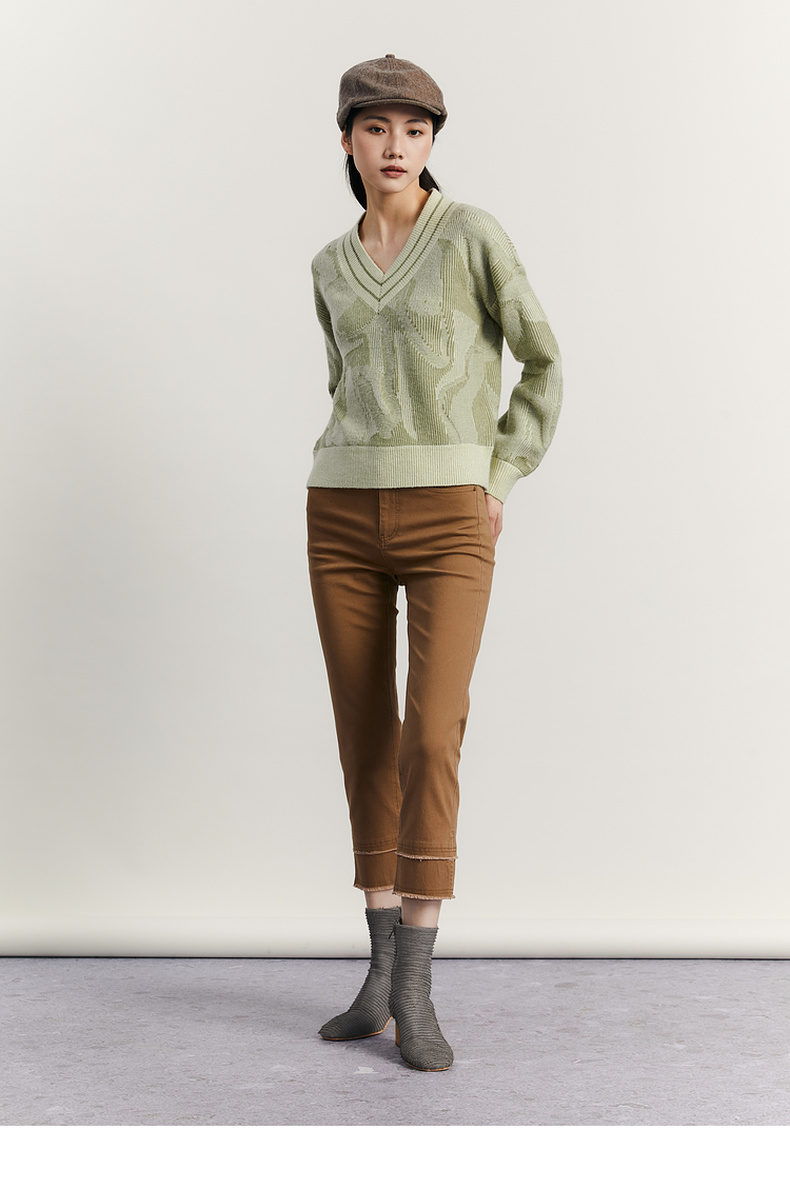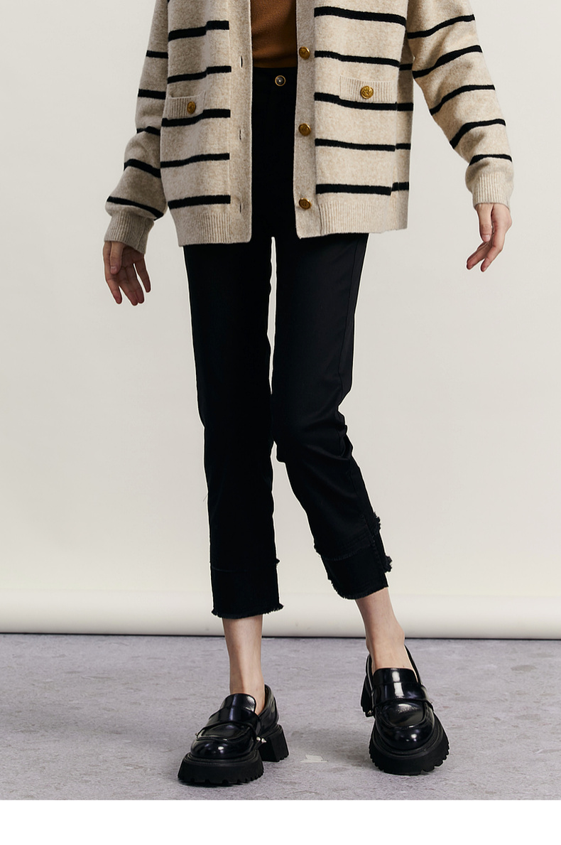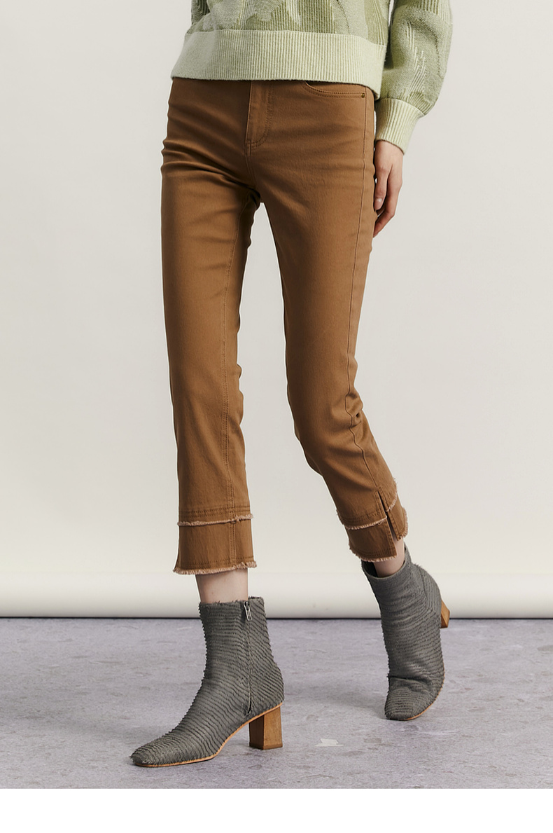 谜底烟管裤女2023冬季新款时髦百搭修身高腰休闲九分裤234MK1496