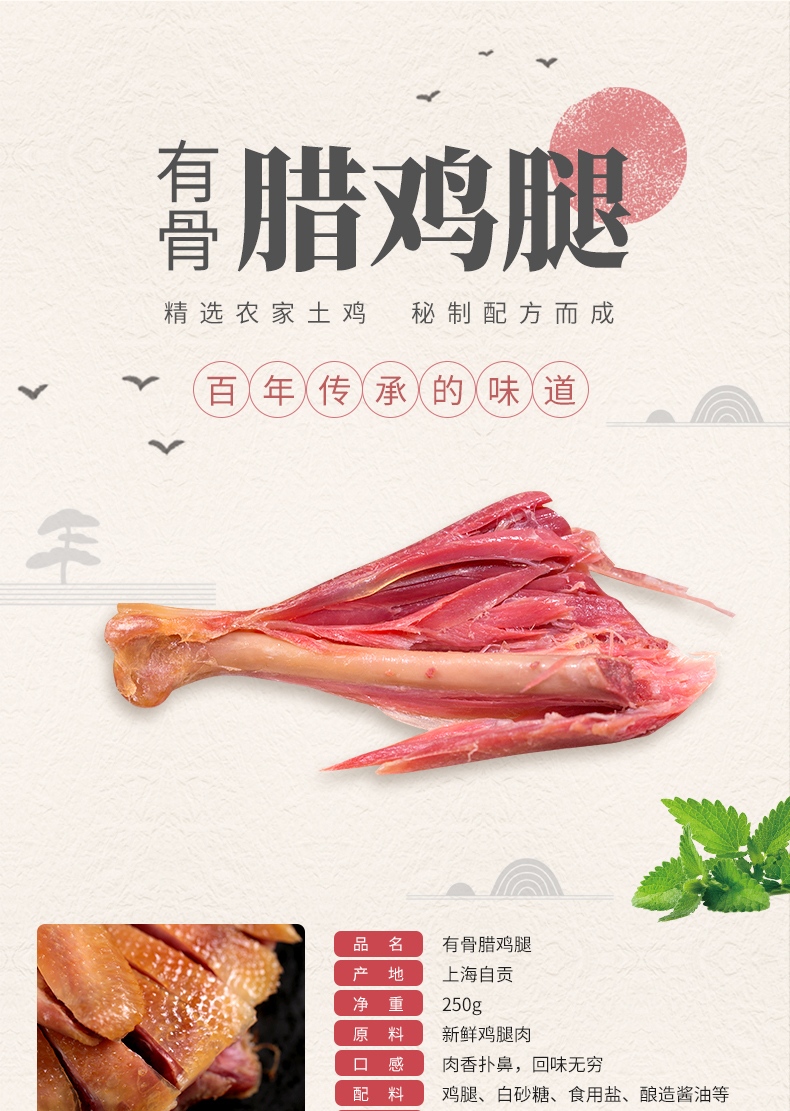 上海美食万有全有骨腊鸡腿250g/袋x3袋 易嚼 咸鲜适中 回味无穷