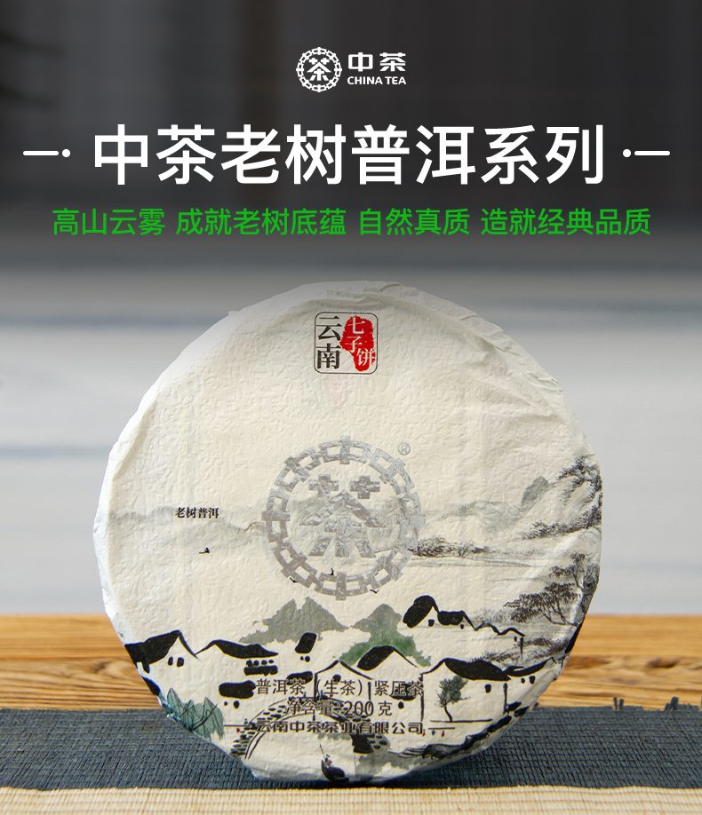 中粮-中茶2023年中茶老树普洱生茶(银印)云南普洱茶七子饼200克/饼茶叶/干仓直发