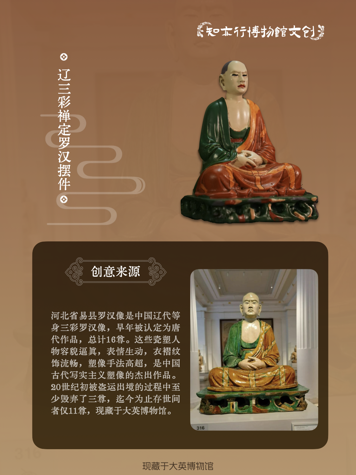 国宝回家辽三彩禅定罗汉摆件大英博物馆藏中式国风文创礼物送长辈