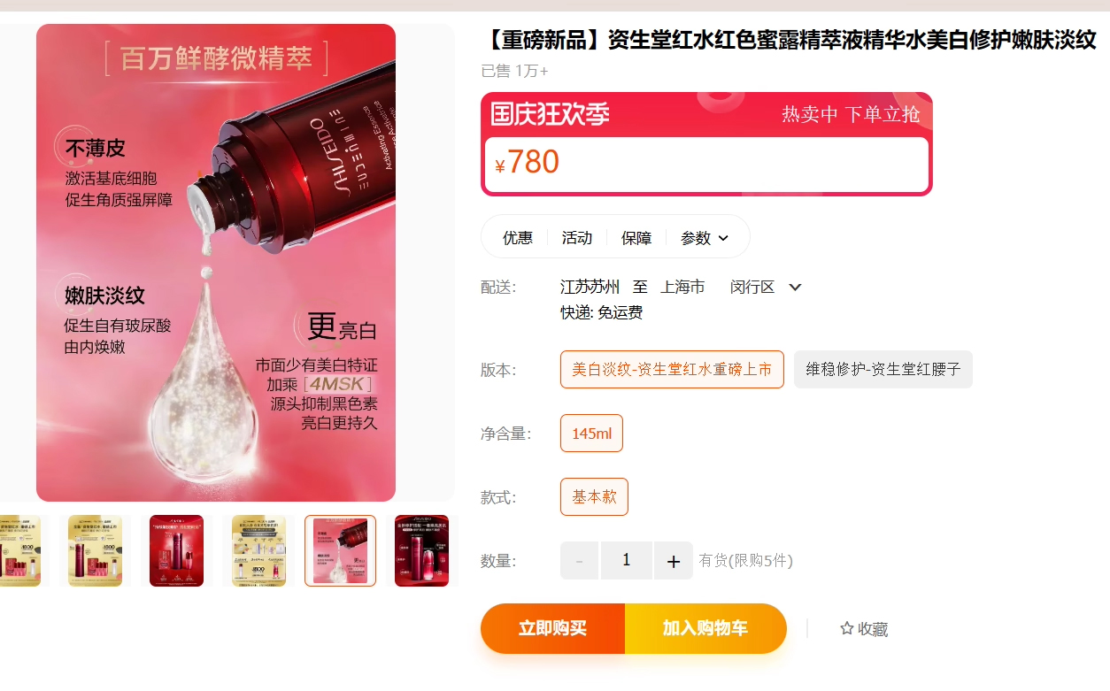 用的是资生堂专研了几十年的白白成分4MSK,和其他白白成分不一样的是