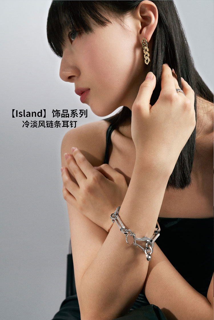 雷诺冷淡风链条耳钉2021年新款男女同款潮流潮酷小众饰品