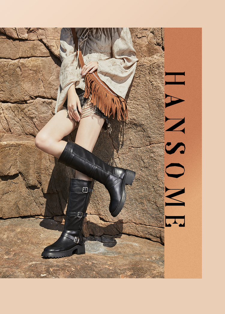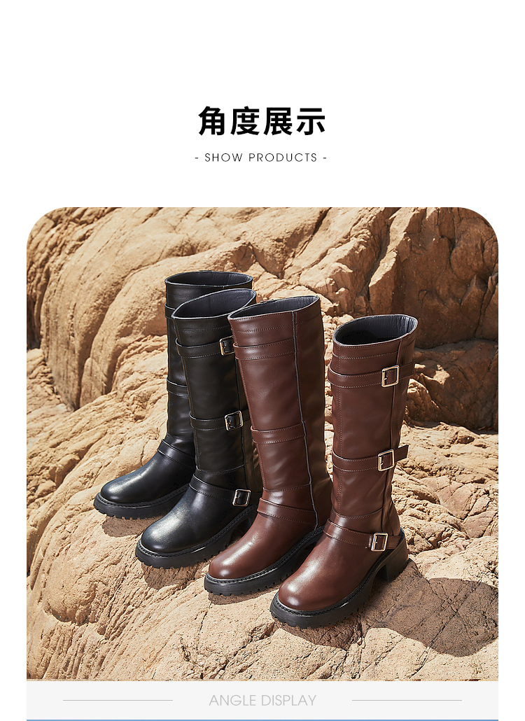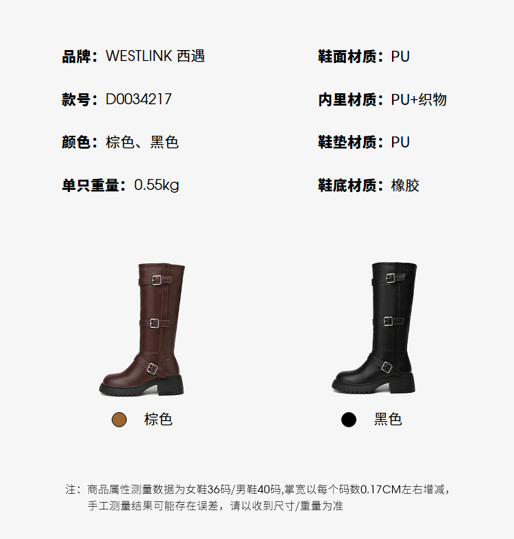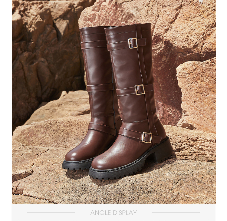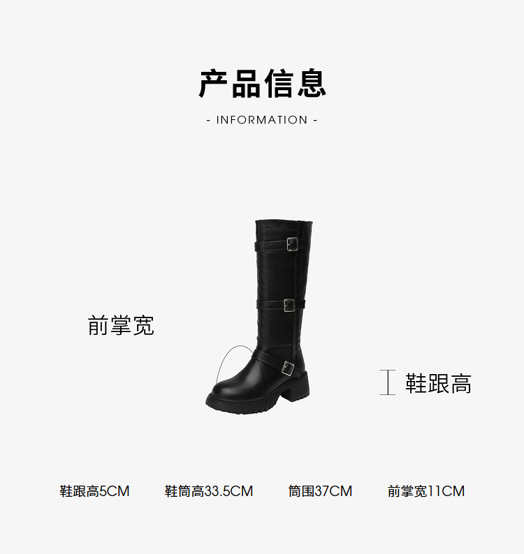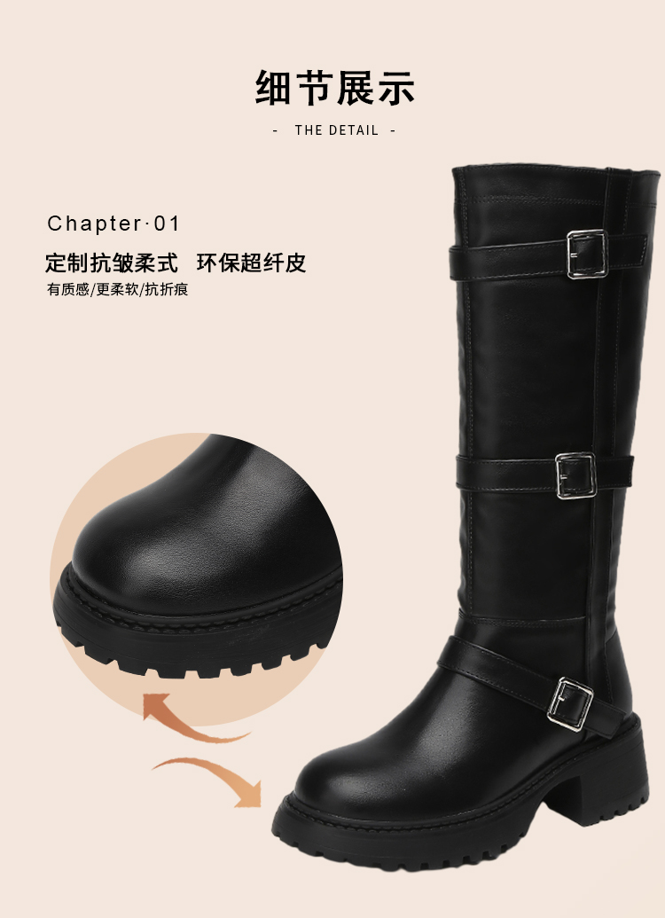 西遇牛仔骑士靴女新款秋冬复古长筒西部靴黑色圆头厚底长靴子D0034217