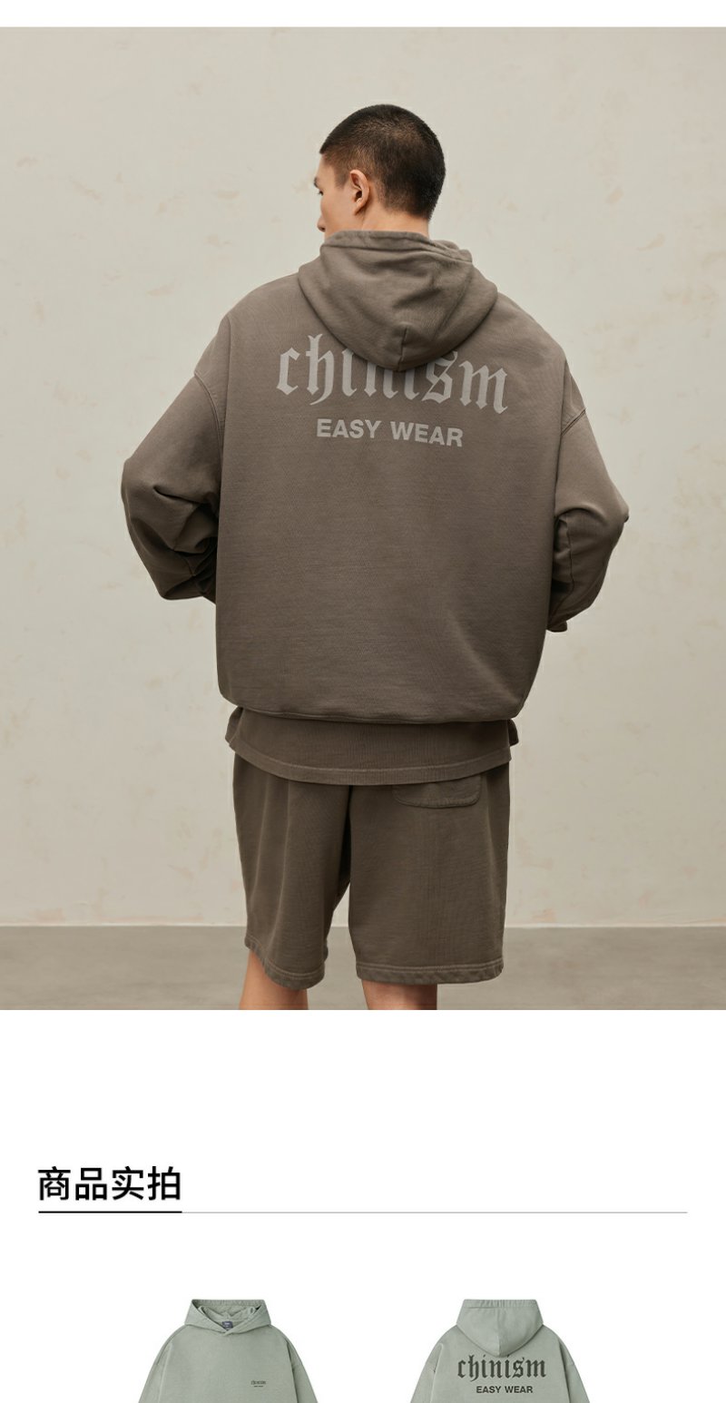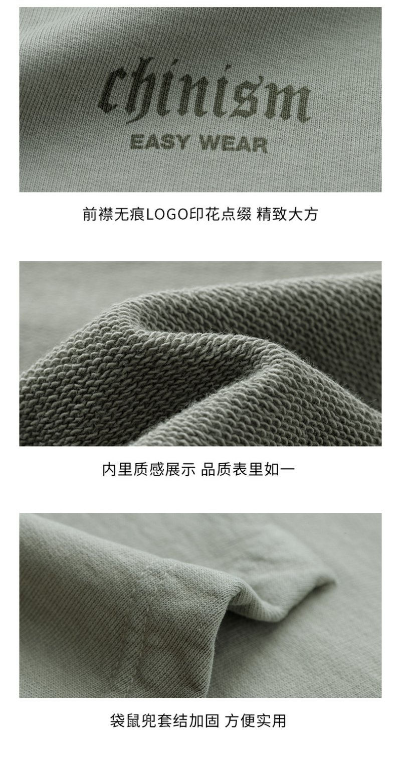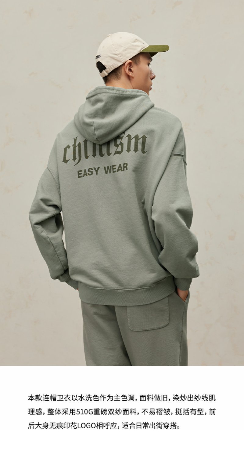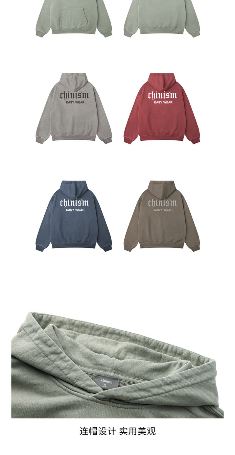 CHINISM CH500G重磅510G海军蓝连帽卫衣男秋季款潮流水洗做旧帽衫