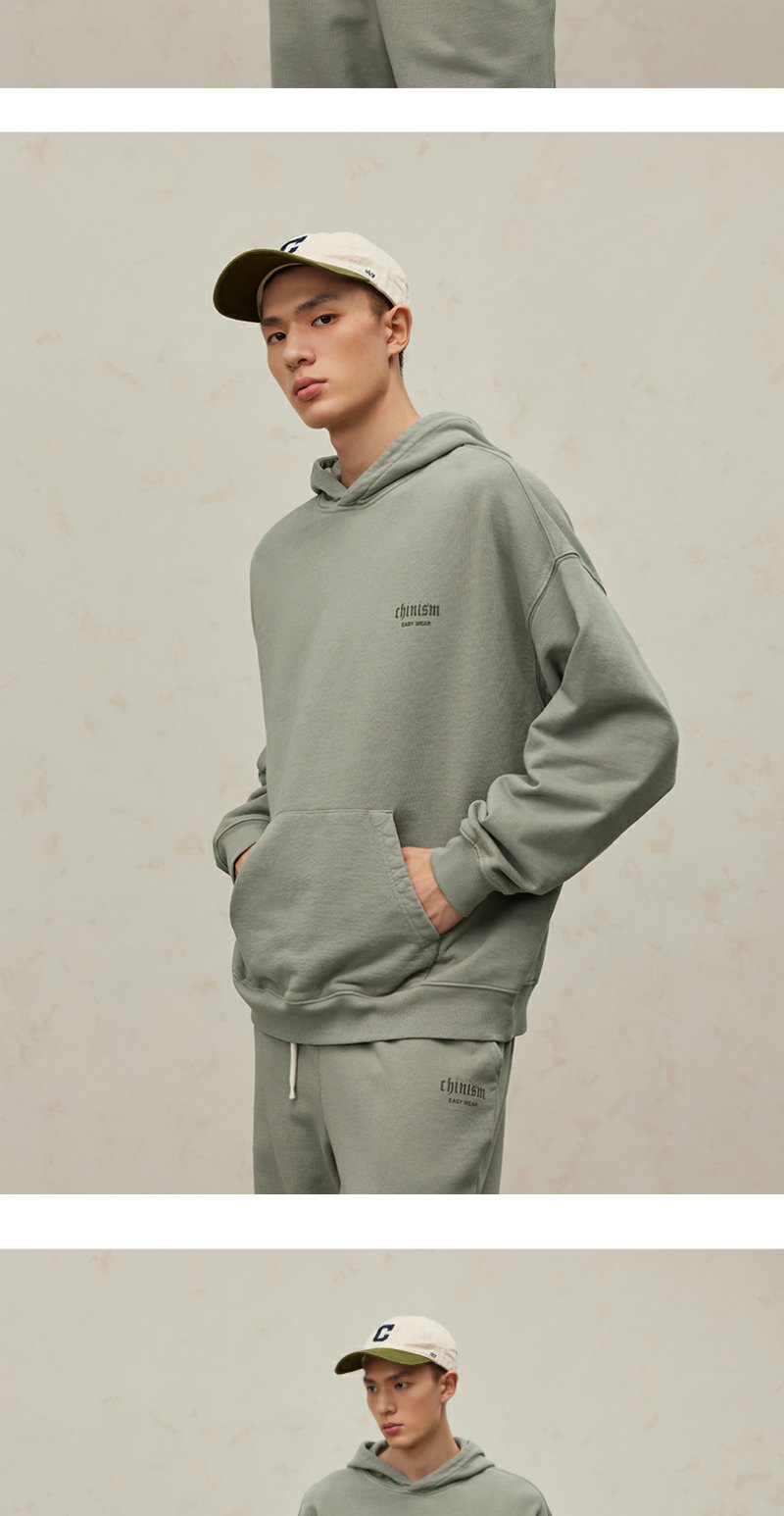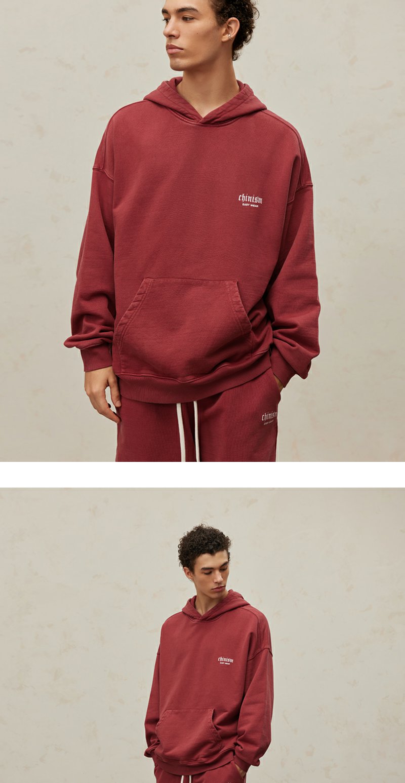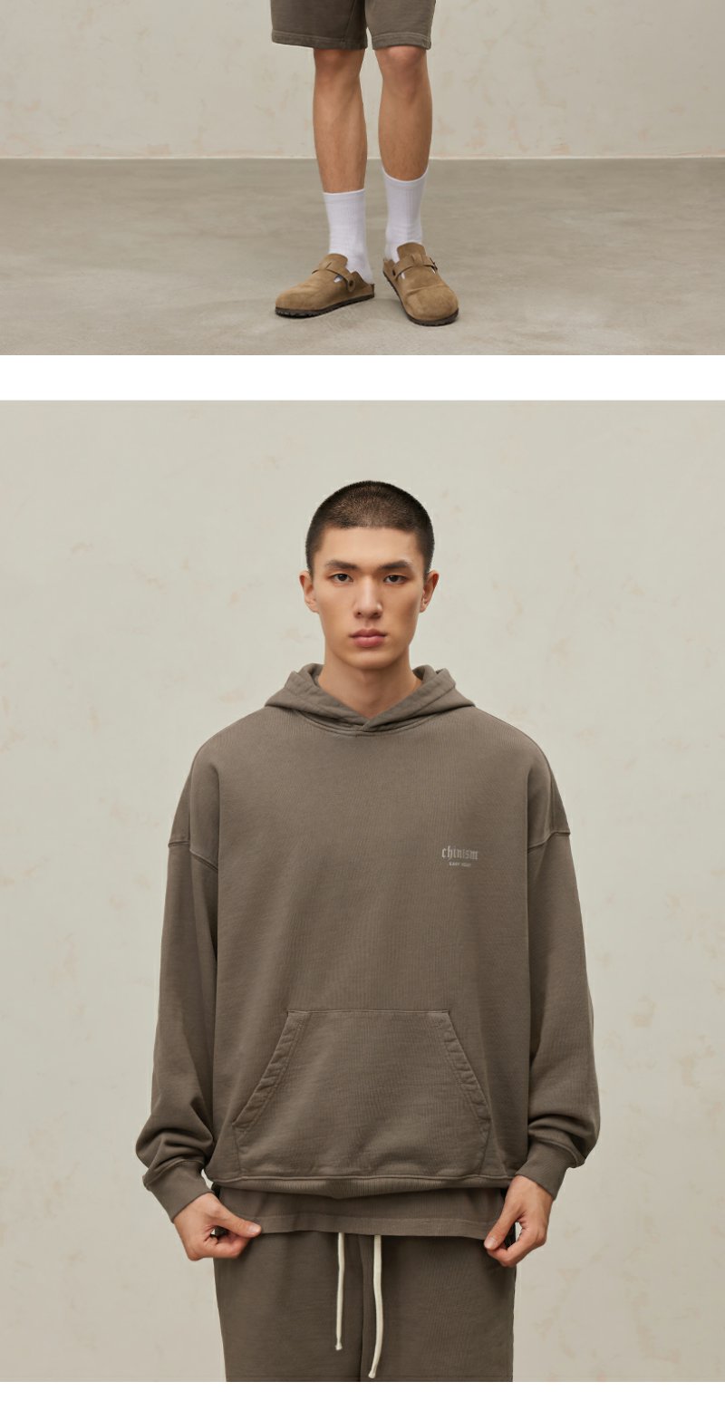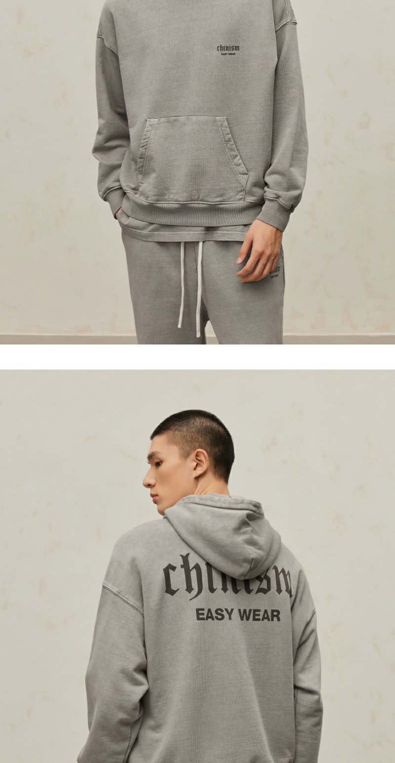 CHINISM CH500G重磅510G海军蓝连帽卫衣男秋季款潮流水洗做旧帽衫