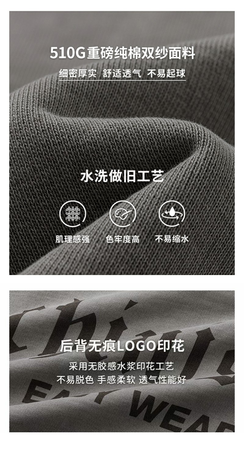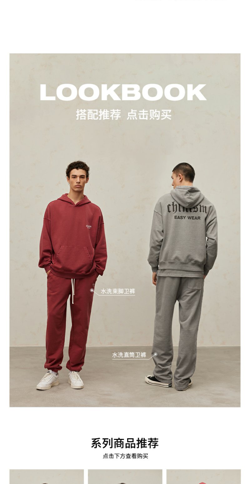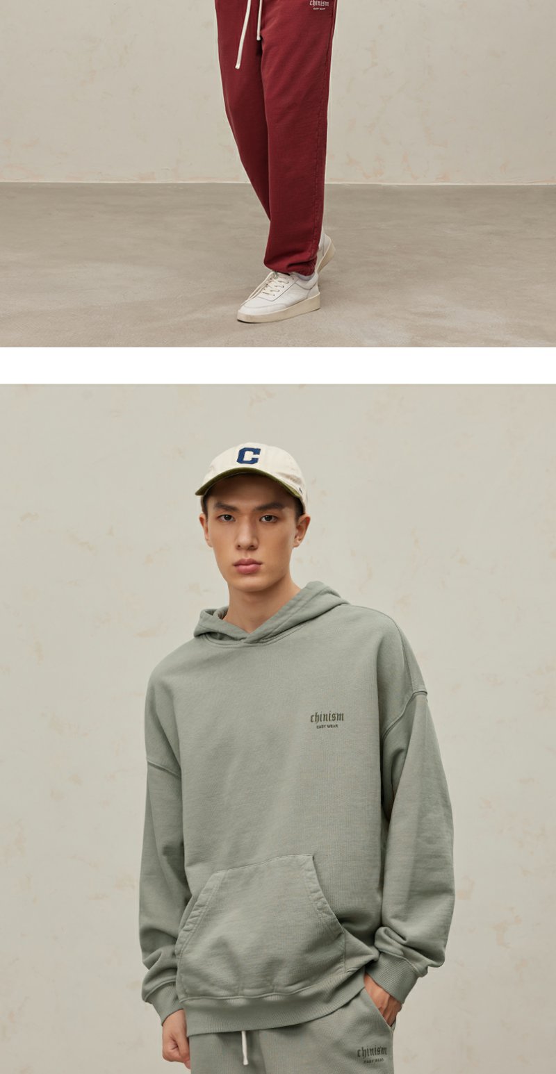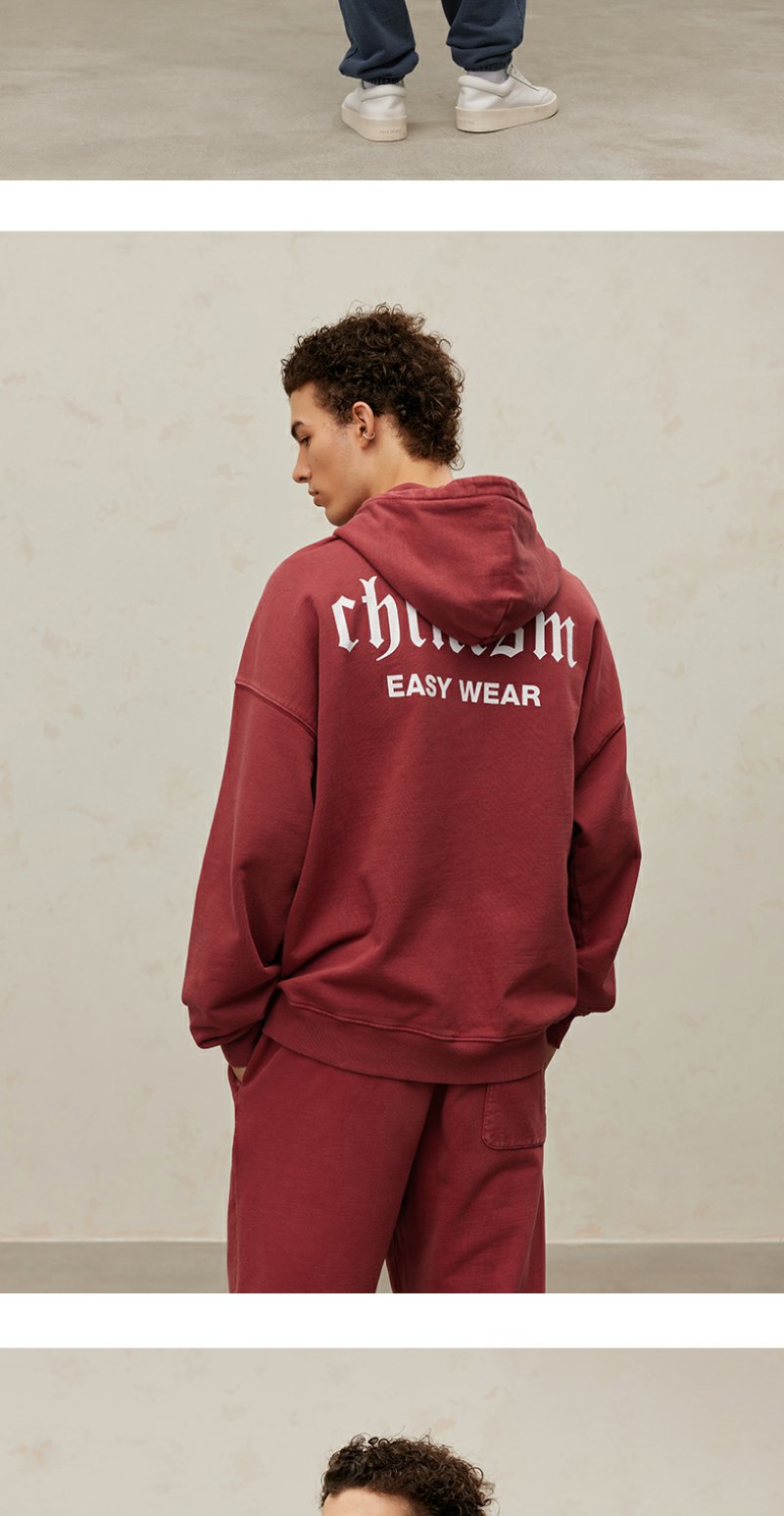 CHINISM CH500G重磅510G海军蓝连帽卫衣男秋季款潮流水洗做旧帽衫