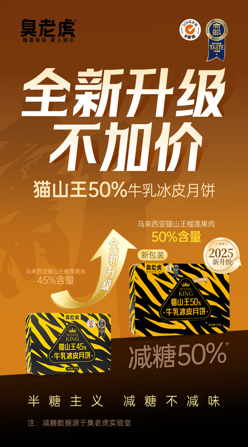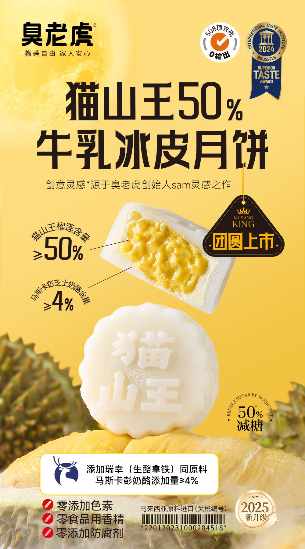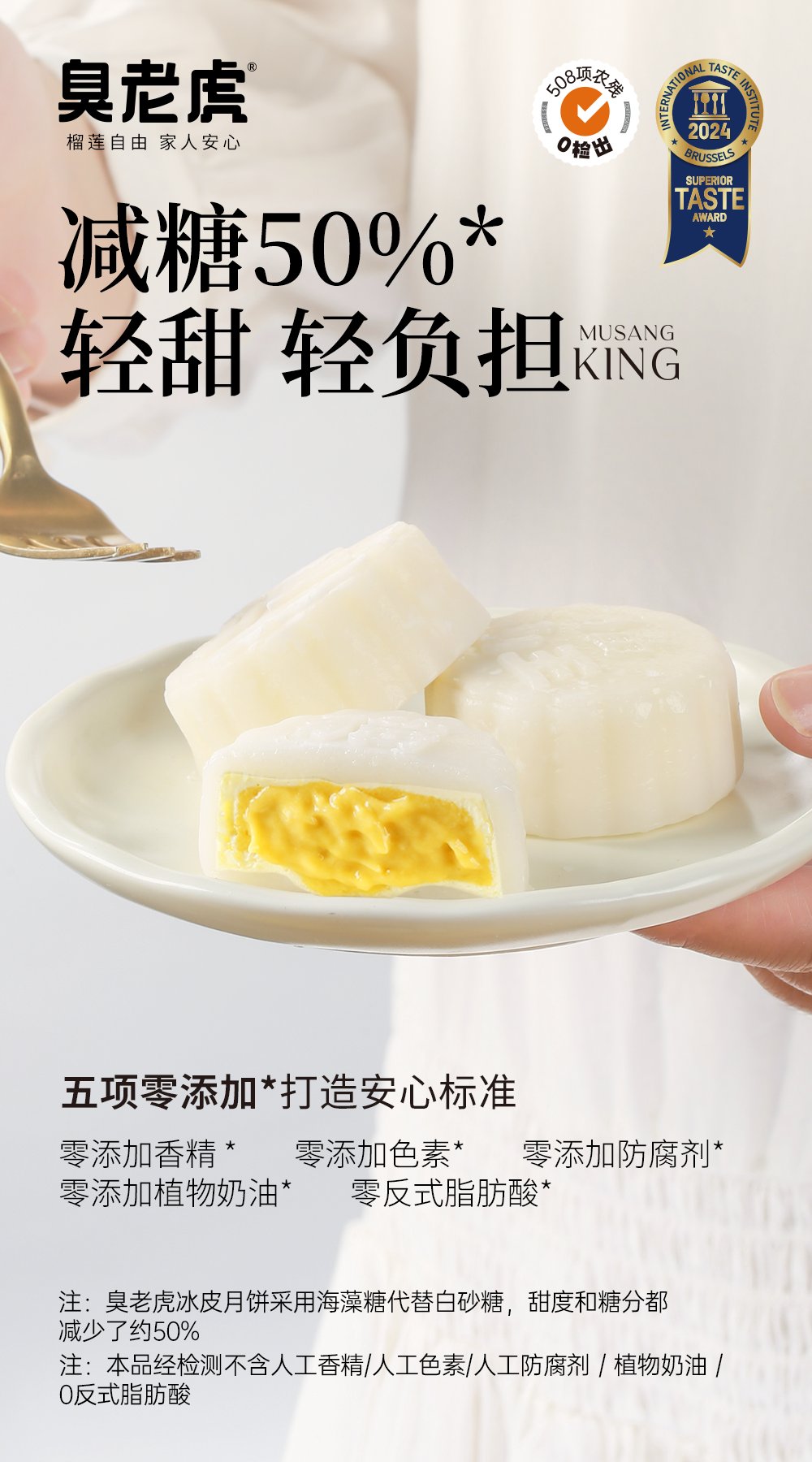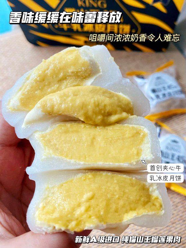 去年推荐的这款榴莲冰皮月饼收到大家的喜爱,中秋节前10天卖断货,今年一如既往的配料表干净的同时,还加量不加价,提高了猫山王榴莲果肉含量(从45%提高到50%),还另外增加了新口味梦龙榴莲牛乳冰皮月饼。 是月饼,又不仅是月饼,还是生活里美味的点缀。