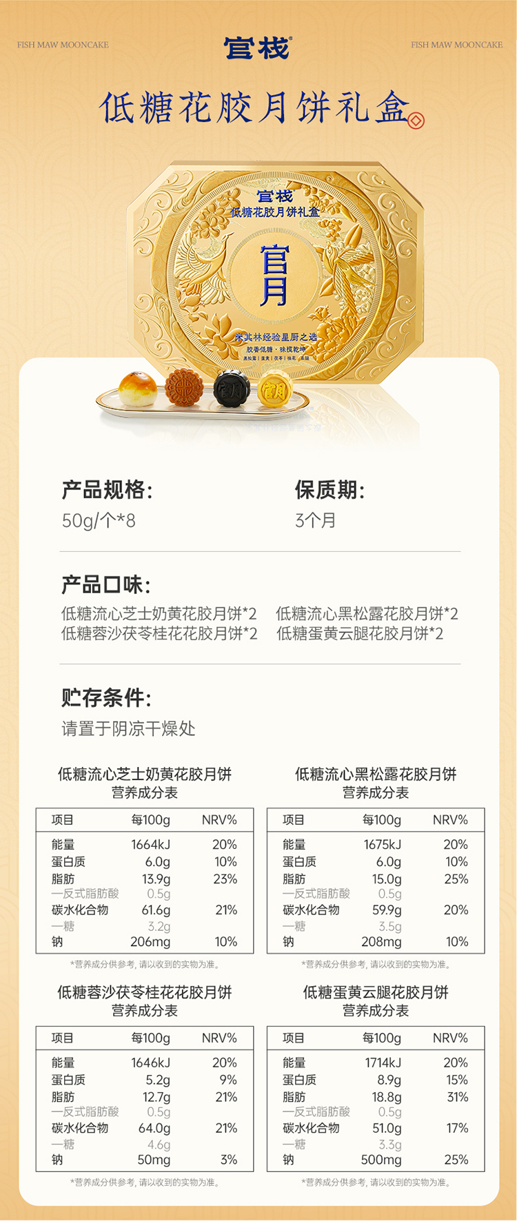 【内购专属 | 常温月饼】官栈低糖花胶月饼礼盒50gx8
