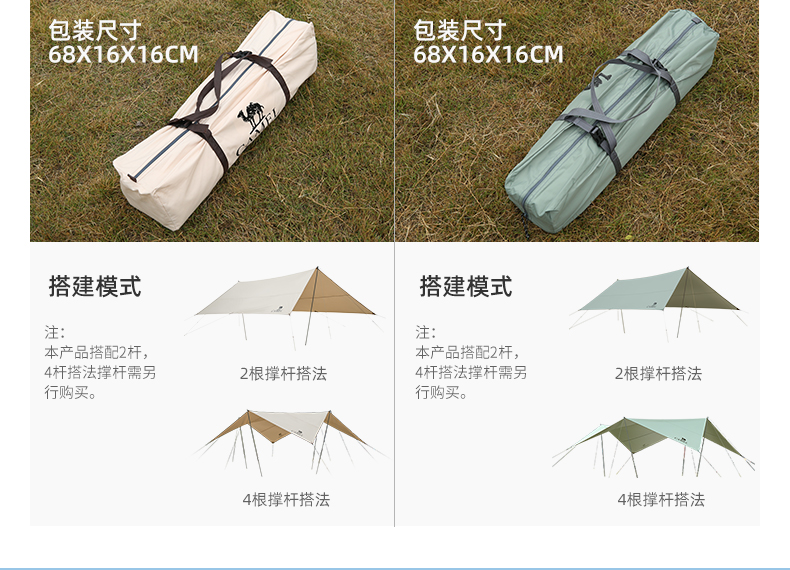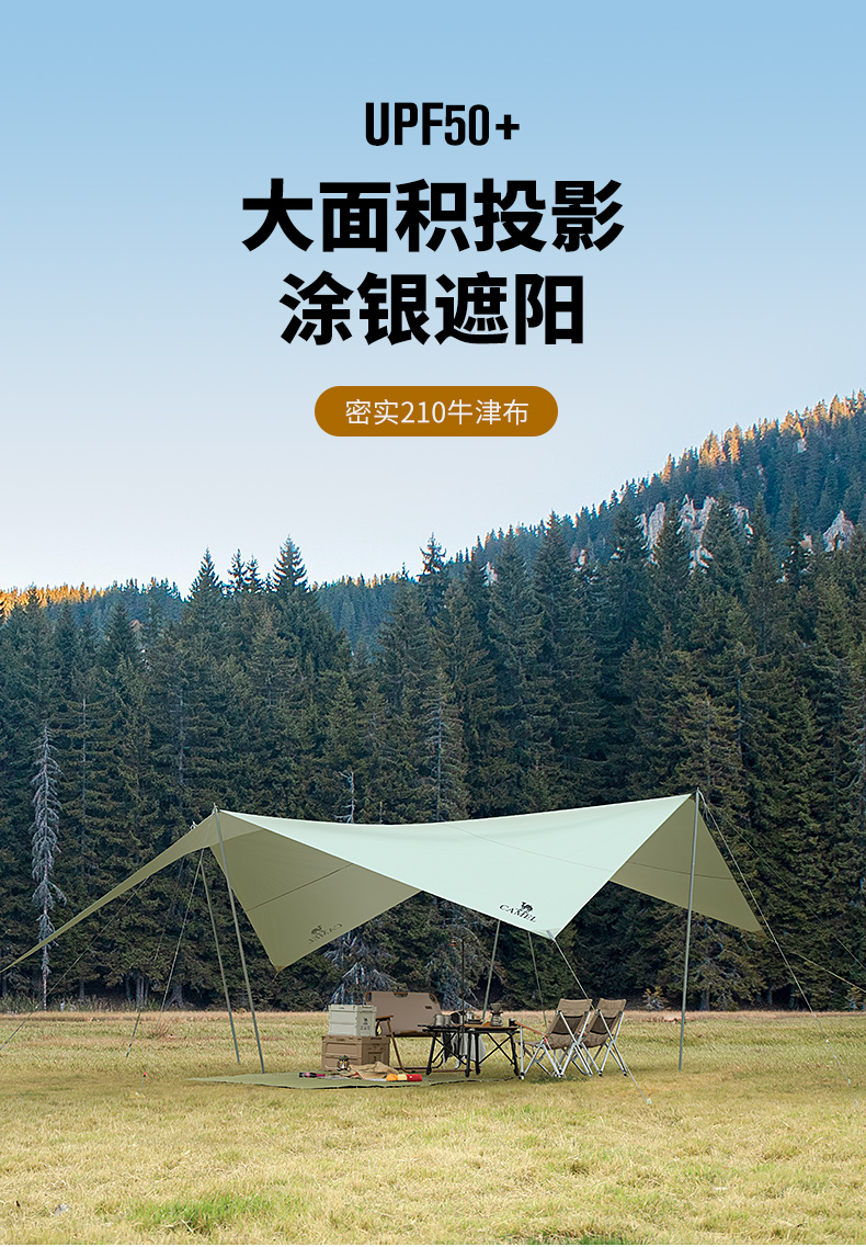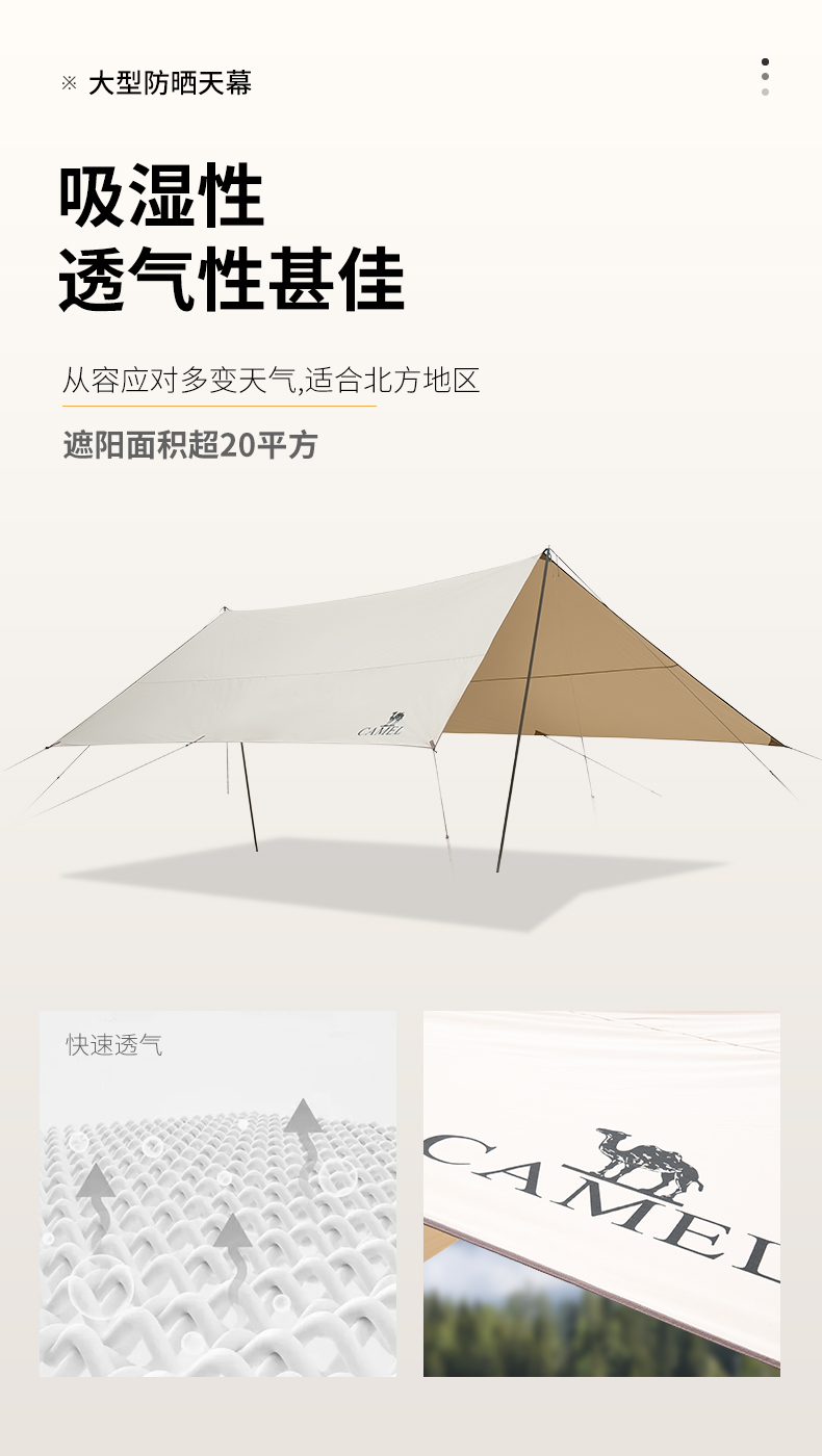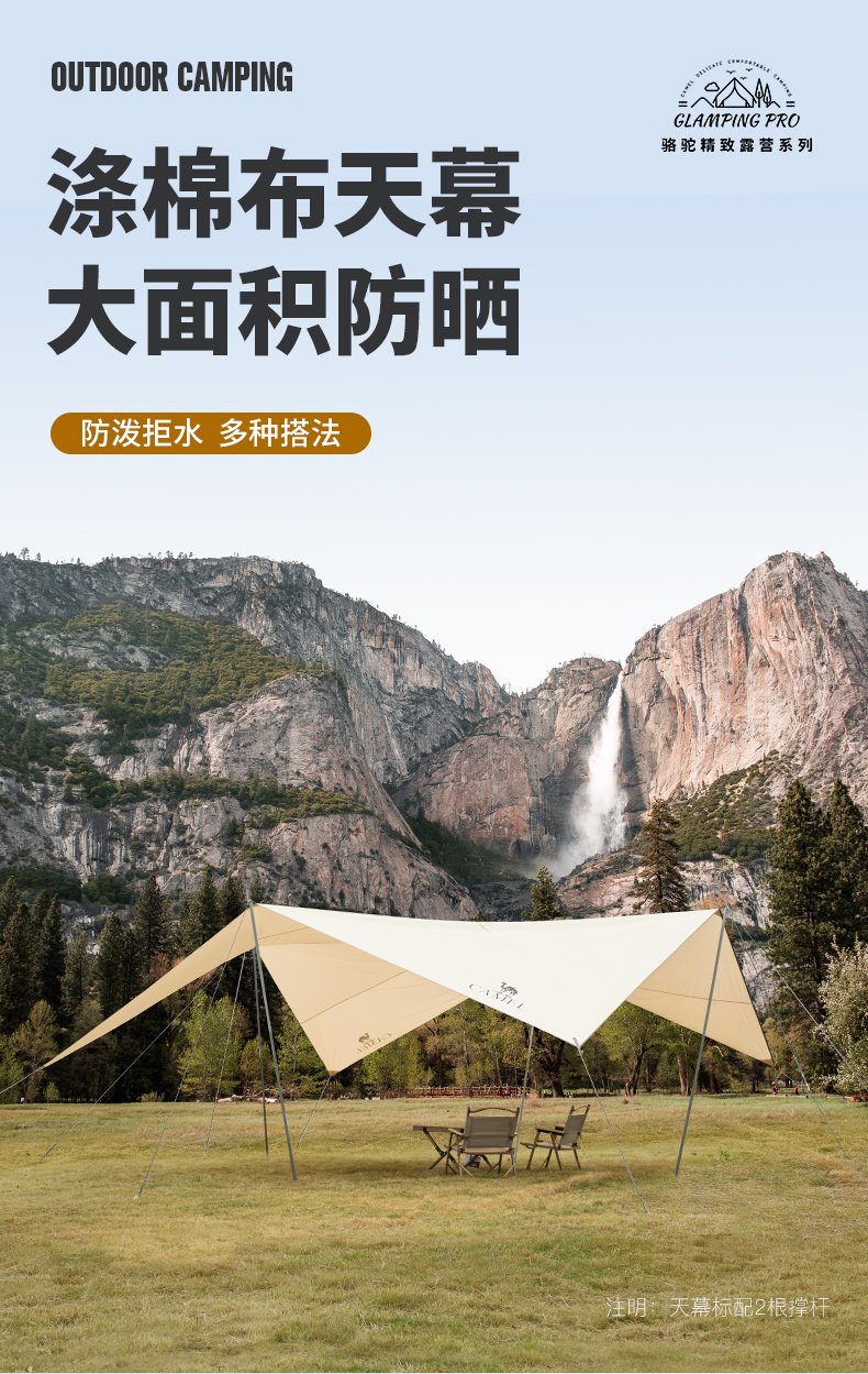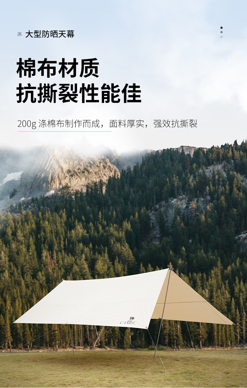【积分兑换】骆驼户外精致露营棉布大型天幕帐篷便携式防雨防晒野炊野营遮阳棚 1J32250519_1J32250520
