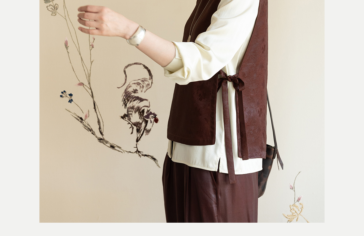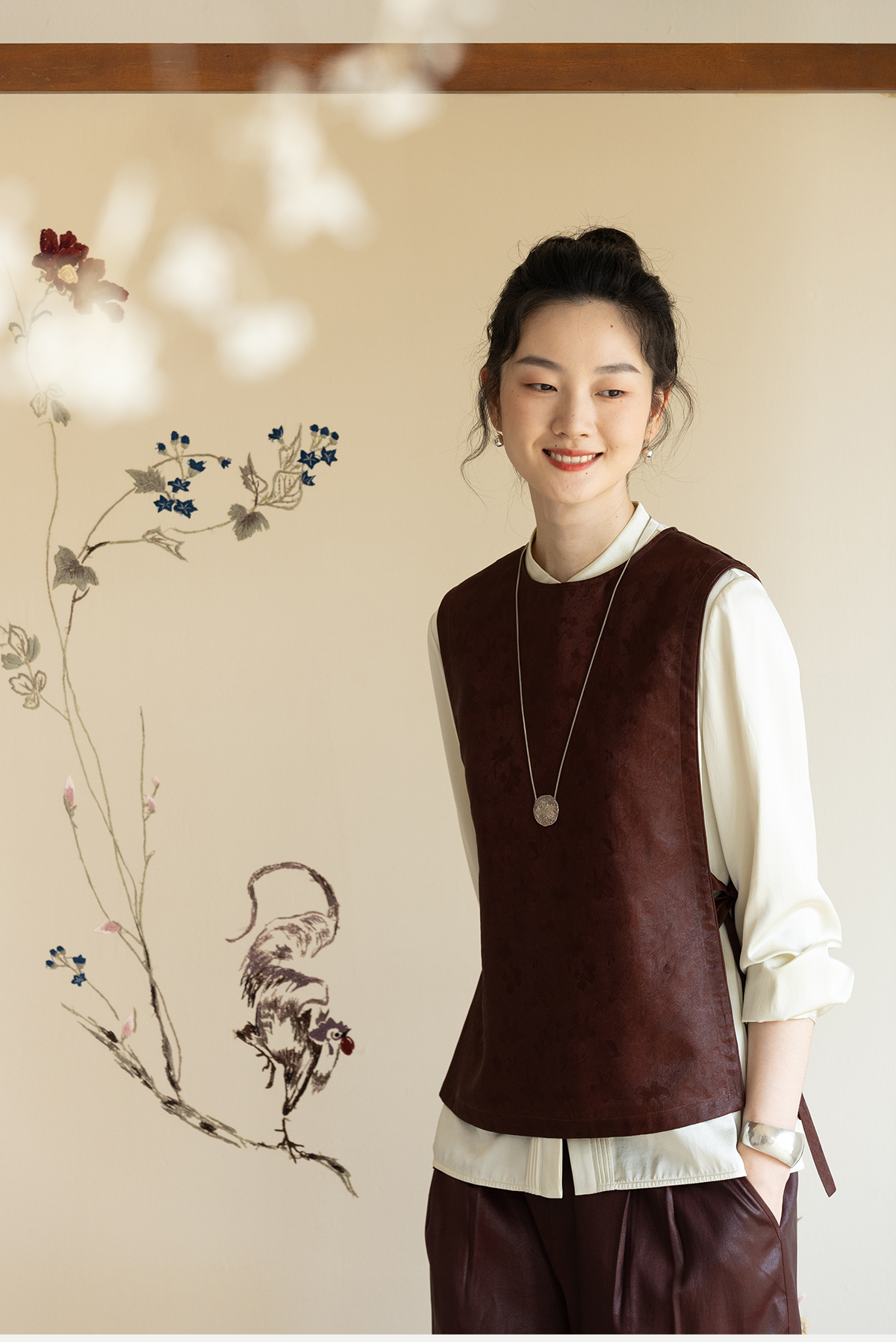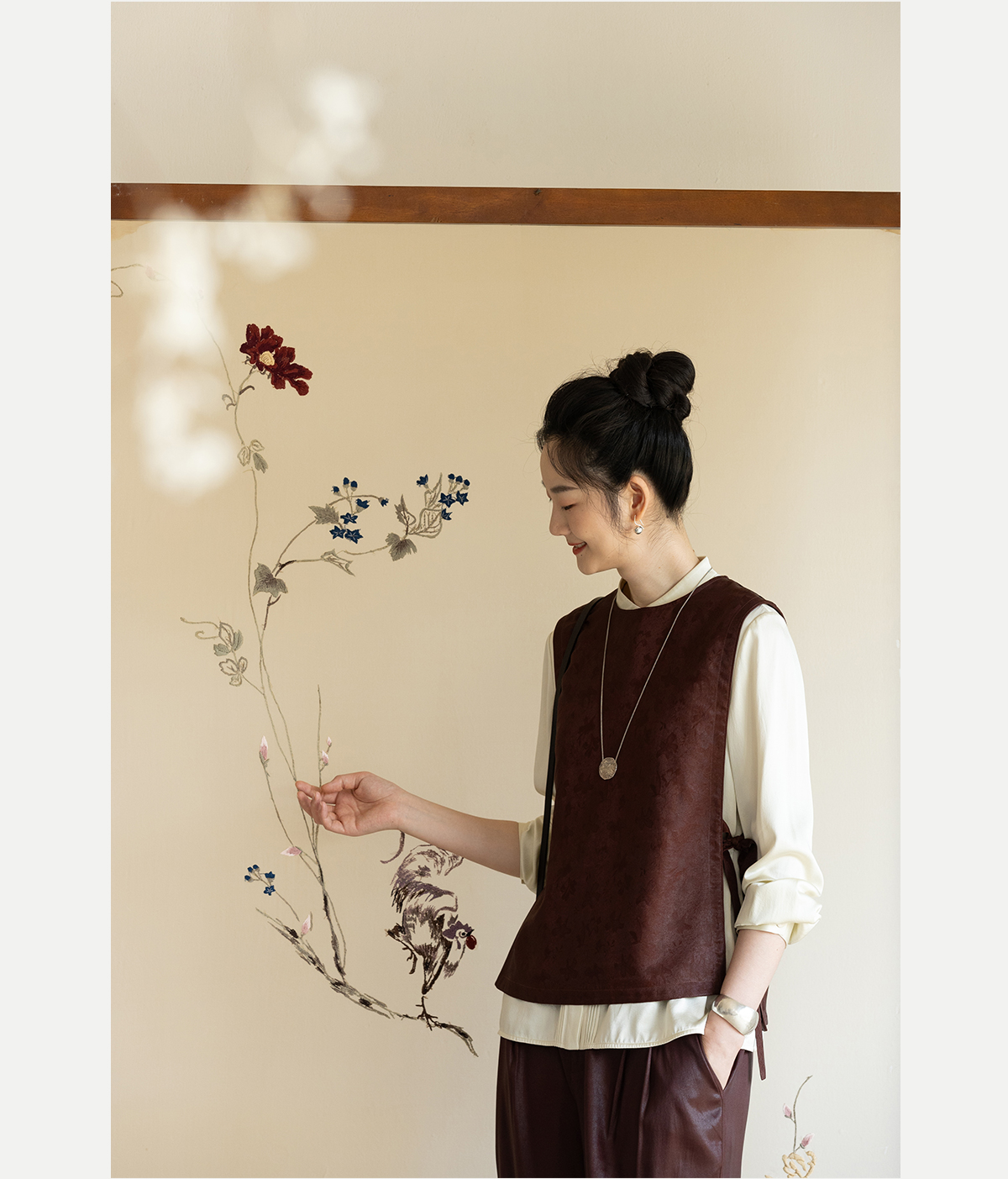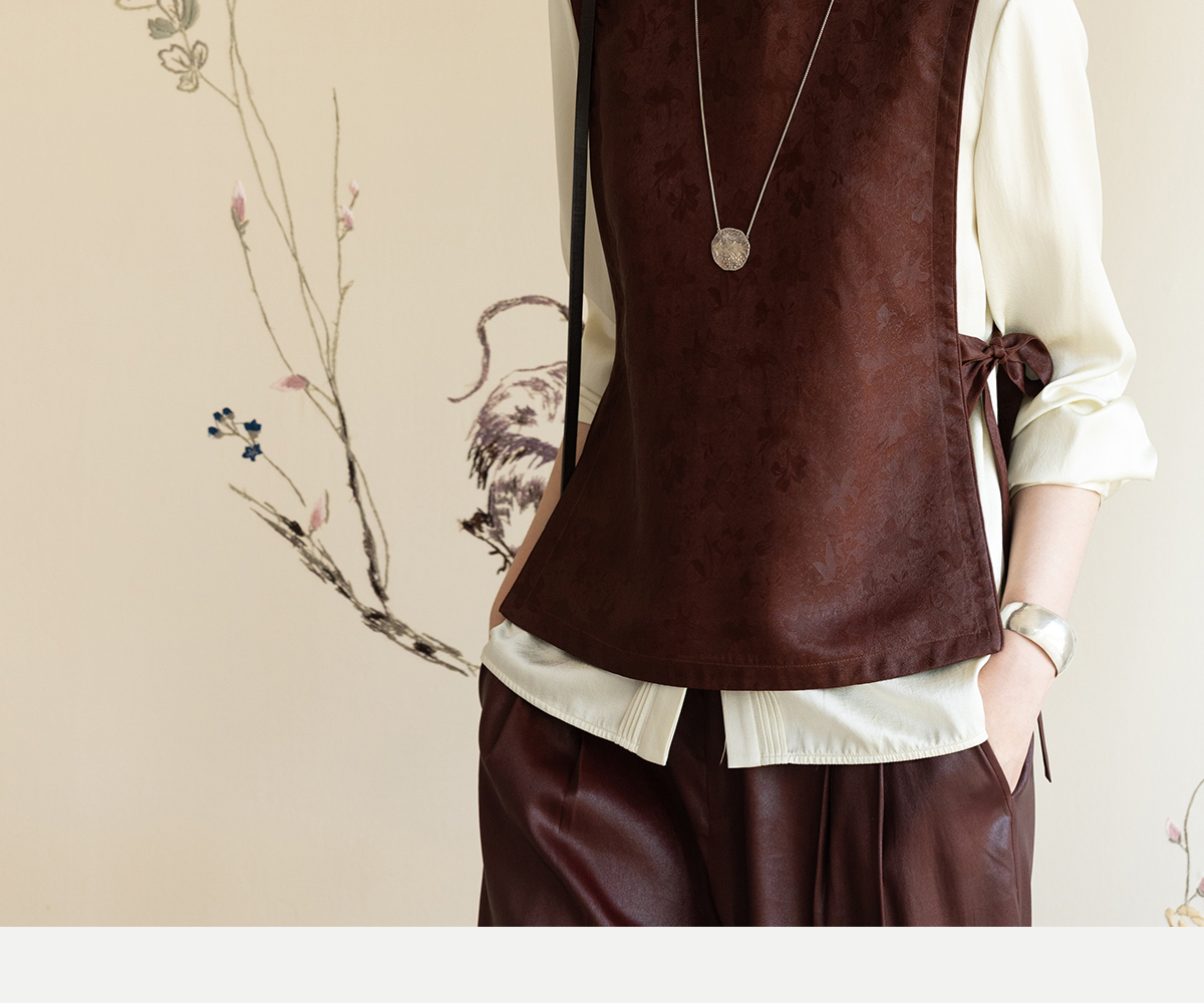 牧衣游原创 重磅24姆米提花香云纱马夹复古东方文艺百搭上衣 之行