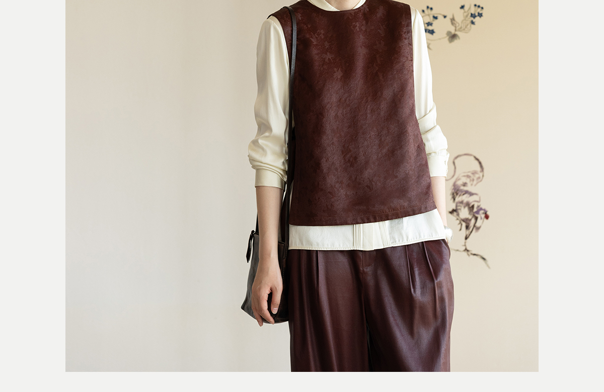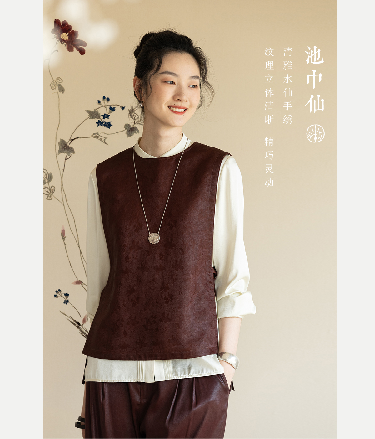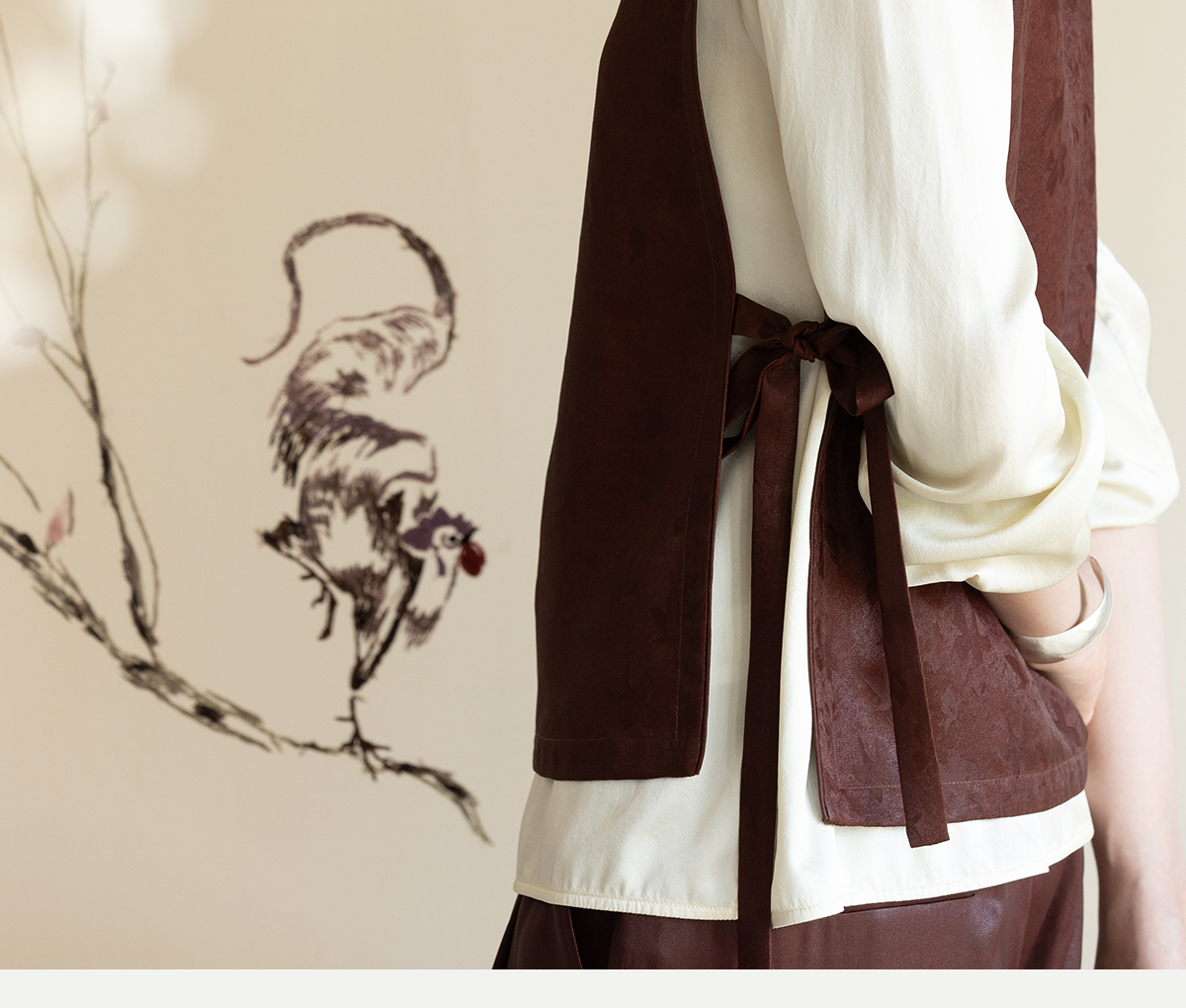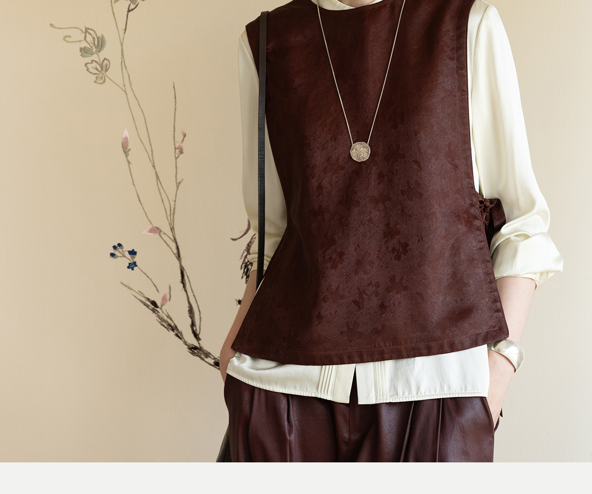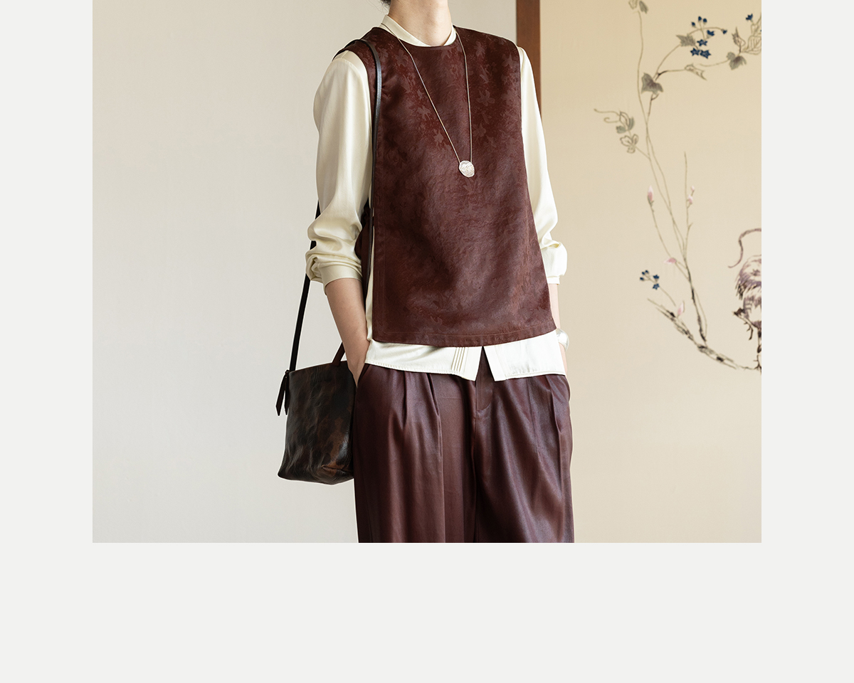 牧衣游原创 重磅24姆米提花香云纱马夹复古东方文艺百搭上衣 之行