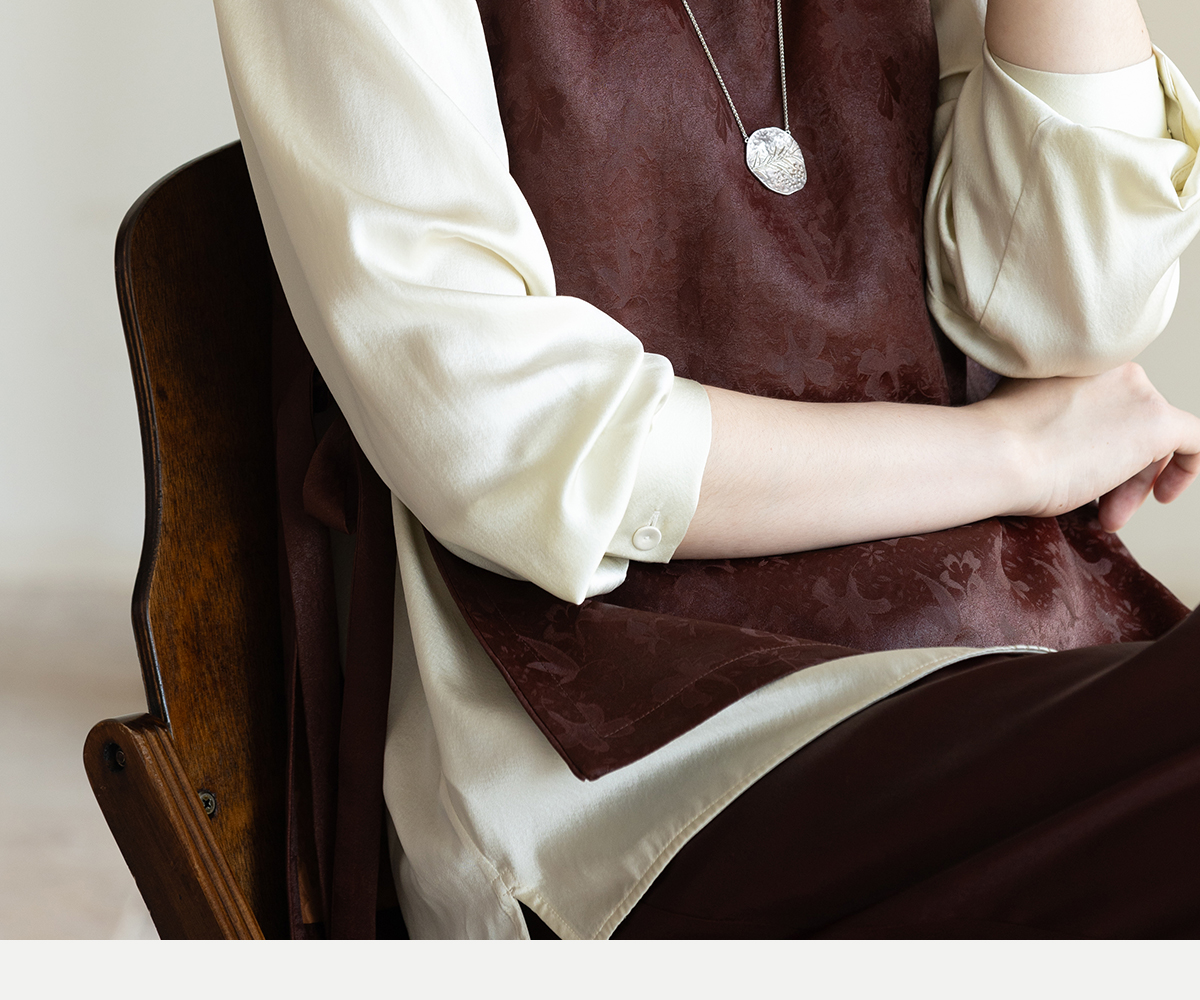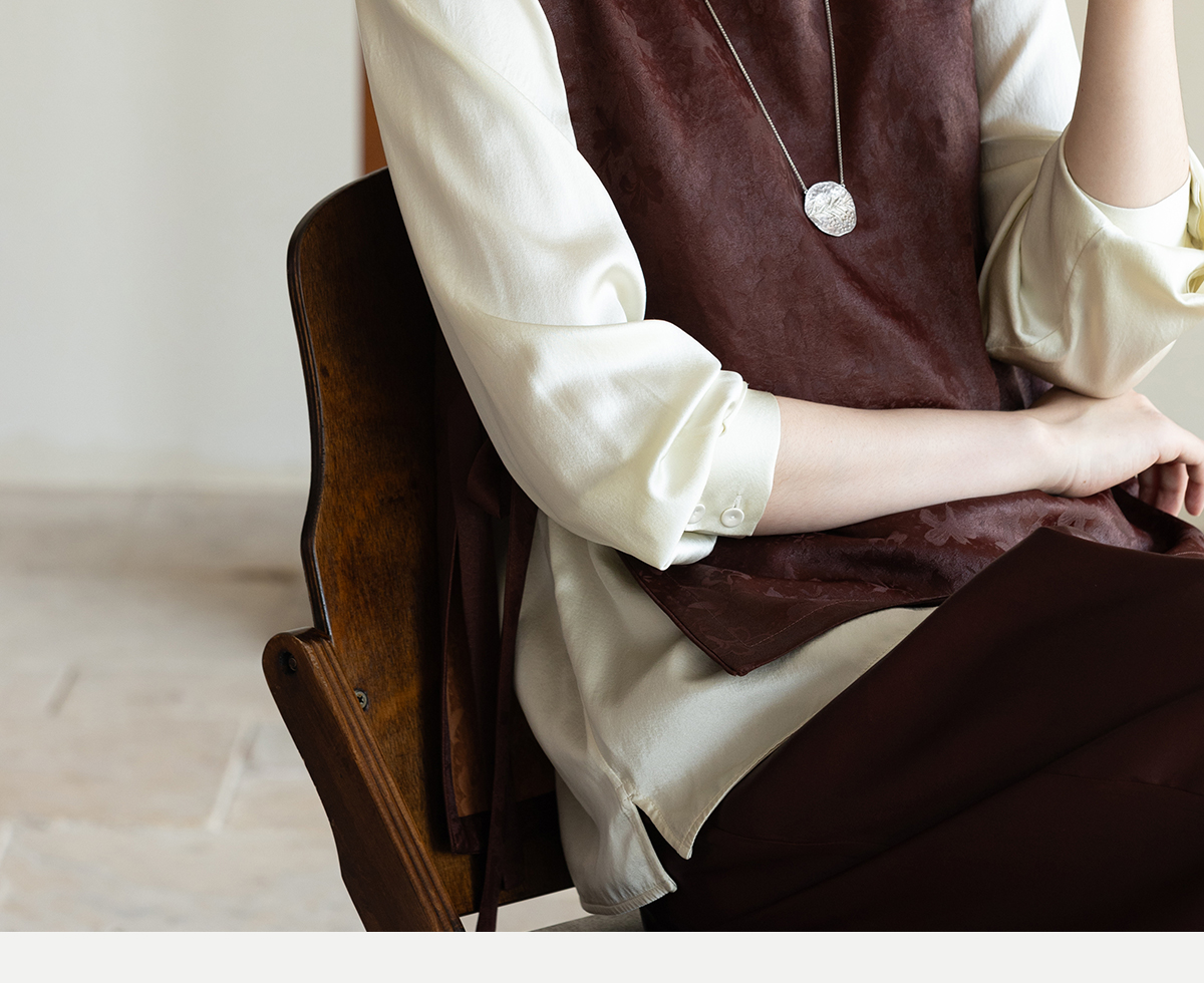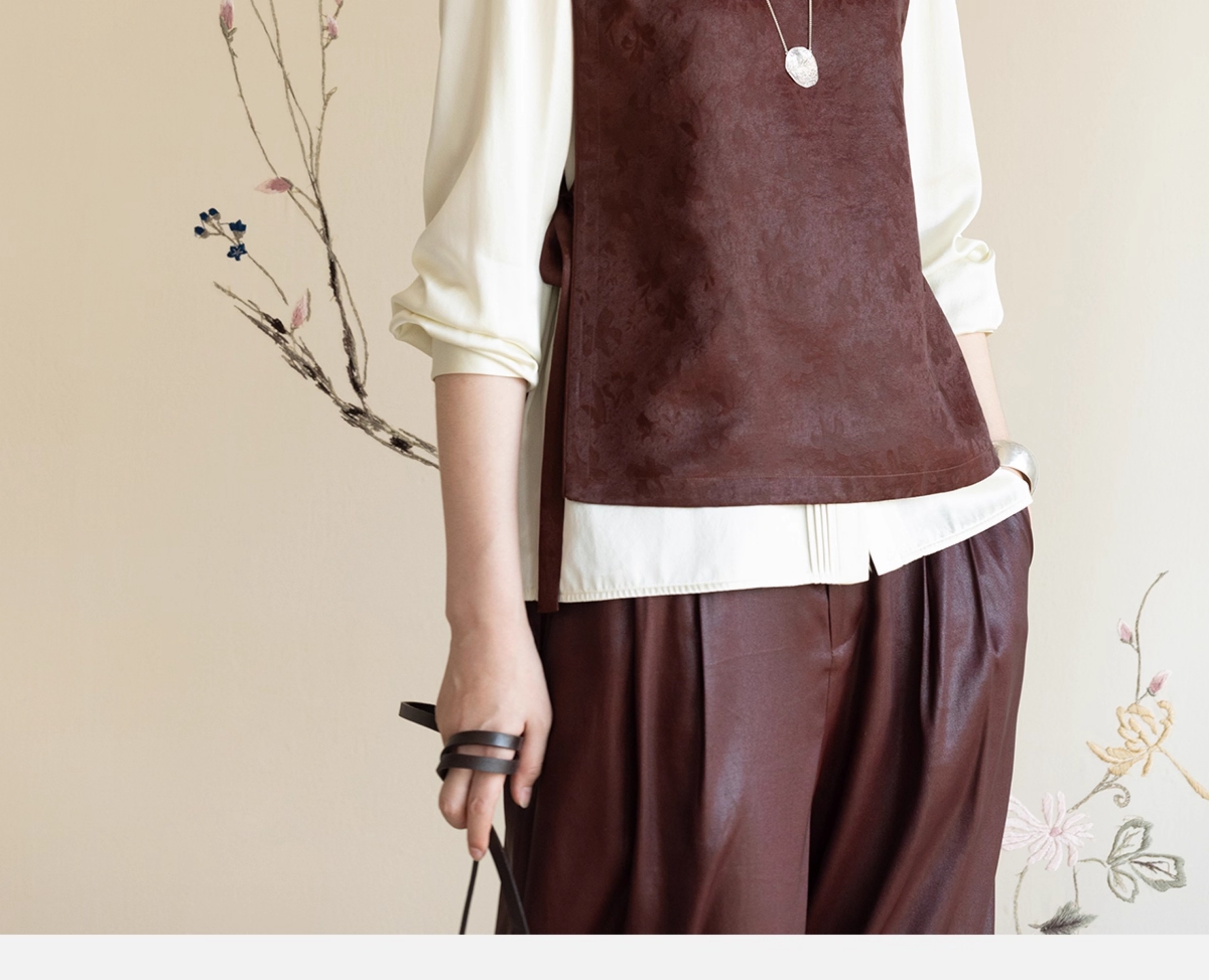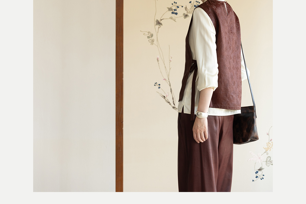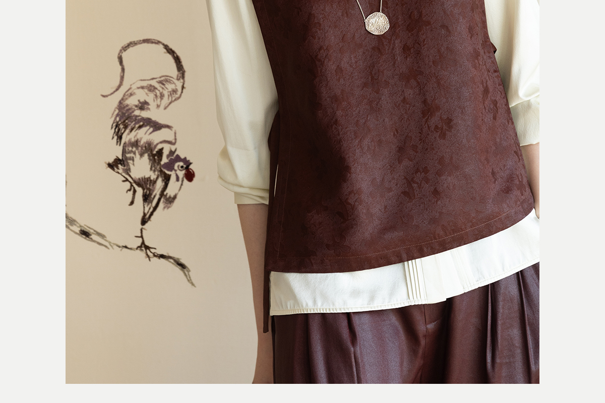 牧衣游原创 重磅24姆米提花香云纱马夹复古东方文艺百搭上衣 之行