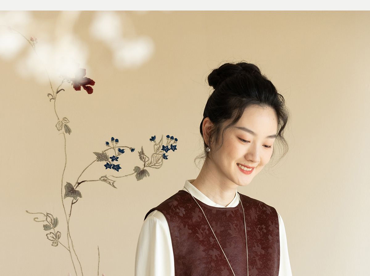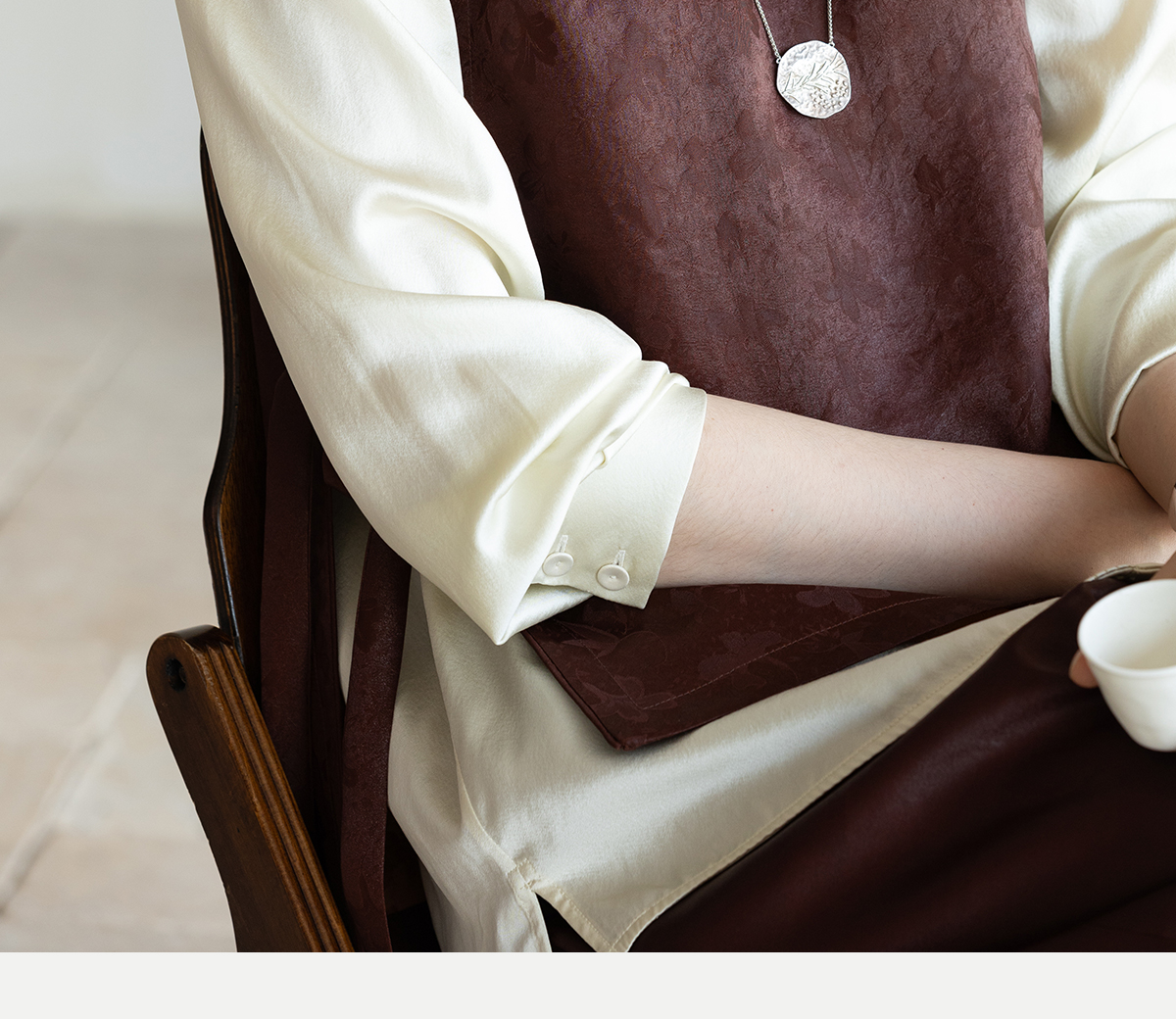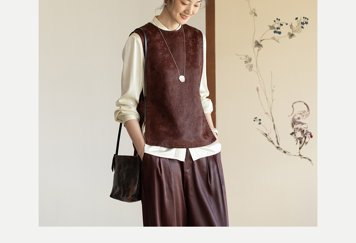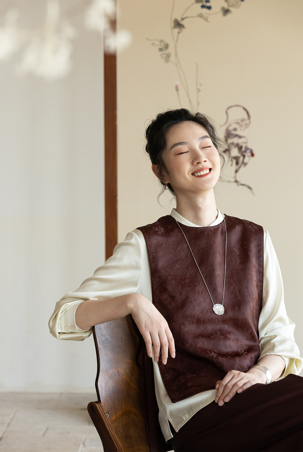 牧衣游原创 重磅24姆米提花香云纱马夹复古东方文艺百搭上衣 之行