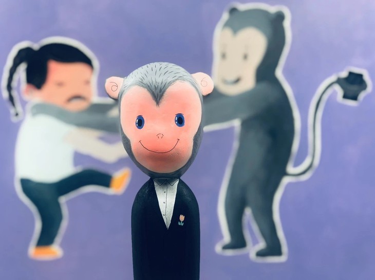 《我们结婚啦》尺寸:6*6*27cm材质:木雕 丙烯上色,综合材料独版