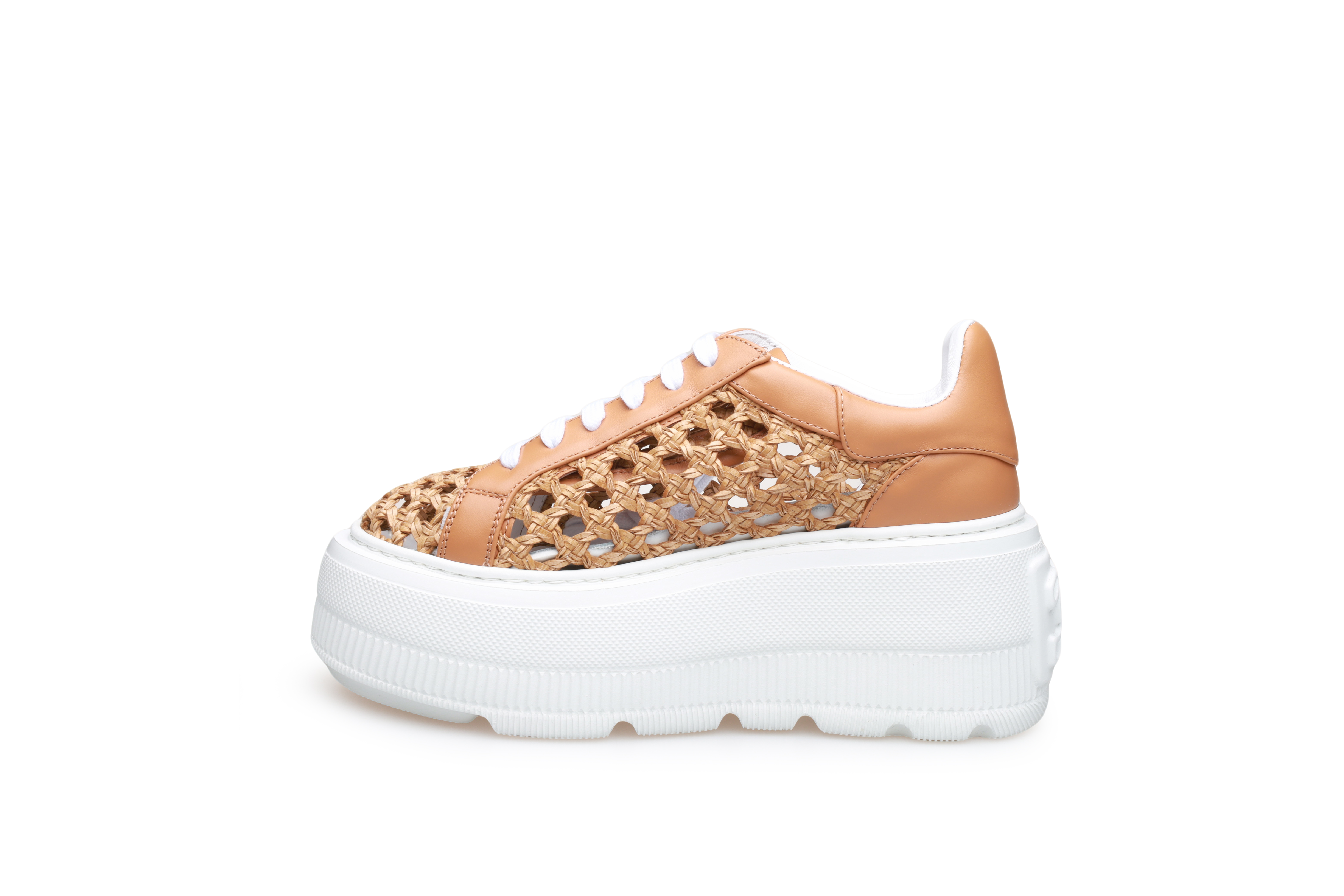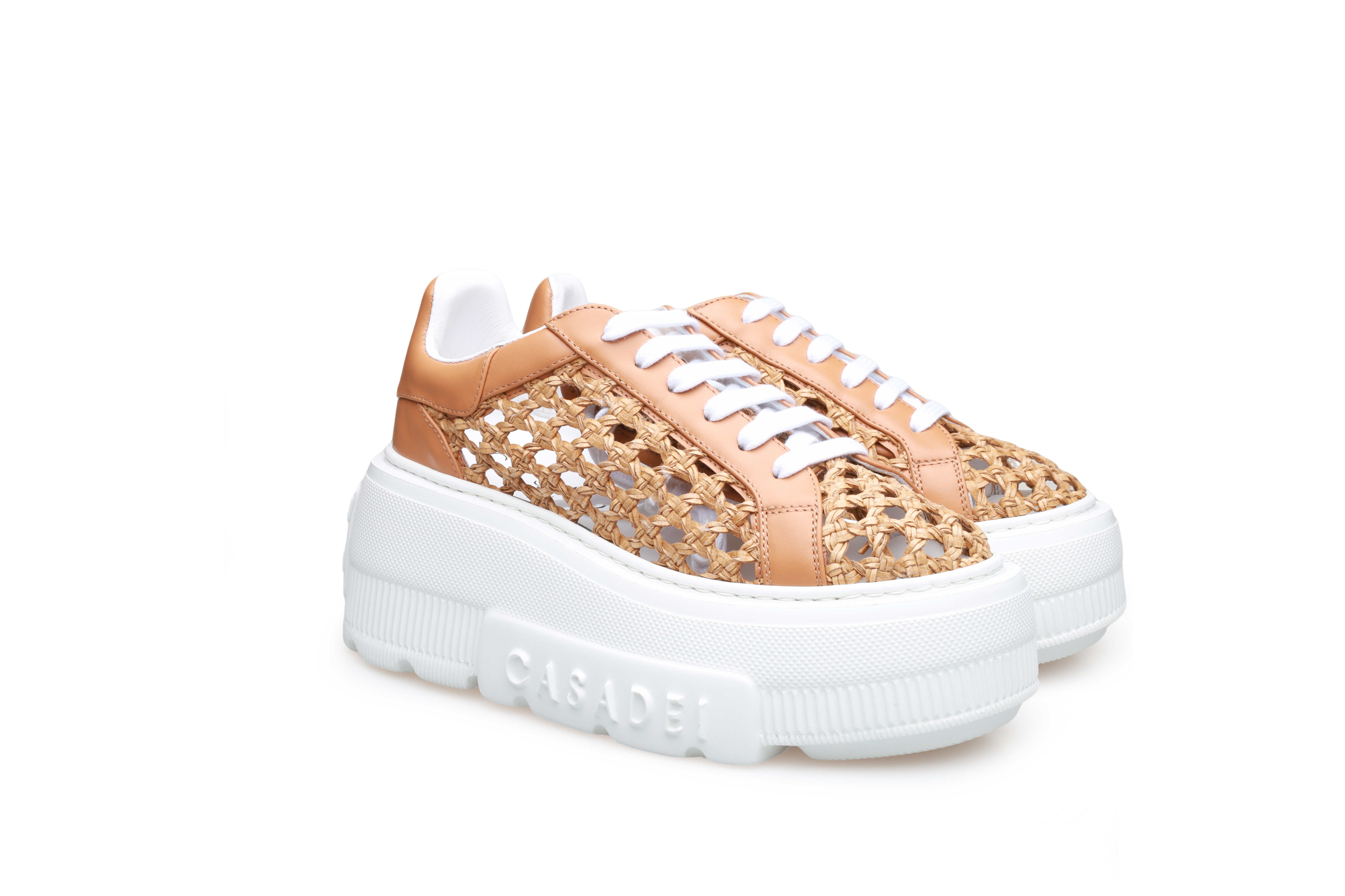 豪麟名鞋CASADEI女鞋时尚休闲鞋牛皮革+织物2X895咖啡