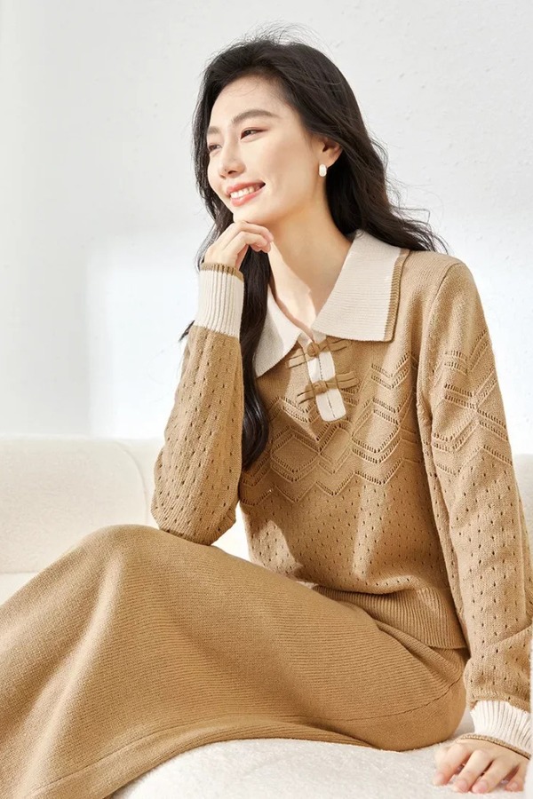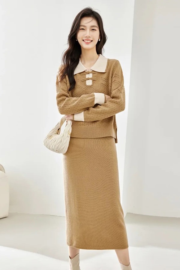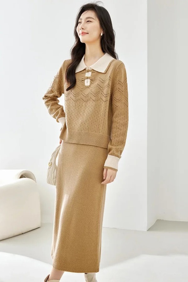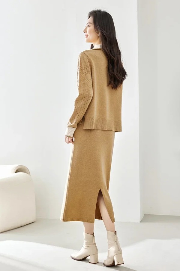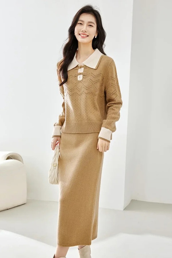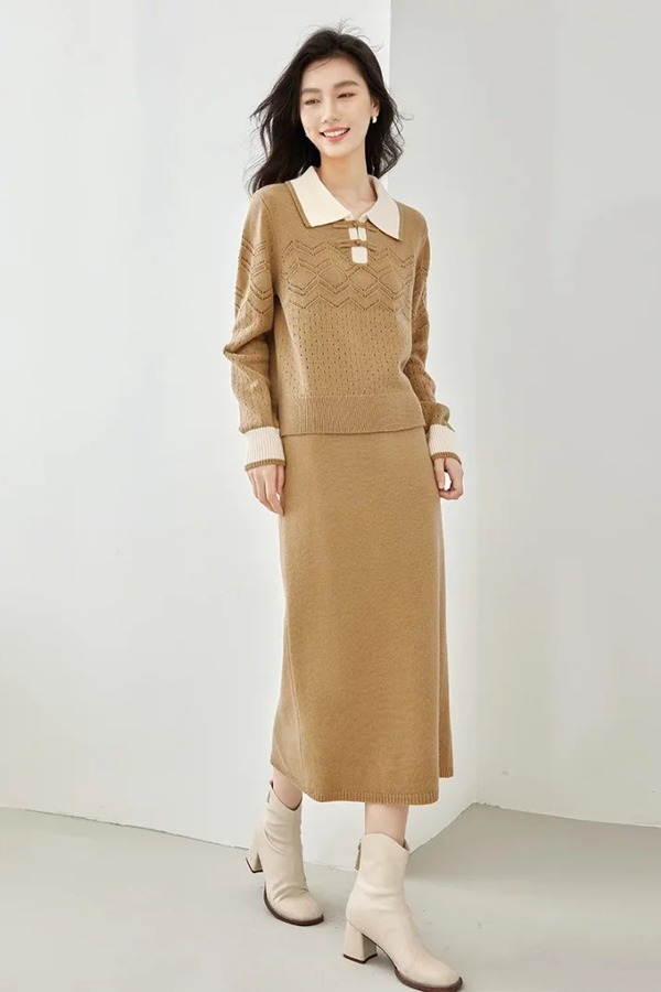 VIMLY/梵希蔓 文艺气质国风针织半裙套装 21693