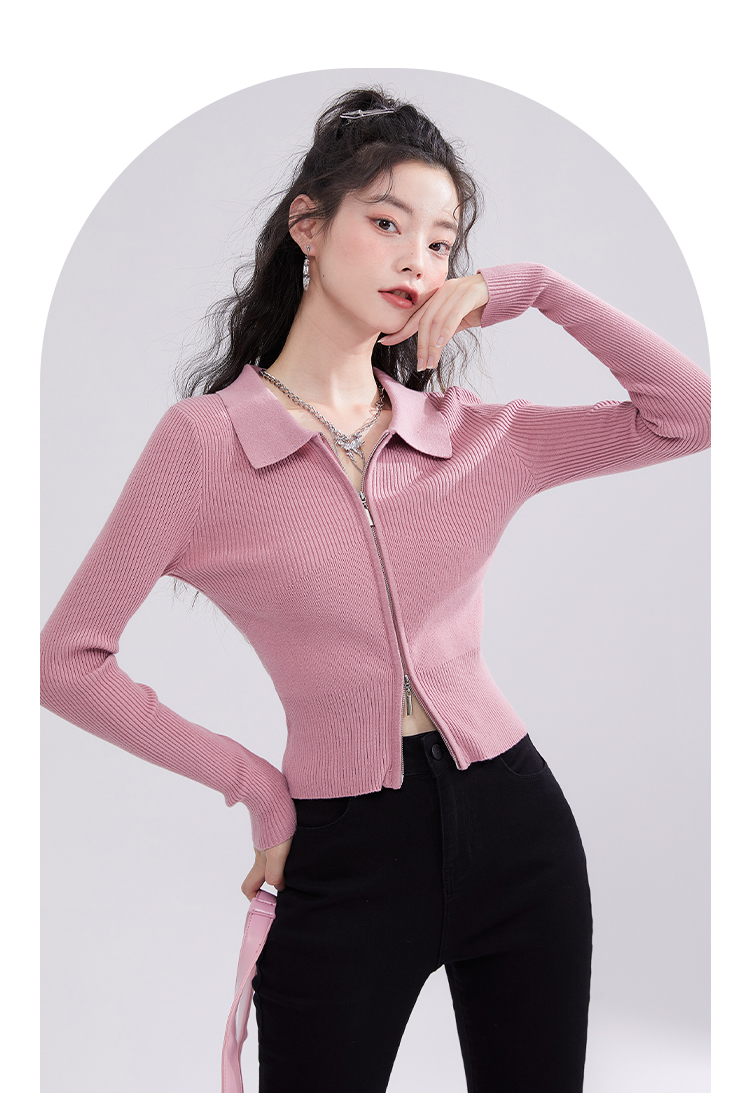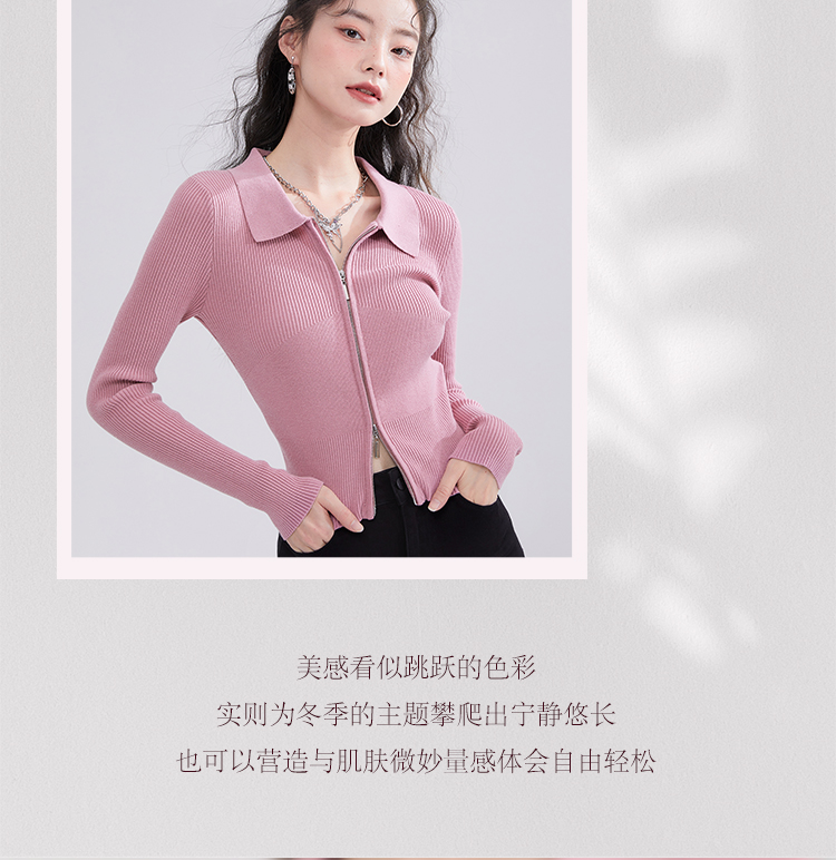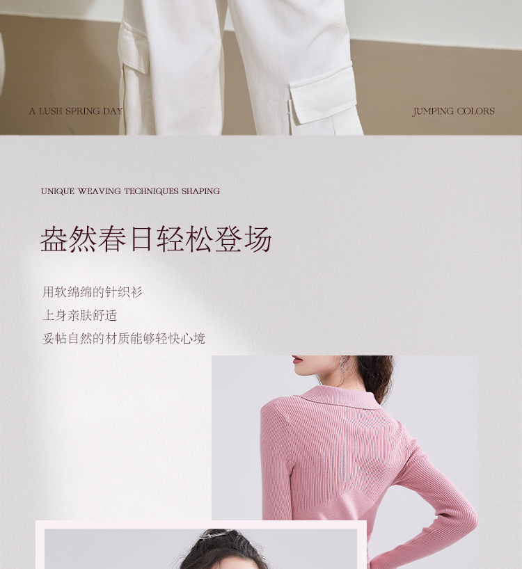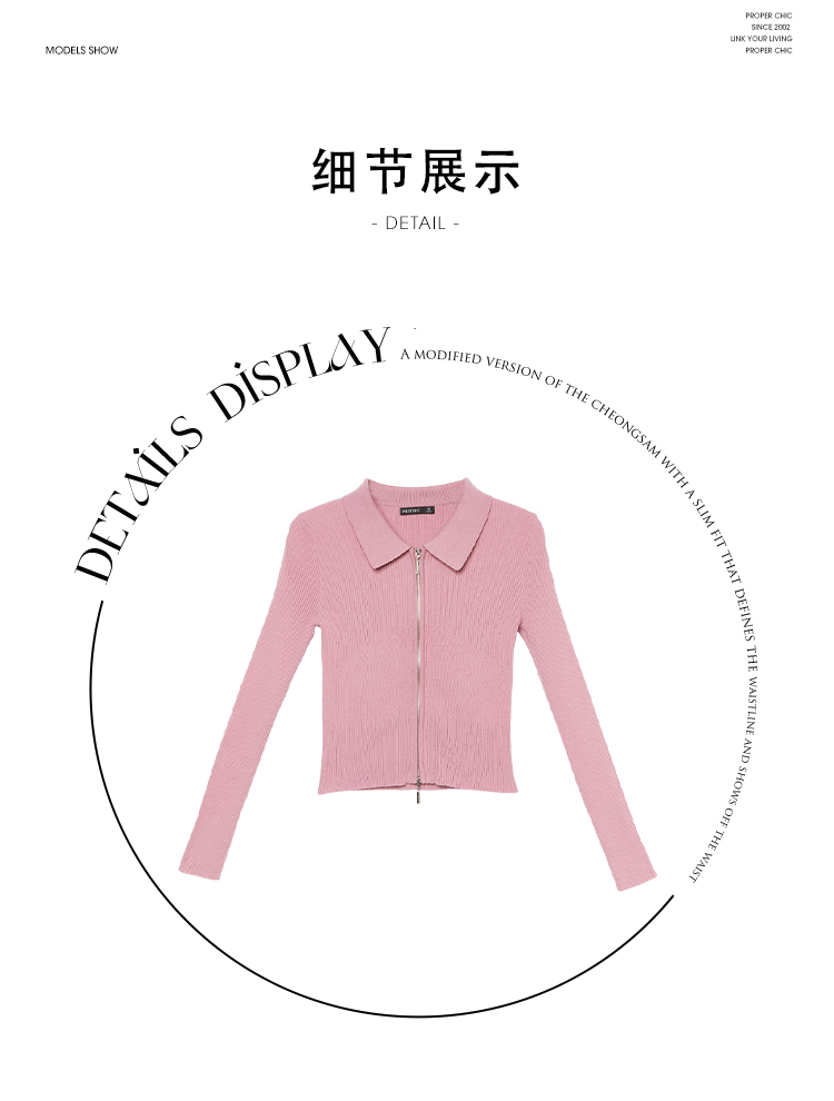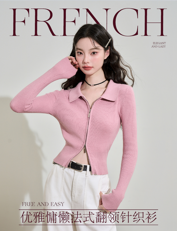 西遇POLO领针织衫女早新款甜美辣妹粉色短款毛衣上衣D1621345