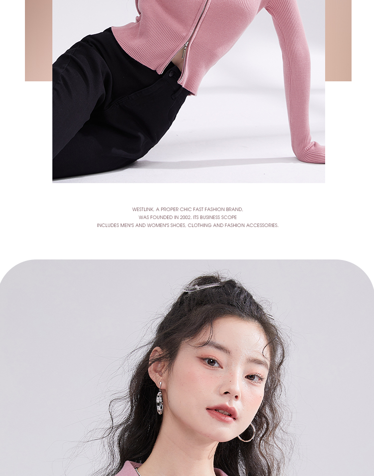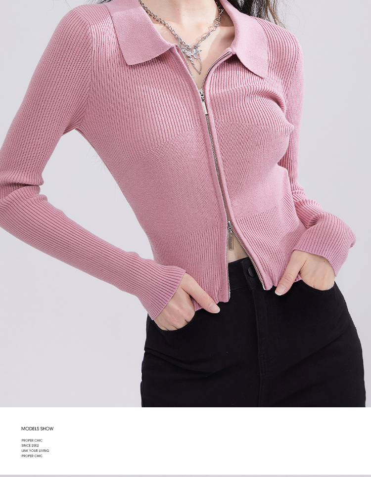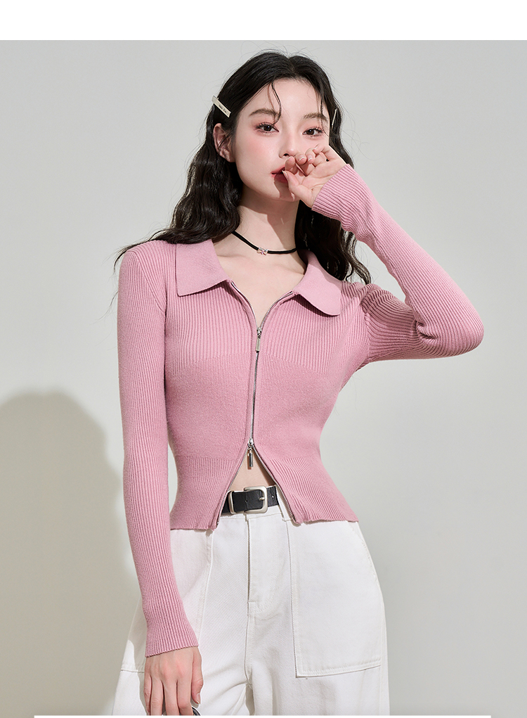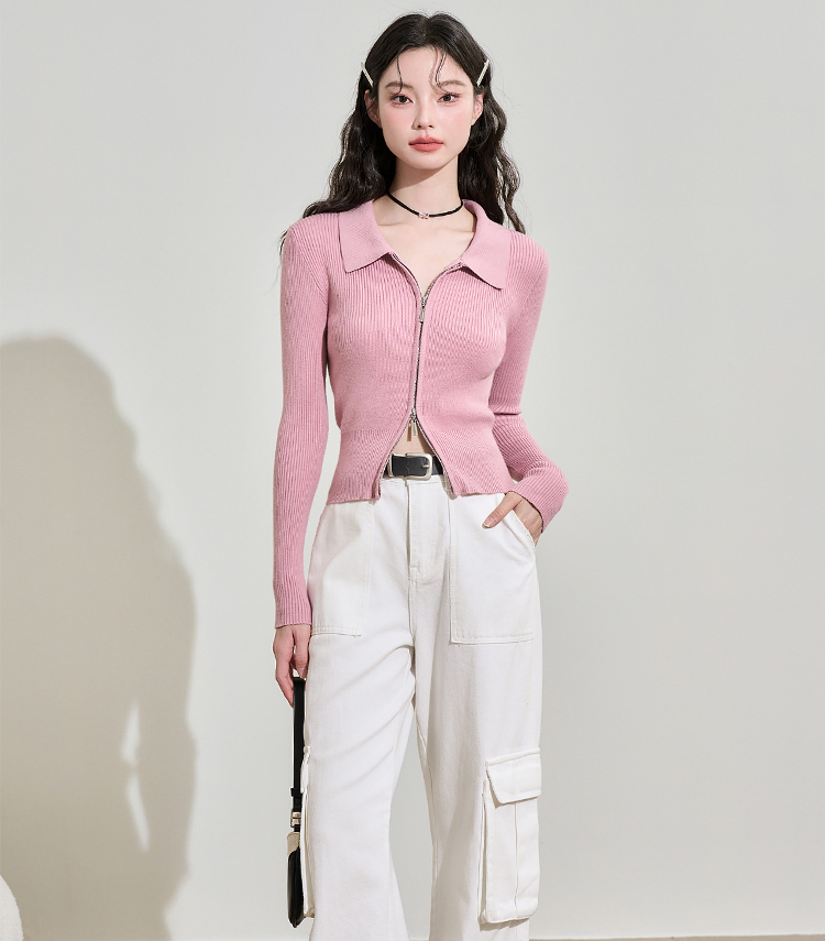 西遇POLO领针织衫女早新款甜美辣妹粉色短款毛衣上衣D1621345