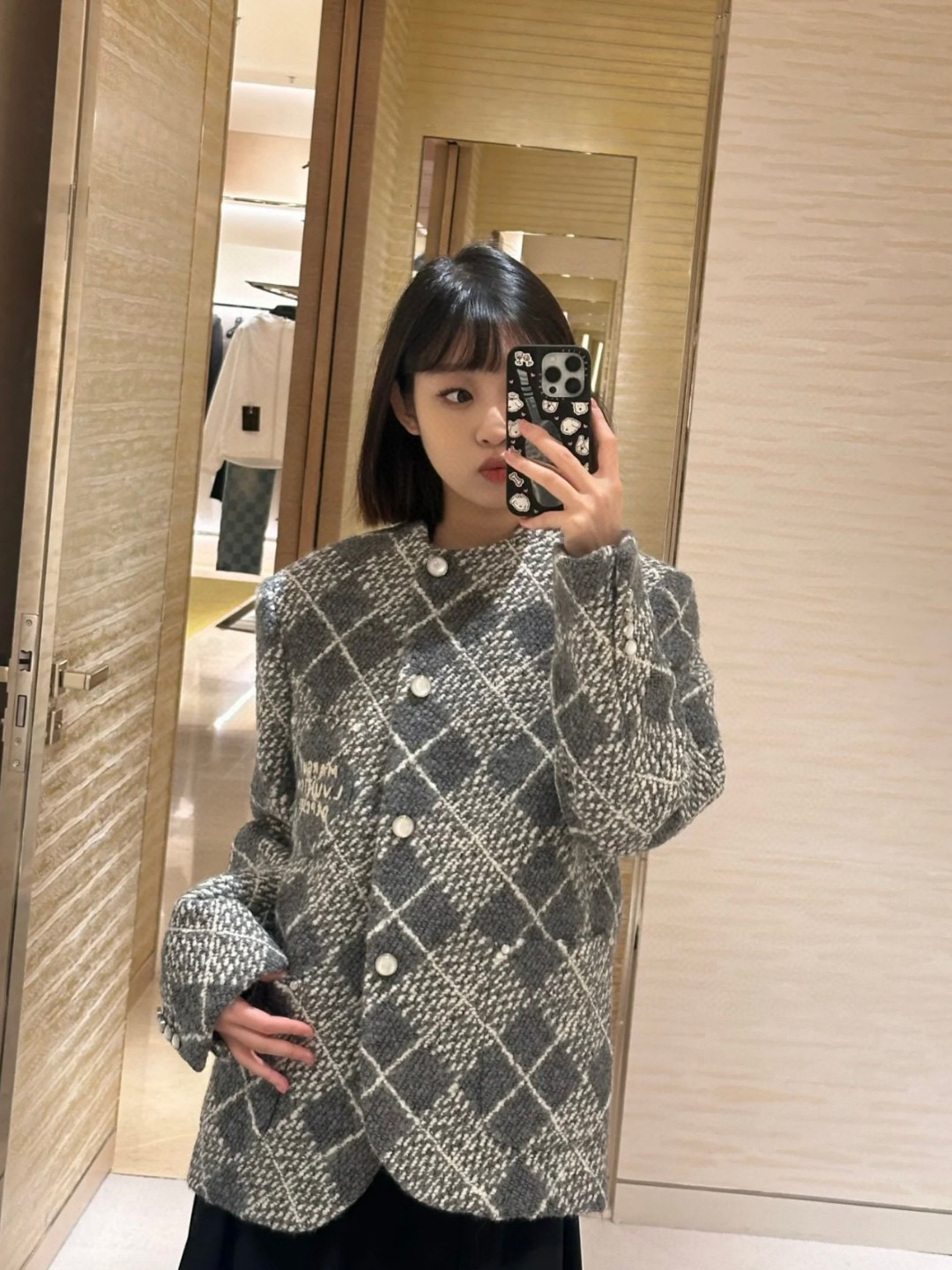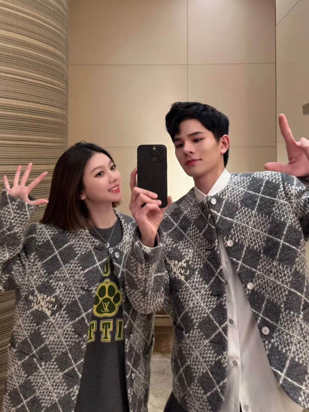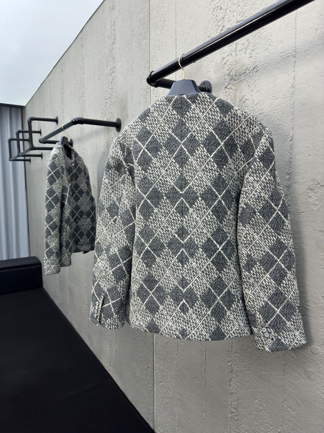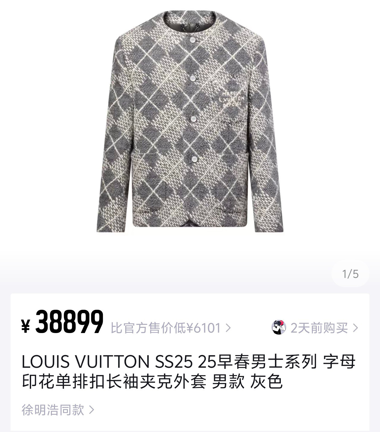 工艺说明:呈现 Argyle 花纹般的视觉效果。珠光纽扣和 Marque L.Vuitton Déposée 标识刺绣完善潮流设计,面料采用羊毛棉粘胶纤维混纺材料 定染对色 面料通过高温定型复合200d使达到原版的立体效果 珠光纽扣和铆钉 贴袋 能与同款搭配营造时尚造型,驾驭各种场合,定制辅料,三标齐全,男女同款!