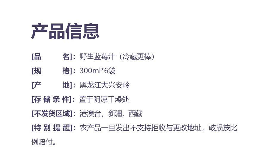 黑龙江大兴安岭野生蓝莓汁(300ml*6袋)【冷藏更棒!】