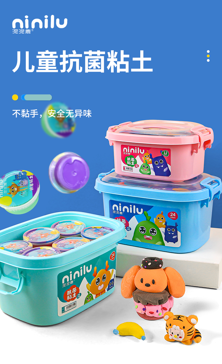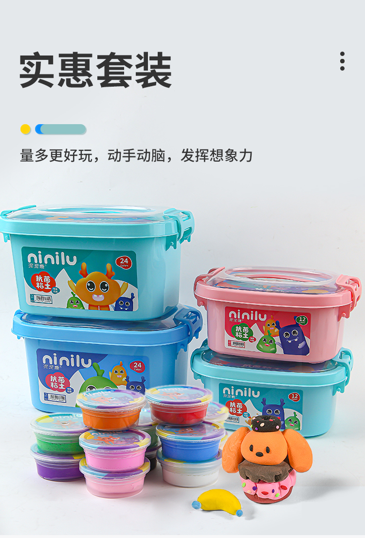 泥泥鹿 大包抗菌24色超轻粘土幼儿园儿童