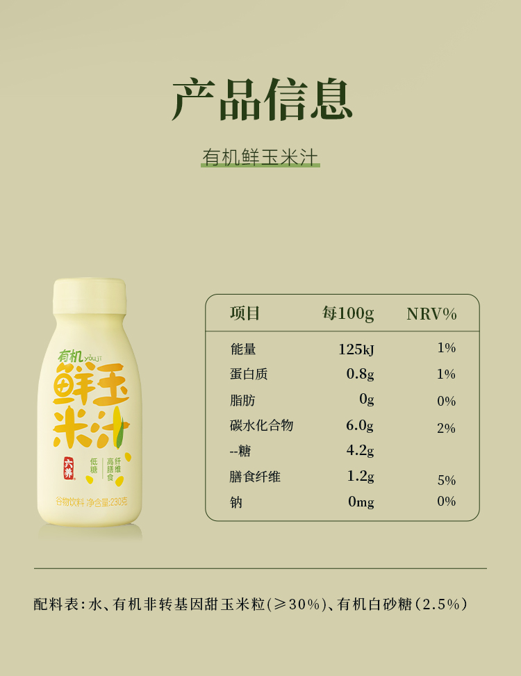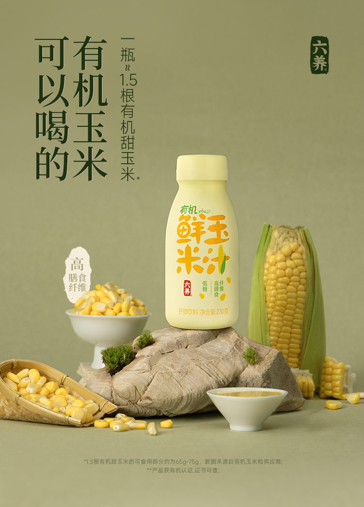 博士溯源丨六养有机鲜玉米汁230g/瓶