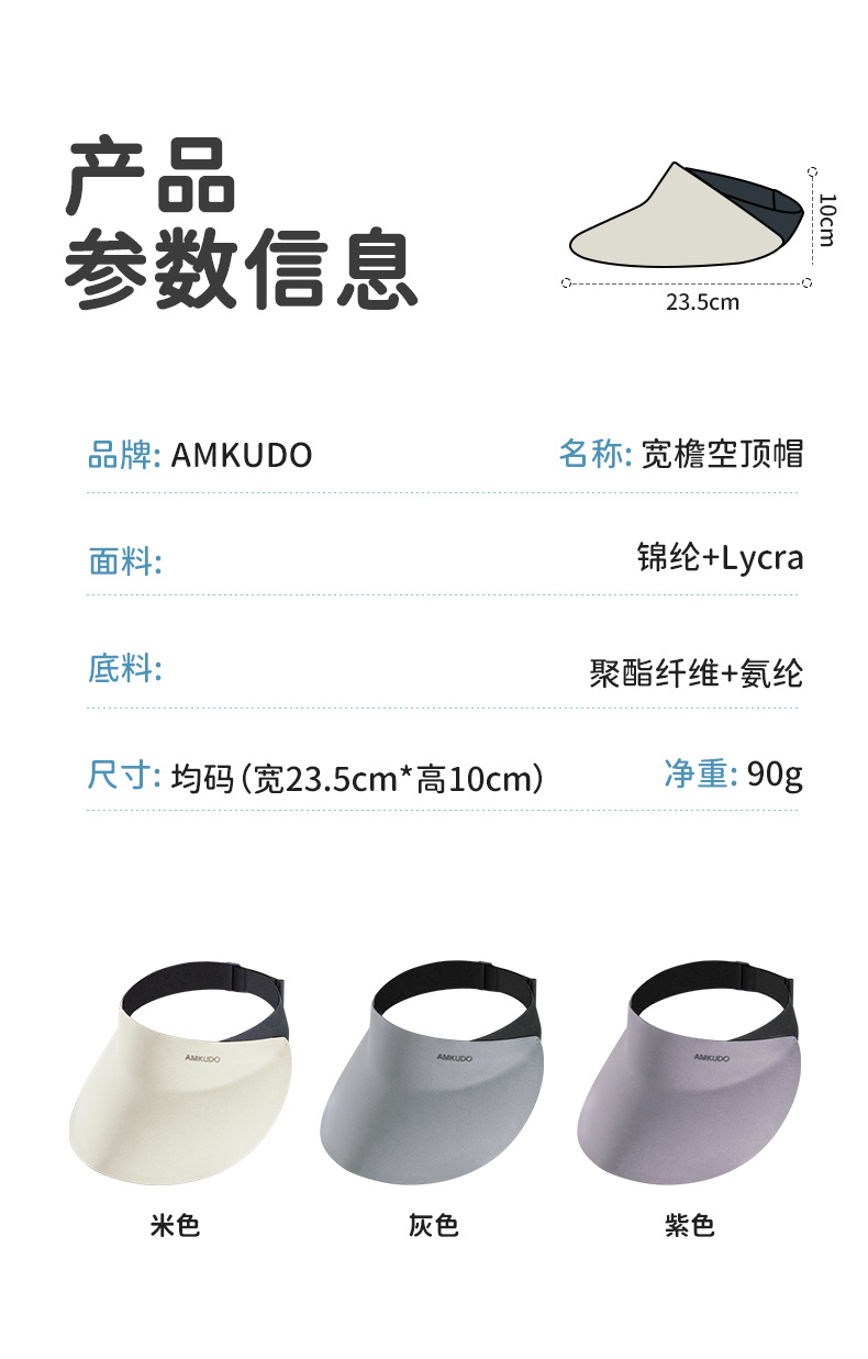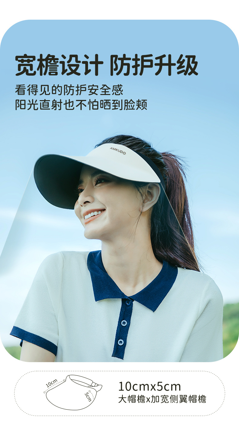 【Amkudo成人宽檐空顶防晒帽】加宽加大的帽檐降温不闷头防晒 头围大小可以自由调节 男女同款超百搭 出游季囤它