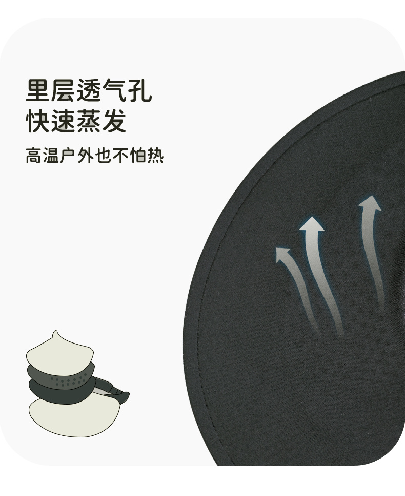 单向导湿面料:底料采用高品质的单向导湿面料,吸湿快干性能一流。它能够迅速吸收额头和发际线上的汗水,并将其导向外部蒸发,时刻保持额头和发际线干爽,避免汗水带来的黏腻感,让你在夏日里始终保持舒适状态。